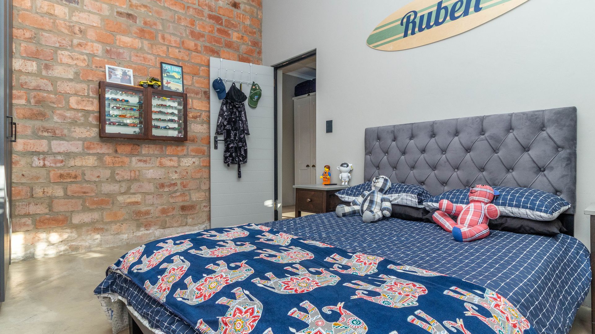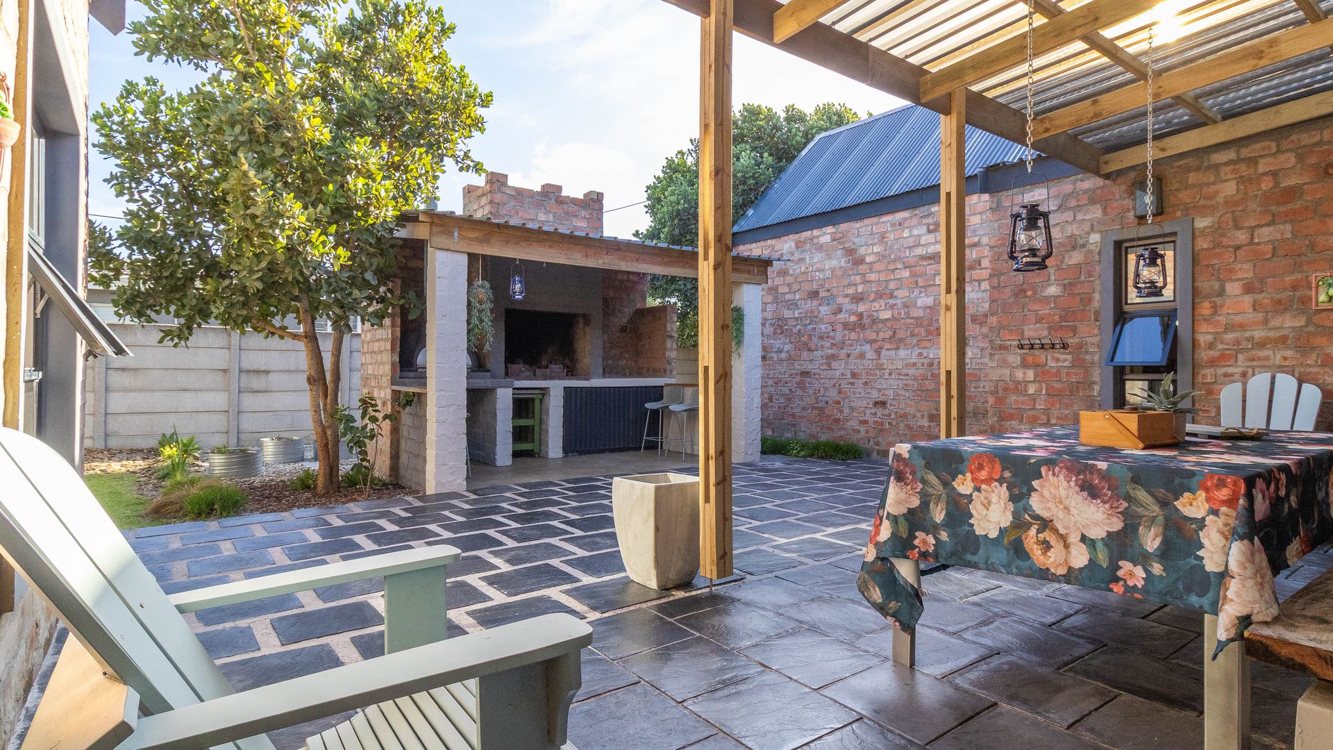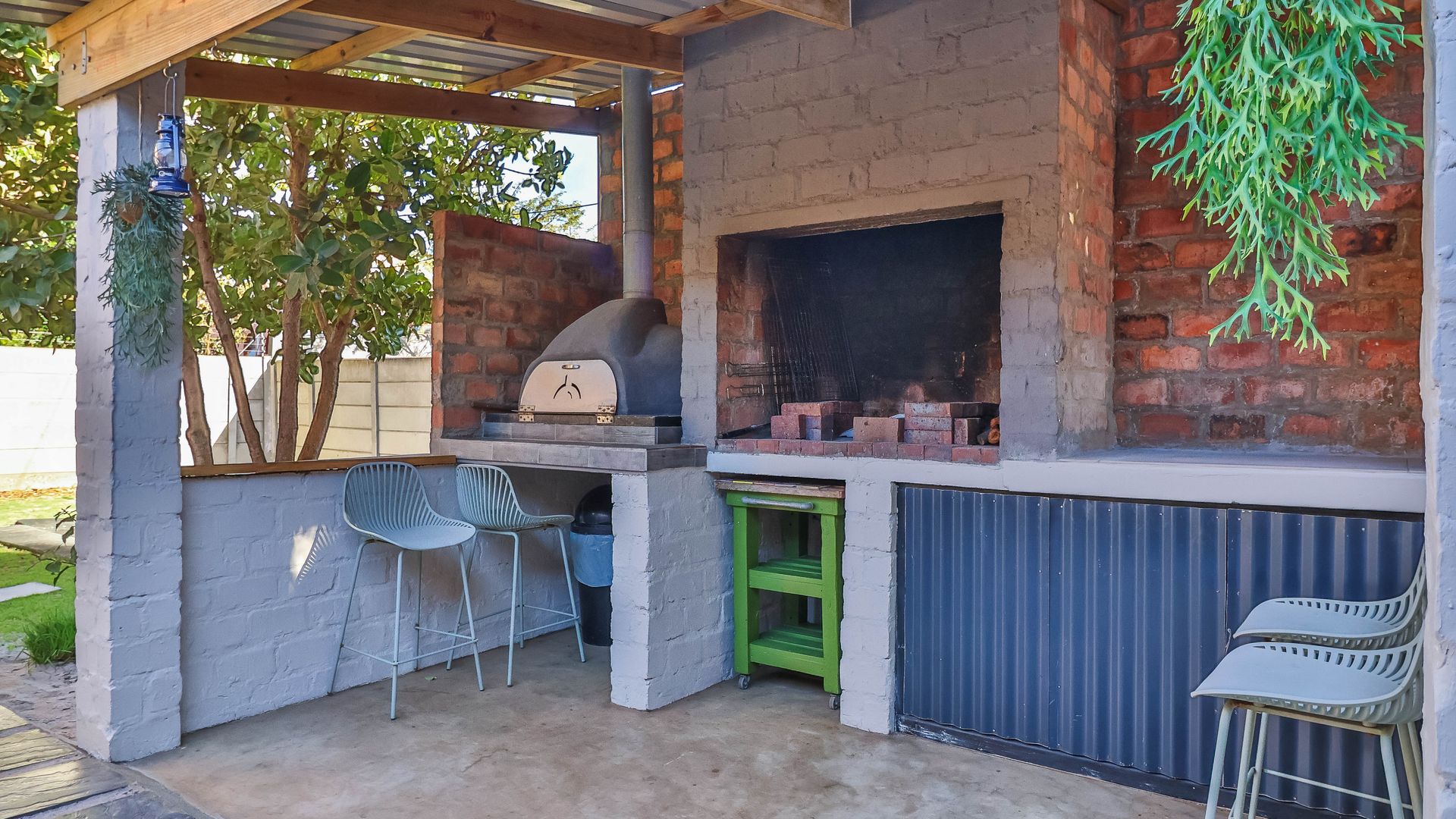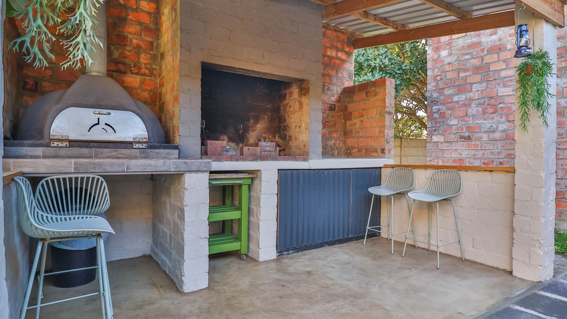 Complementing its contemporary design and functionality, the home features an outside entertainment and braai area with a pizza oven and a thoughtfully planned low-maintenance garden. It is filled with indigenous plants, designed to thrive with minimal watering and care. A stone pathway and patio reduce the need for constant upkeep while adding a modern aesthetic.