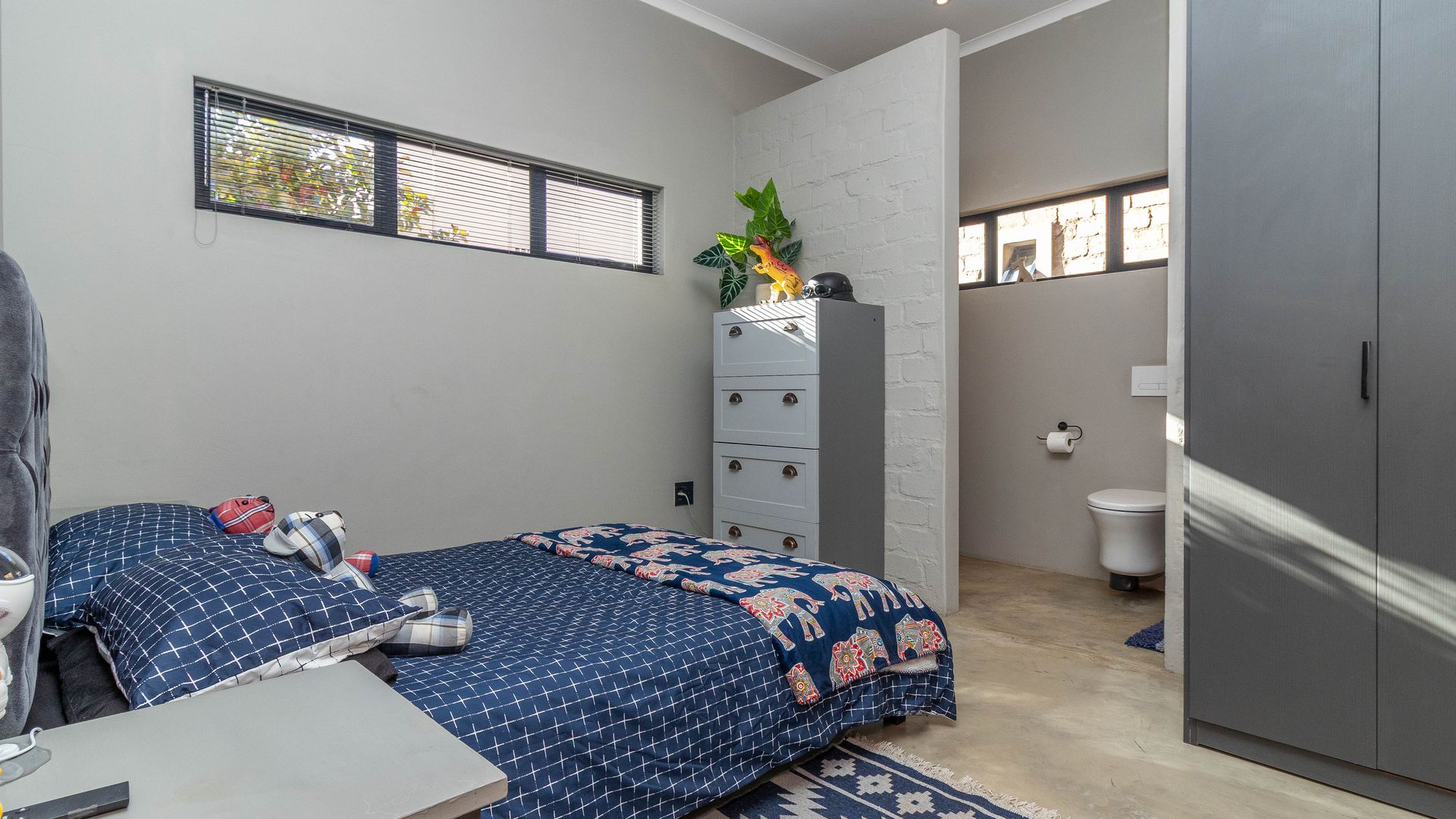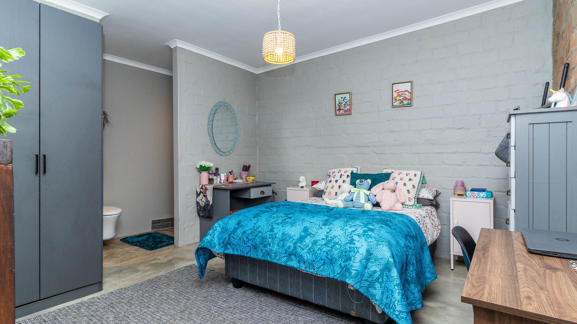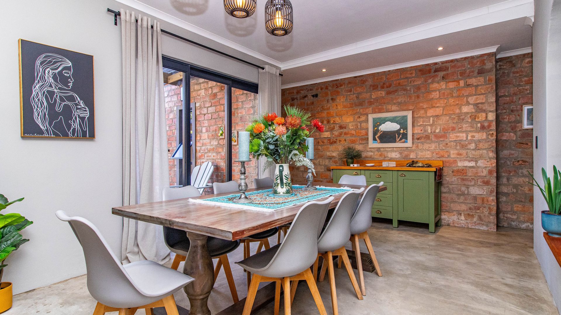 Complementing its contemporary design and functionality, the home features an outside entertainment and braai area with a pizza oven and a thoughtfully planned low-maintenance garden. It is filled with indigenous plants, designed to thrive with minimal watering and care. A stone pathway and patio reduce the need for constant upkeep while adding a modern aesthetic.
