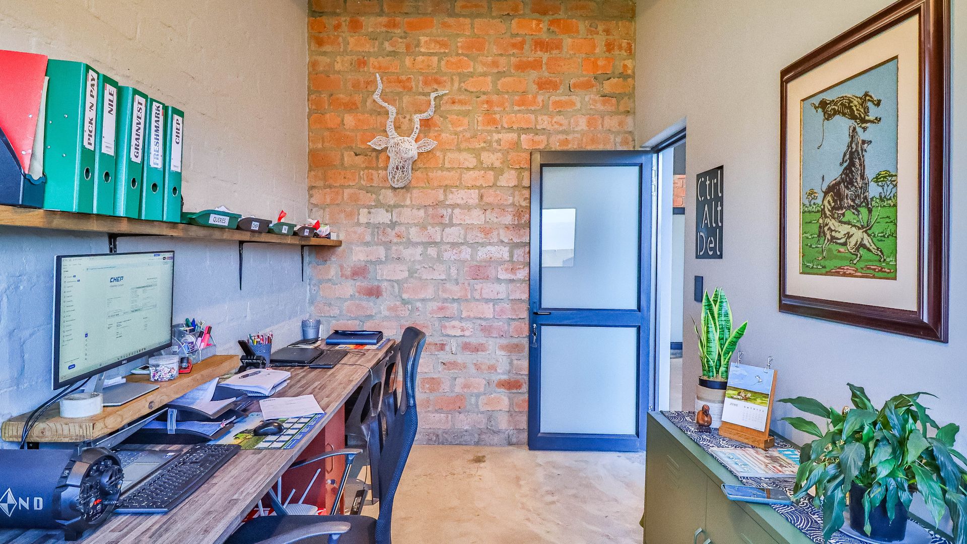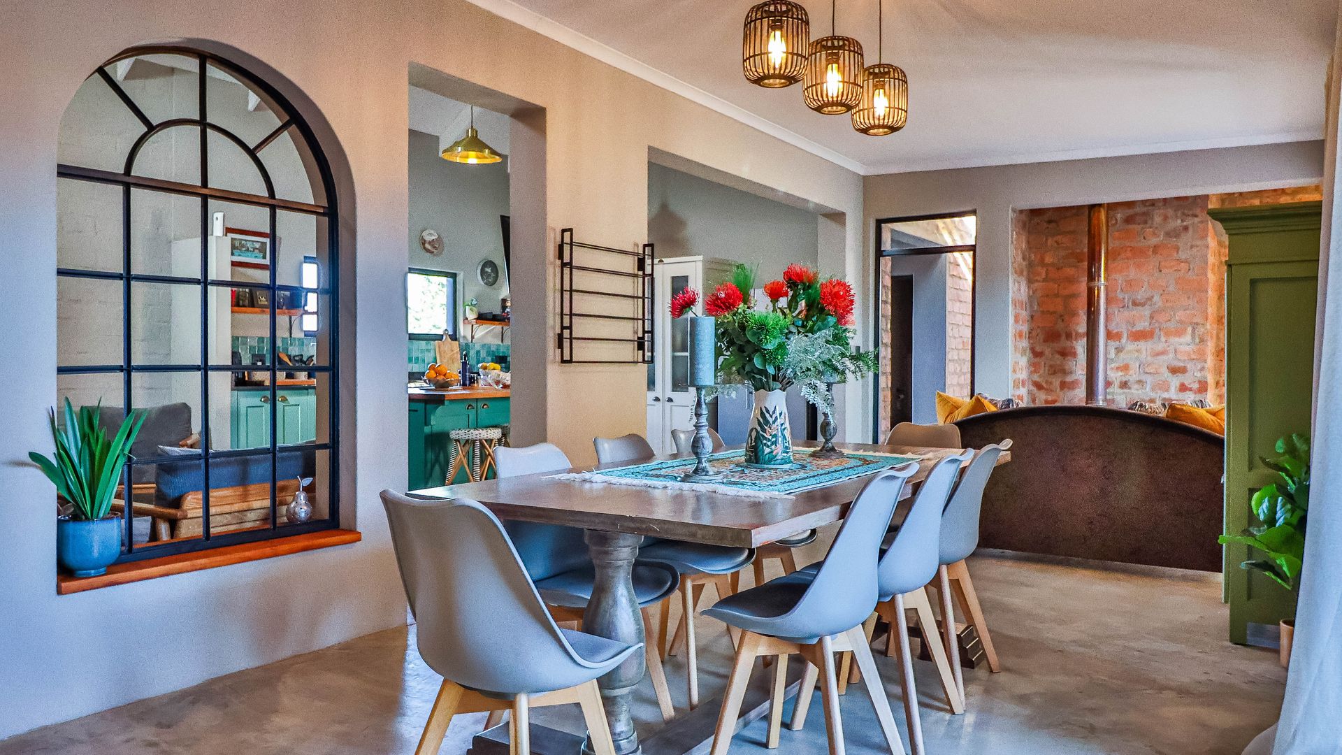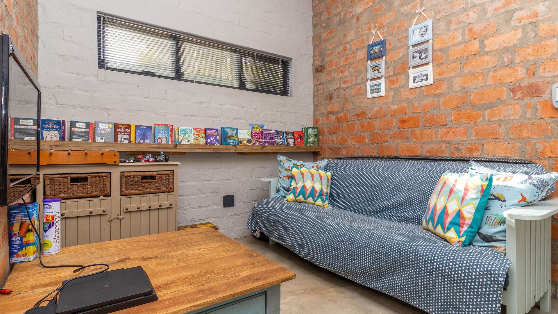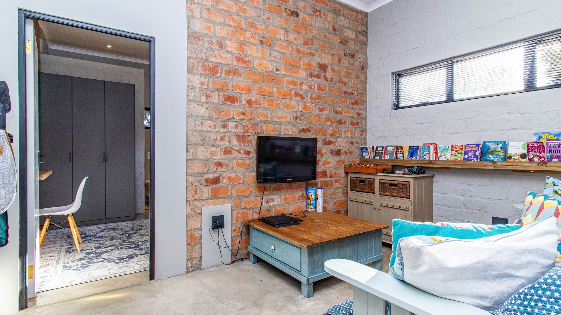 Complementing its contemporary design and functionality, the home features an outside entertainment and braai area with a pizza oven and a thoughtfully planned low-maintenance garden. It is filled with indigenous plants, designed to thrive with minimal watering and care. A stone pathway and patio reduce the need for constant upkeep while adding a modern aesthetic.