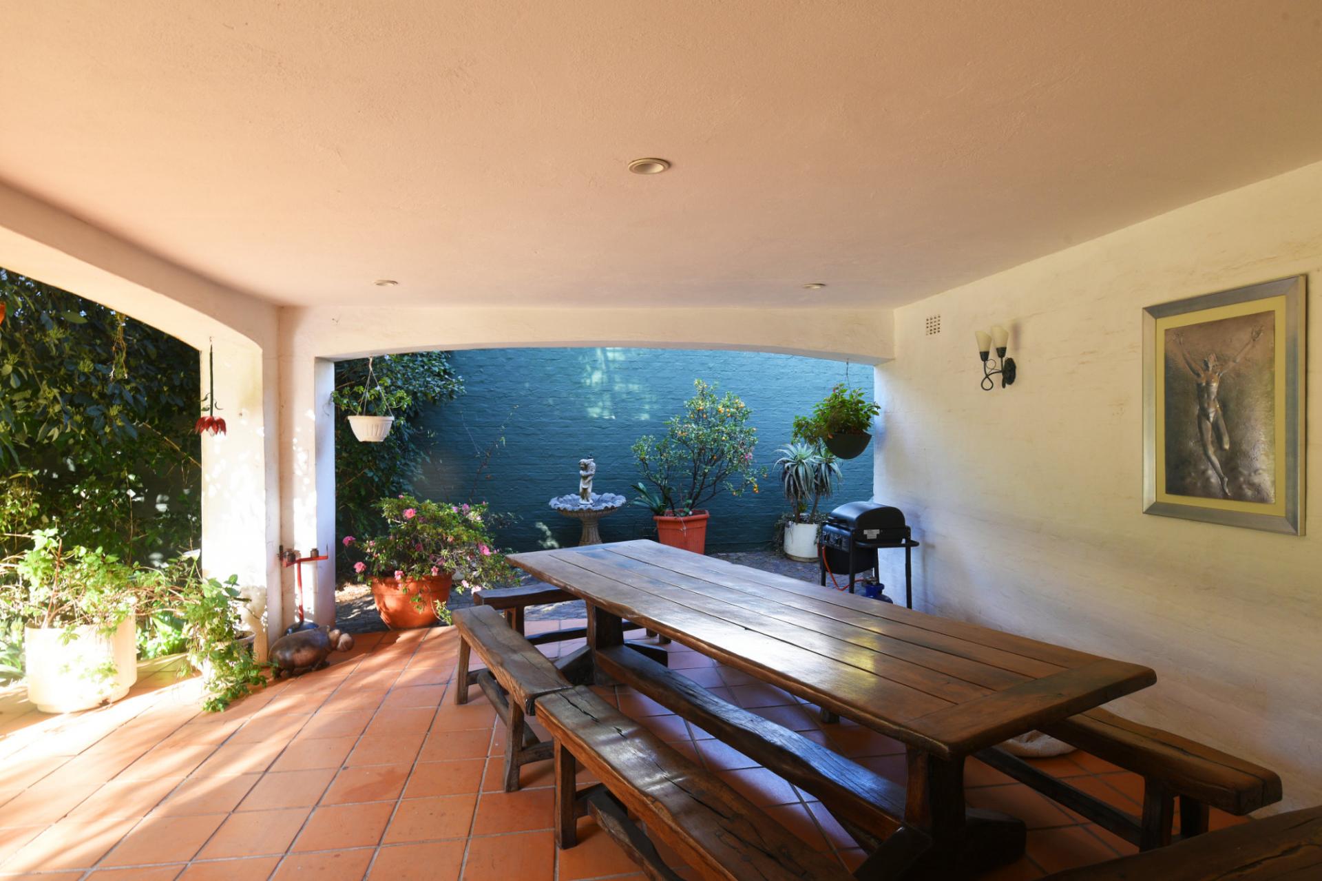 This discreet home nestled down a pan-handle off Oxford Road is close to the Gautrain, Rosebank and Killarney commercial and shopping district.