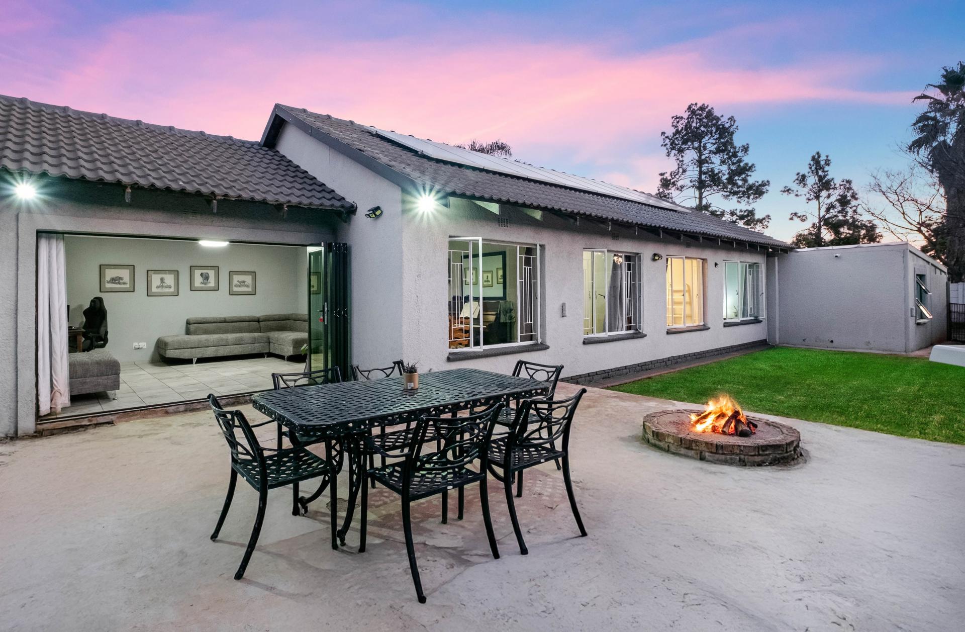 The wrap-around garden is a highlight of the property, offering a lush, private haven where children can play freely and pets can roam safely. Mature trees and open green spaces create a sense of serenity, making it an ideal setting for relaxed summer afternoons or peaceful evenings under the stars. Adjacent to the patio is a charming boma area, perfect for cozy fireside gatherings and adding a touch of rustic charm to your outdoor lifestyle.