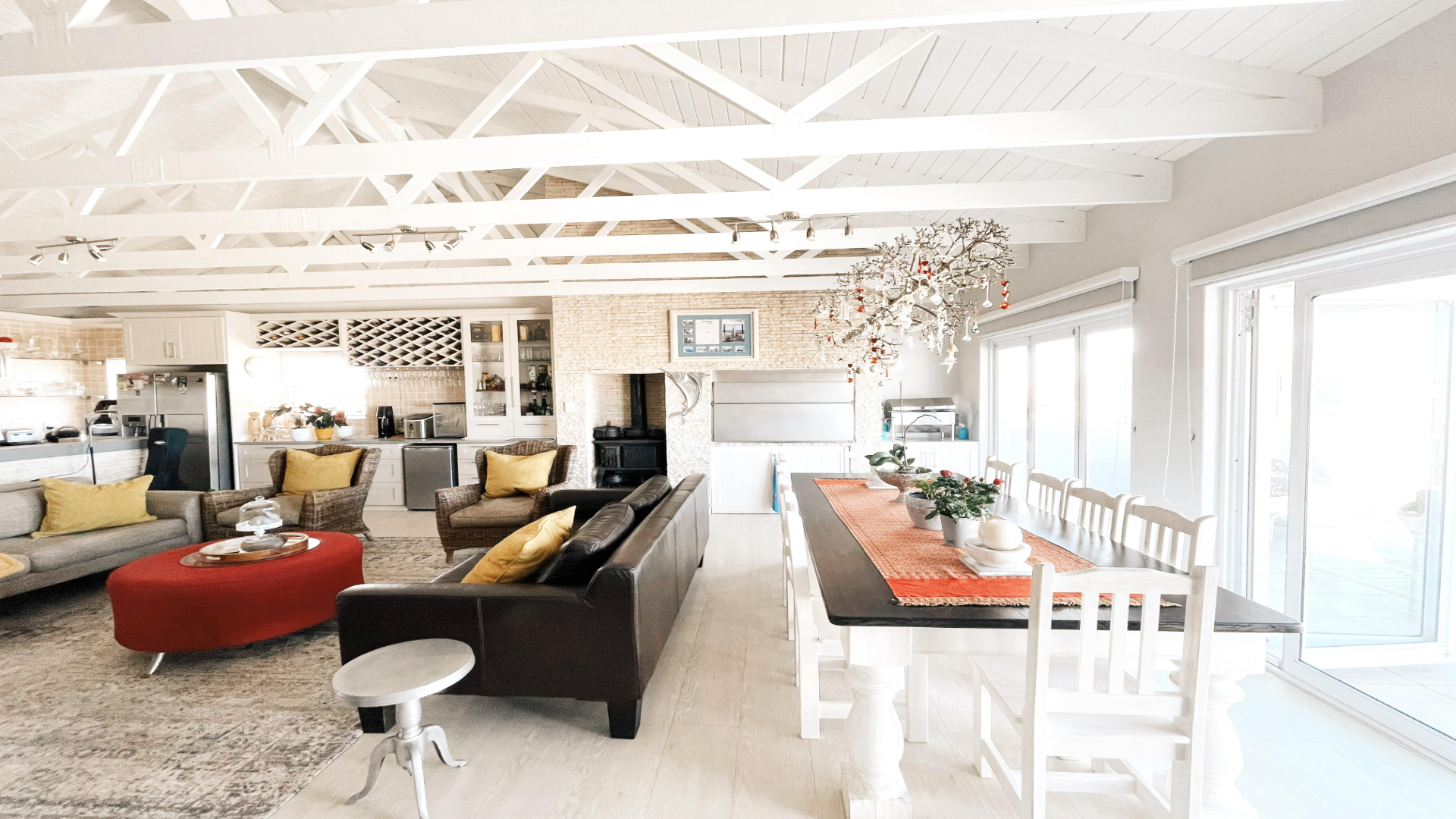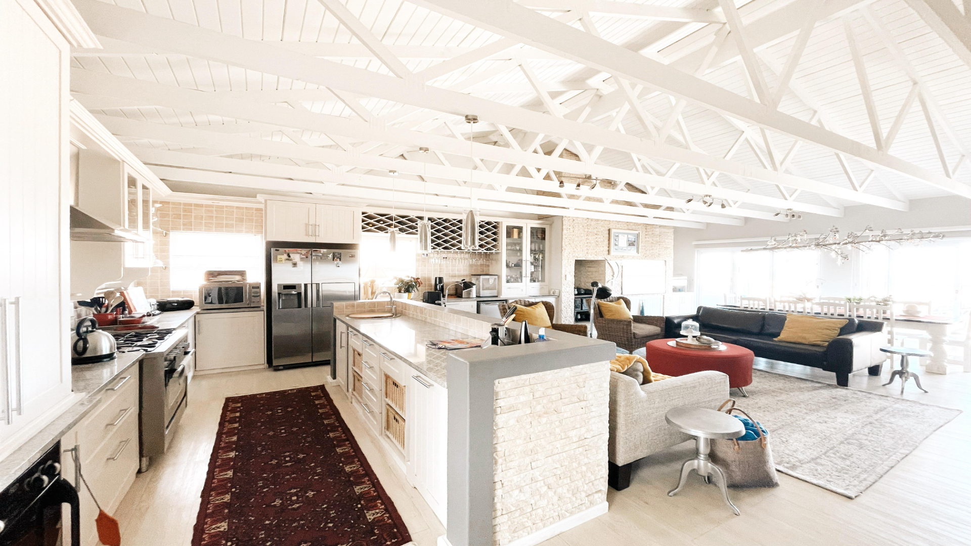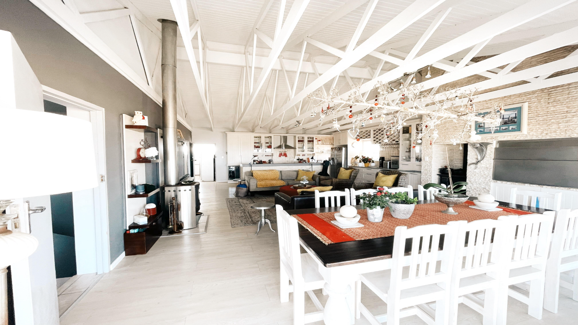 Upon entry, you are welcomed by a grand wooden floor that opens into a spacious reception area. This immediately establishes the home's nostalgic atmosphere and distinctive character. The ground floor features an expansive living area with an open- plan kitchen that is perfect for social gatherings and welcoming guests. Two well-appointed bedrooms provide comfortable accommodation for families or guests. A modern full bathroom and an additional guest toilet ensure convenience and functionality for everyone. The upper floor boasts a large modern open-plan kitchen equipped with an indoor braai and a dining area designed to meet diverse tastes. There is an inviting lounge or "man-cave" area that can serve as a comfortable retreat. A generous canteen area, perfect for online work or unwinding, offers stunning views of the ocean. Accompanying this is a nostalgic bedroom featuring a modern bathroom equipped with a full bath/shower, blending classic charm with contemporary amenities. The entire upper floor is encircled by a glass-enclosed balcony, which not only enhances the panoramic sea views but also adds to the overall elegance of the space. A large patio area further extends the living space, allowing residents to fully appreciate the sea breeze and spectacular views