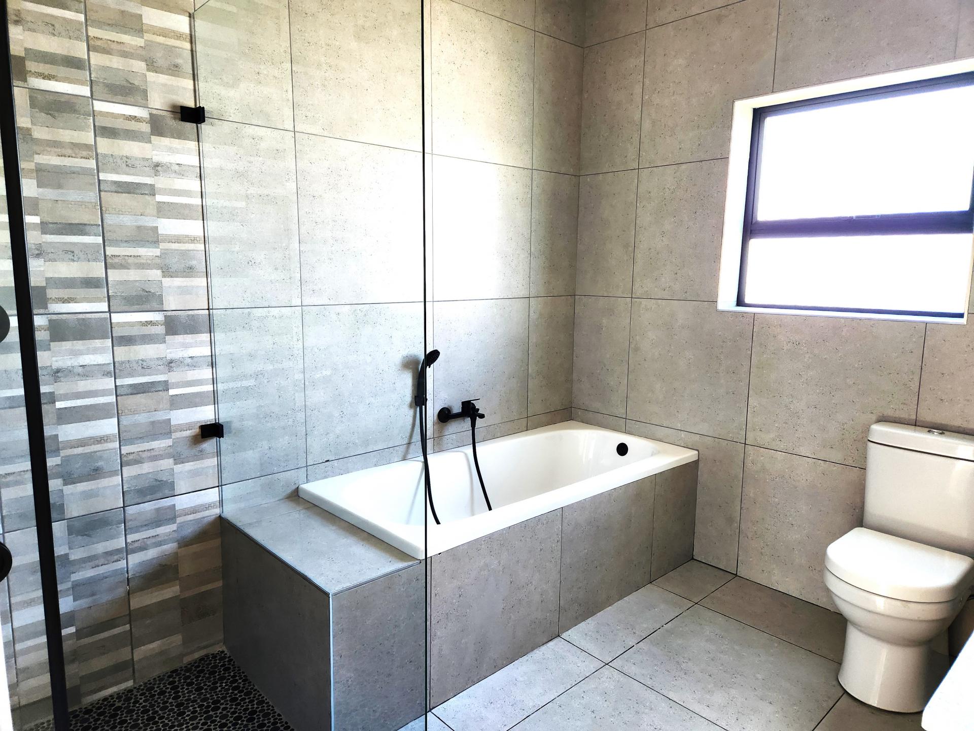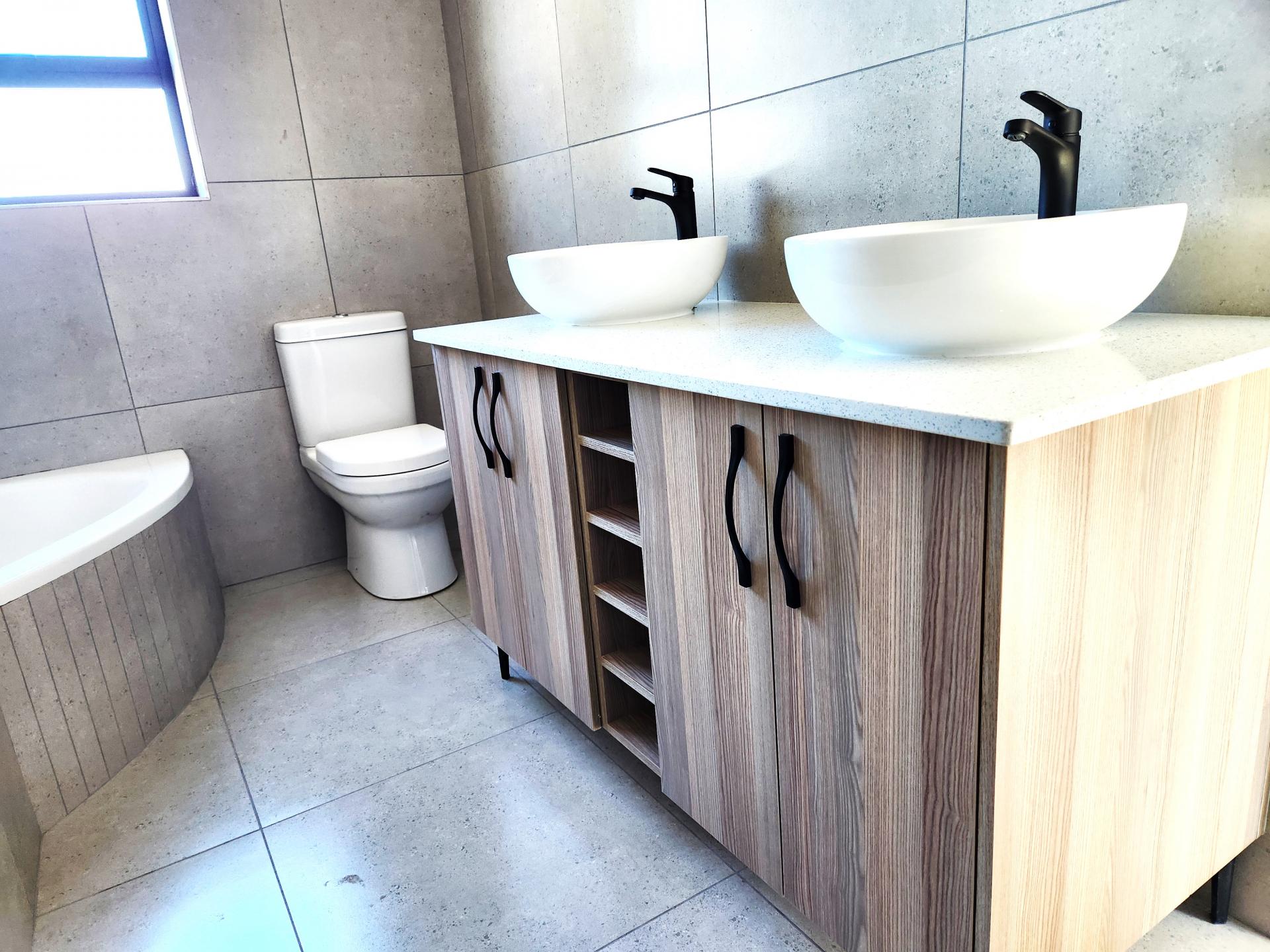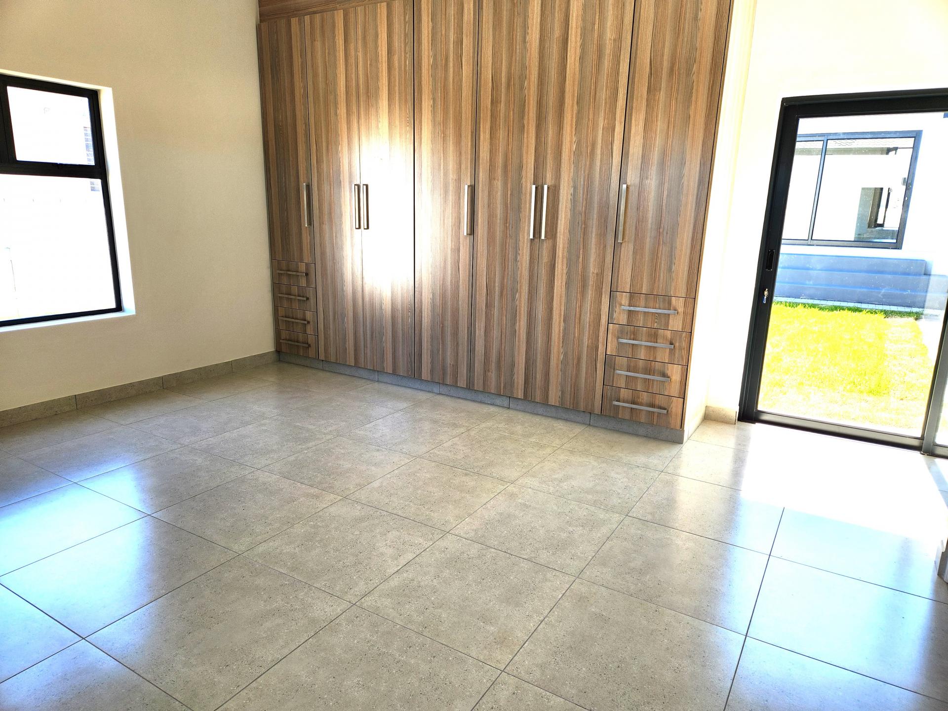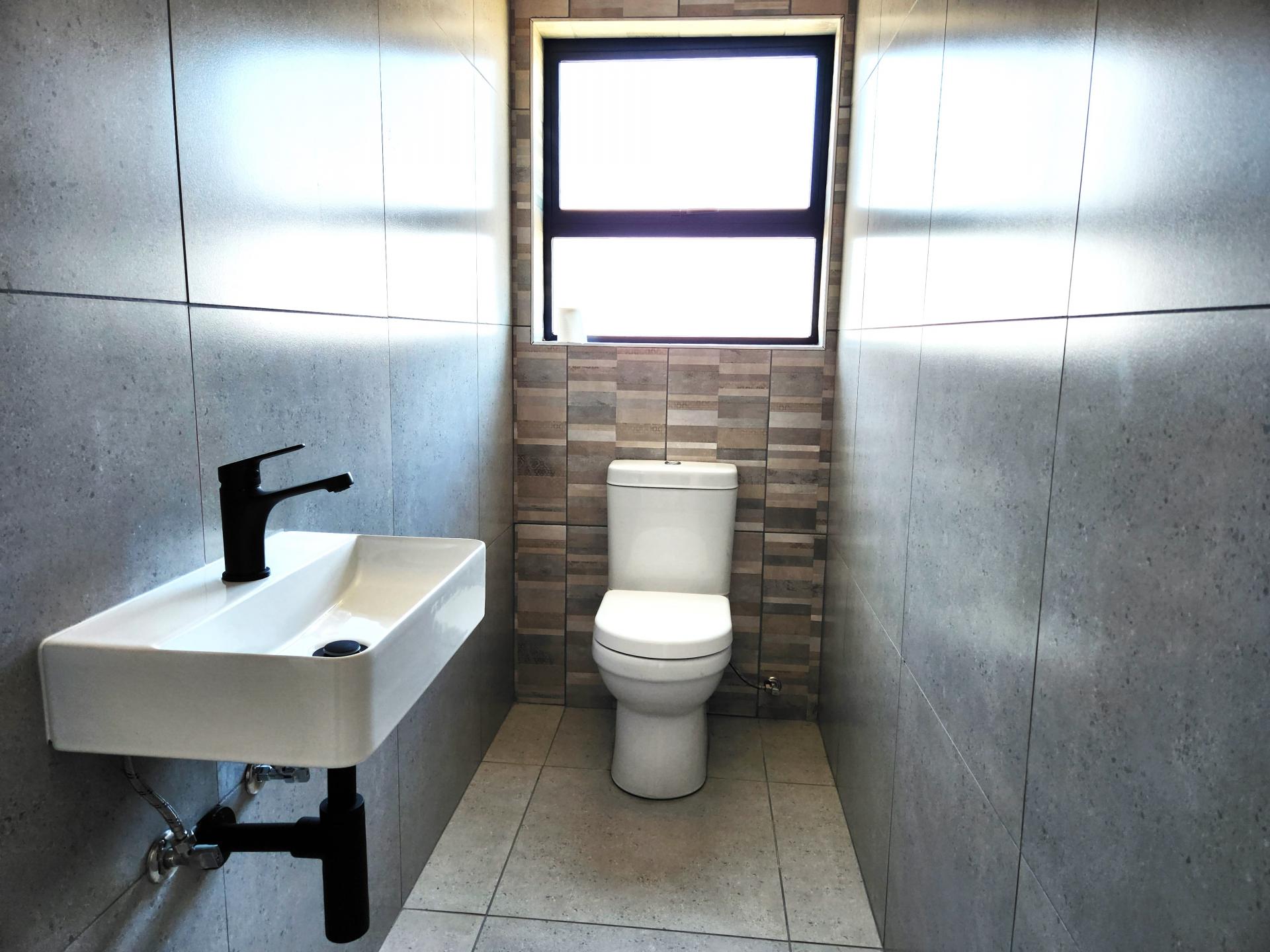 The dining area, also part of the open plan layout, features large sliding doors that flood the space with natural light and offer access to the outdoor entertainment area. The lounge area flows seamlessly into the braai/entertainment area, complete with a built-in braai and a beautifully designed built-in bar, ideal for hosting gatherings and creating unforgettable memories with friends and family. Additionally, there's a kitchenette with a prep bowl for added convenience, and a guest toilet for the comfort of your guests.