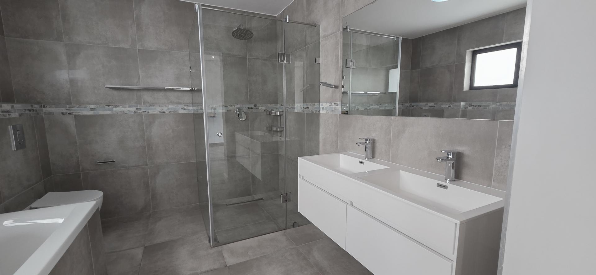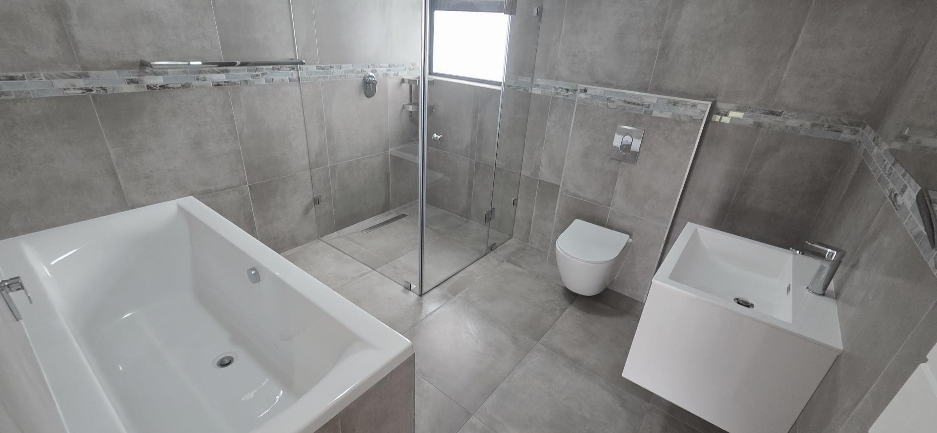 The home offers excellent bedroom separation for privacy. The master suite includes a full en-suite bathroom, generous cupboard space, and direct access to the garden. Two additional bedrooms share a stylish full bathroom, while a fourth bedroom with private entrance and en-suite shower bathroom is perfect for guests or extended family. A convenient guest toilet completes the layout.
