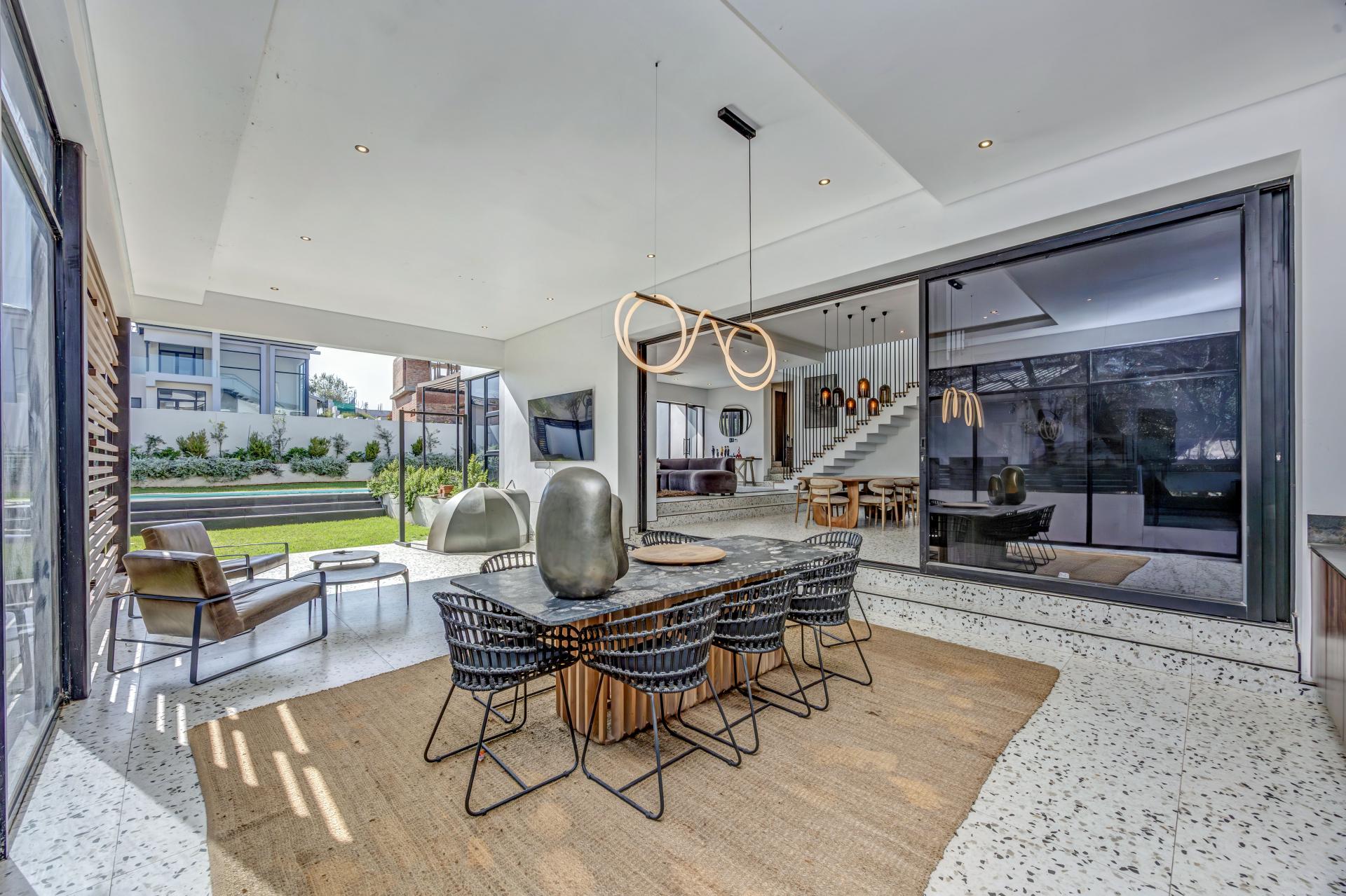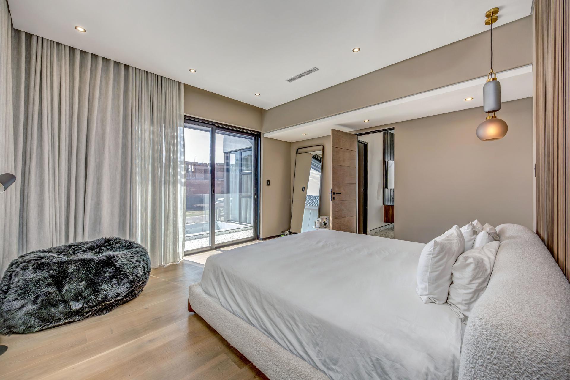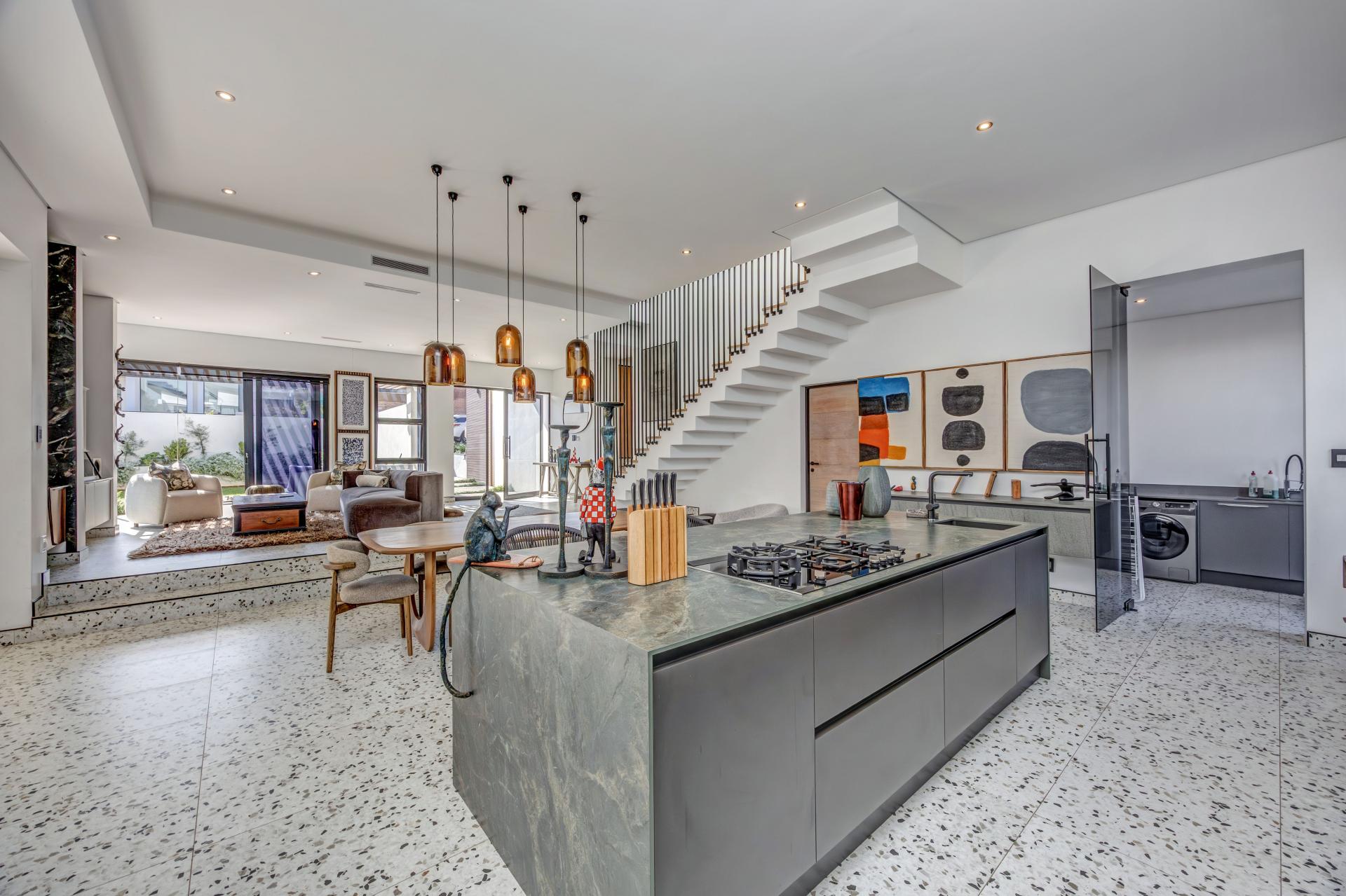 This newly built, architecturally crafted home is a true showcase of modern elegance and sustainable living. Designed with a seamless blend of style and practicality, the spacious open-plan layout effortlessly links expansive living areas to a state-of-the-art kitchen featuring integrated appliances, a dedicated scullery, and sleek finishes—ideal for both everyday comfort and stylish entertaining.