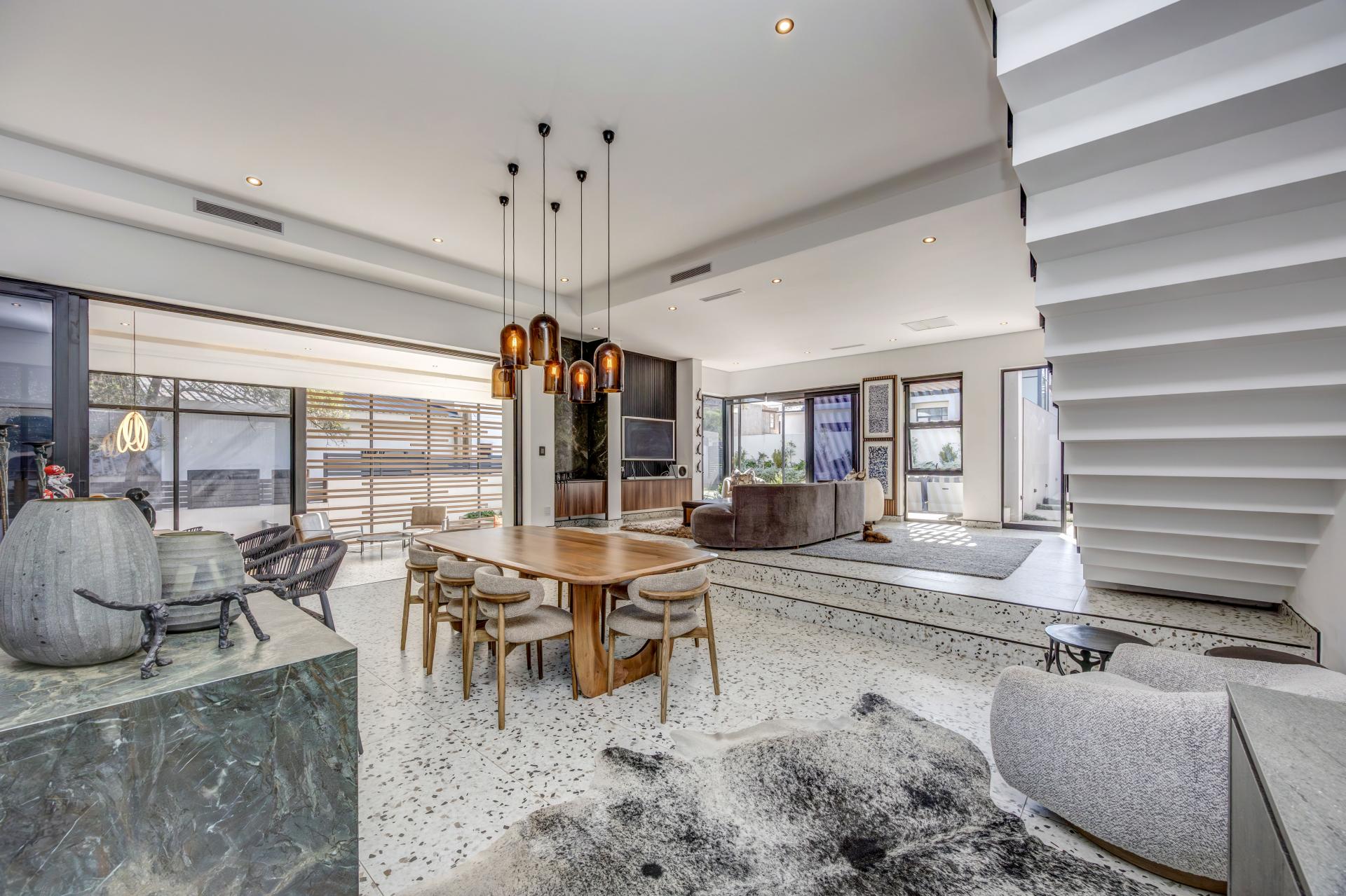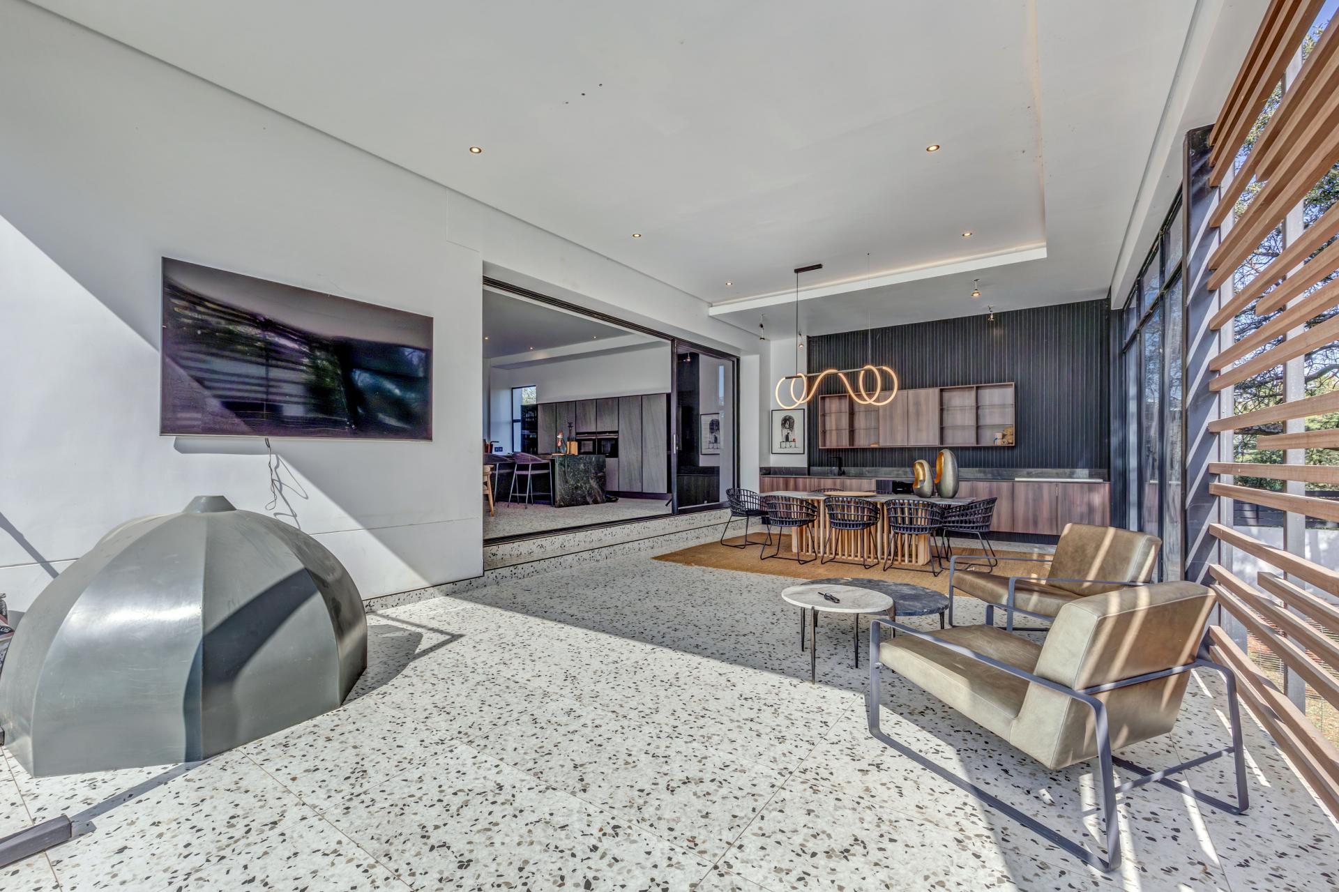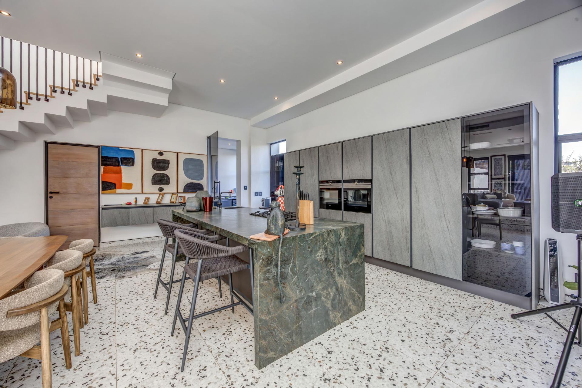 This newly built, architecturally crafted home is a true showcase of modern elegance and sustainable living. Designed with a seamless blend of style and practicality, the spacious open-plan layout effortlessly links expansive living areas to a state-of-the-art kitchen featuring integrated appliances, a dedicated scullery, and sleek finishes—ideal for both everyday comfort and stylish entertaining.