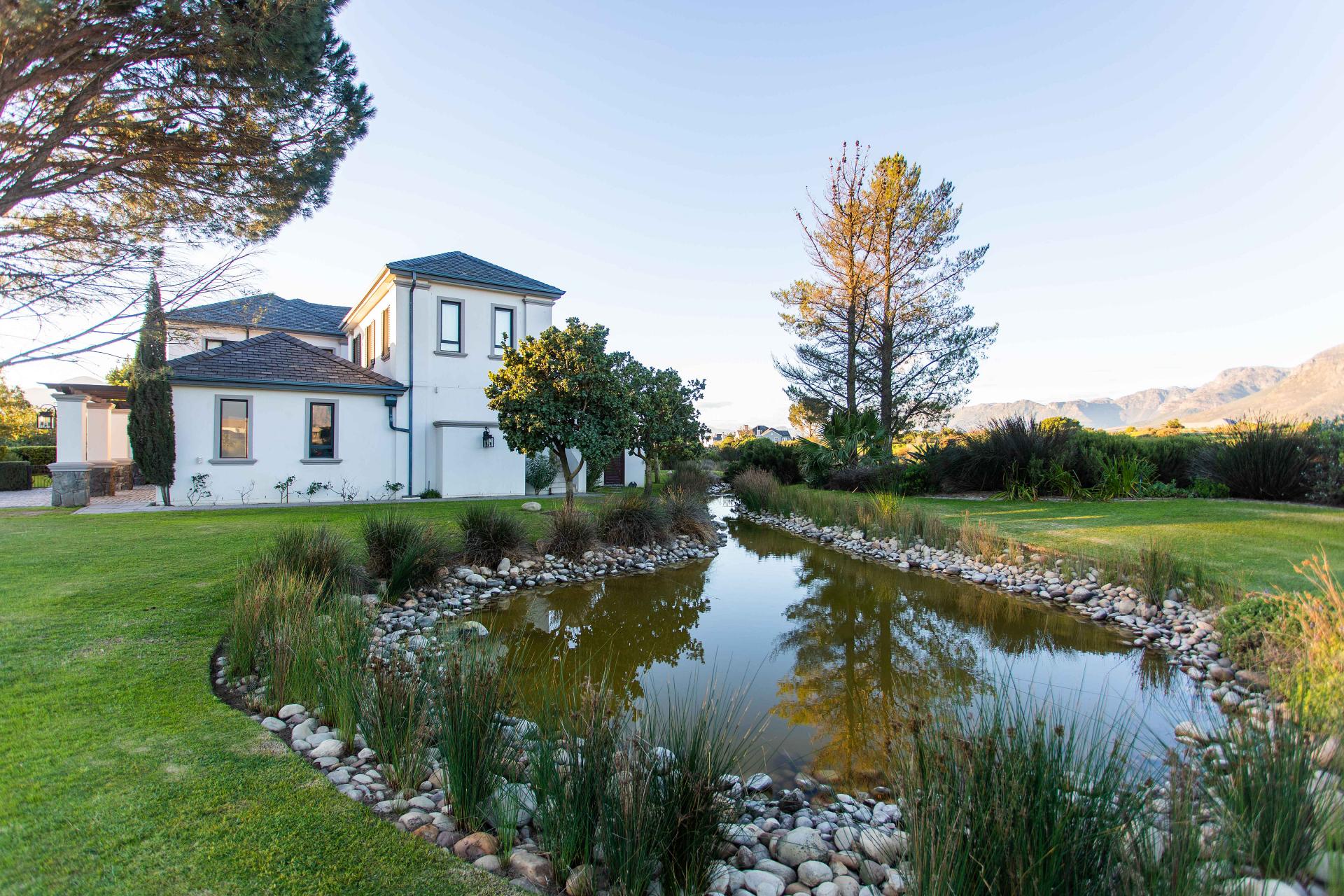 This exceptional residence in Val de Vie Estate offers a rare blend of luxury, privacy, and natural beauty — with direct views of a protected nature reserve and roaming wildlife.