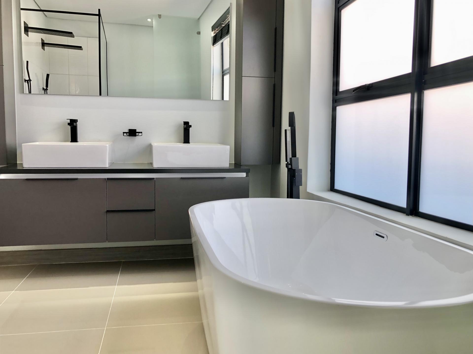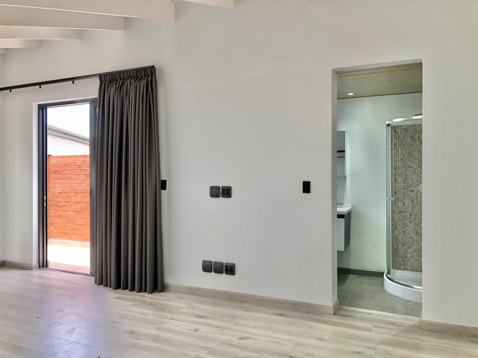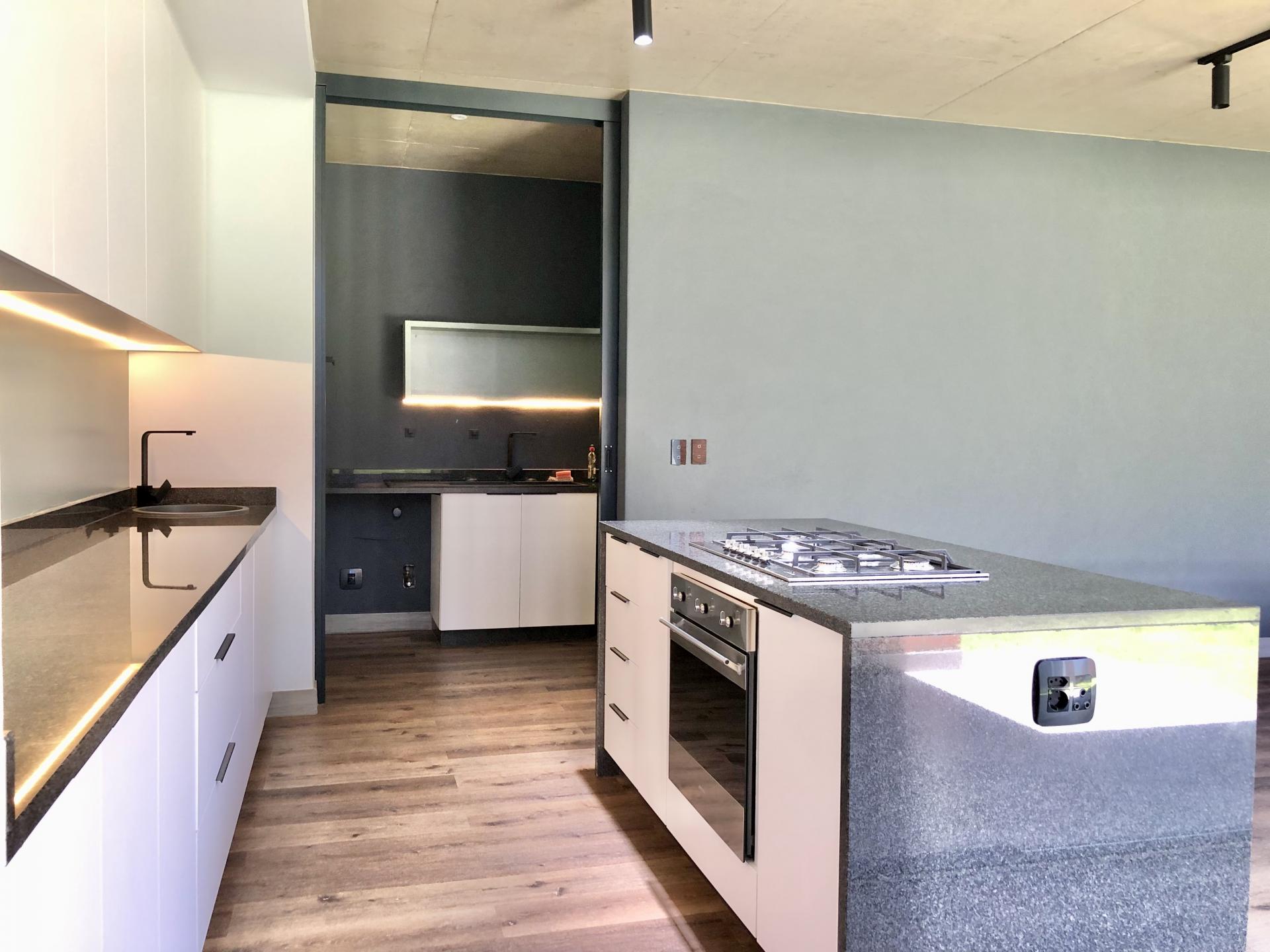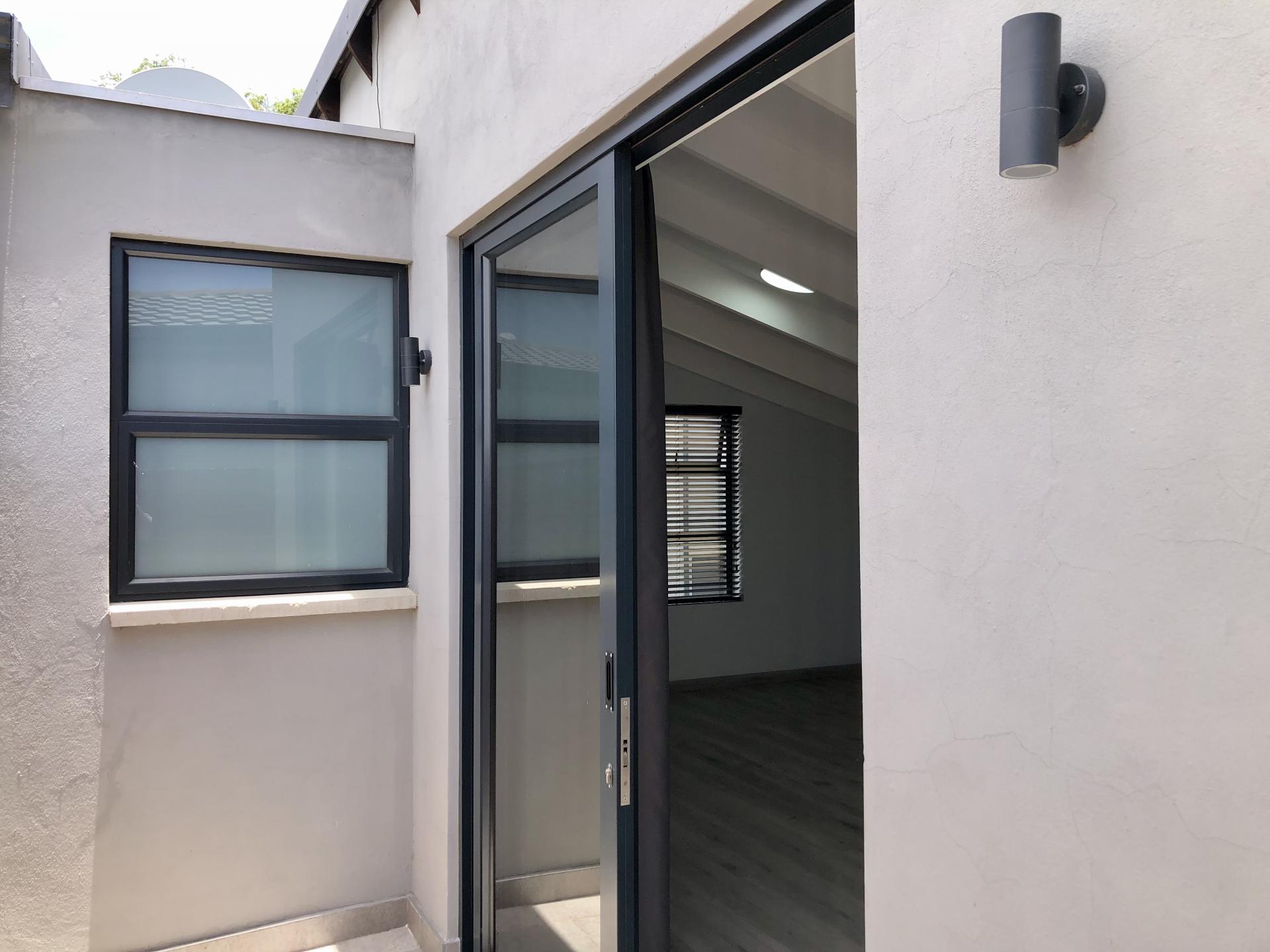 The open-plan layout greets you with a modern living area that flows seamlessly into a dining space and lounge, perfect for entertaining. The double aluminum glass sliding doors open onto the patio and braai area offering a relaxing outdoor dining experience.