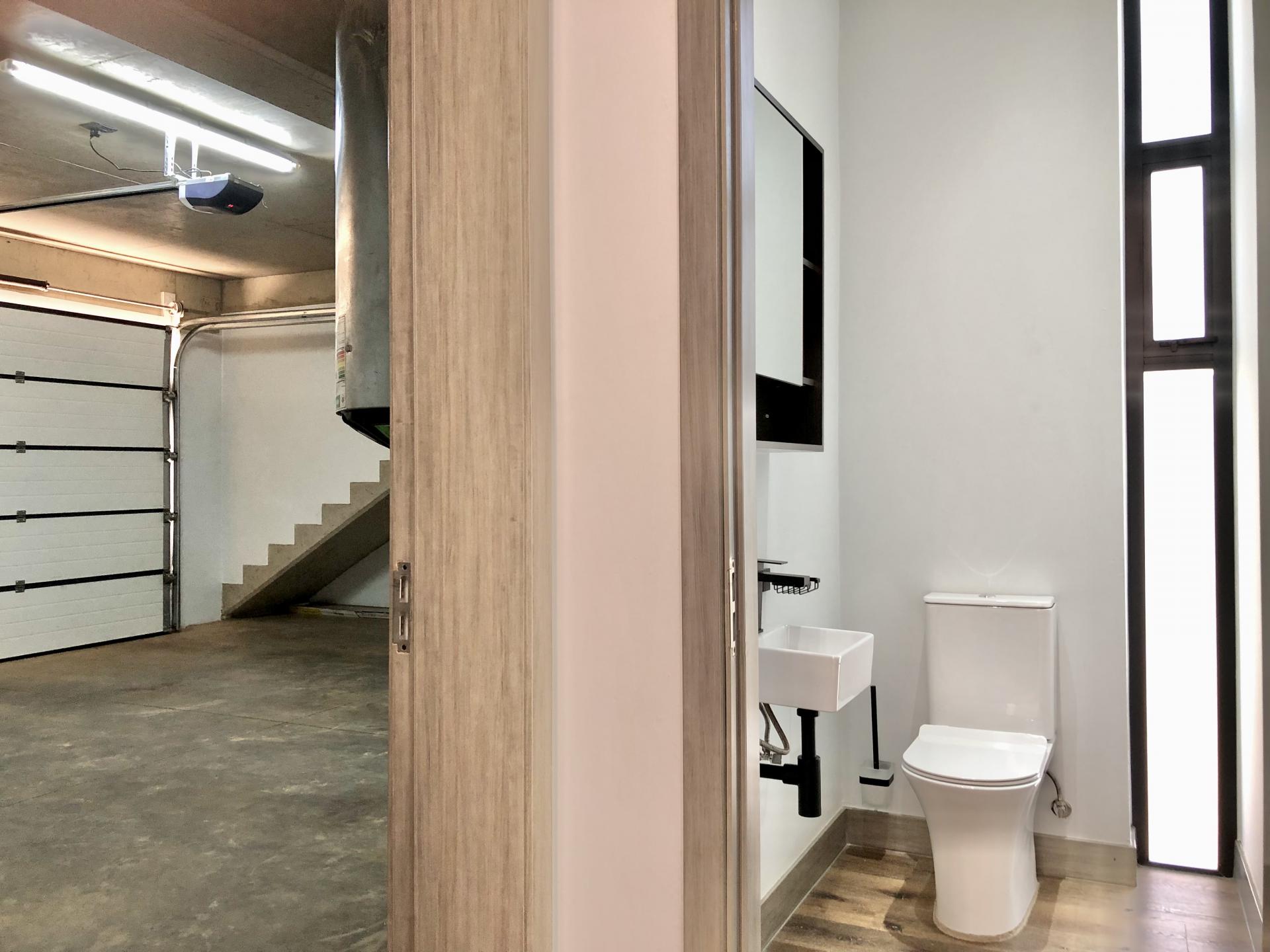The 4th bedroom en-suite bathroom with shower, basin, and toilet, can be used as a home office or studio. With a separate entrance above the double garage, it is ideal for independent living or a private workspace.