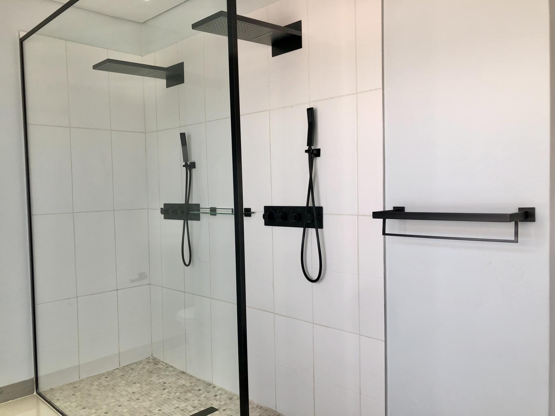 Includes a spacious en-suite bathroom with double showers, hand showers, and double vanities.