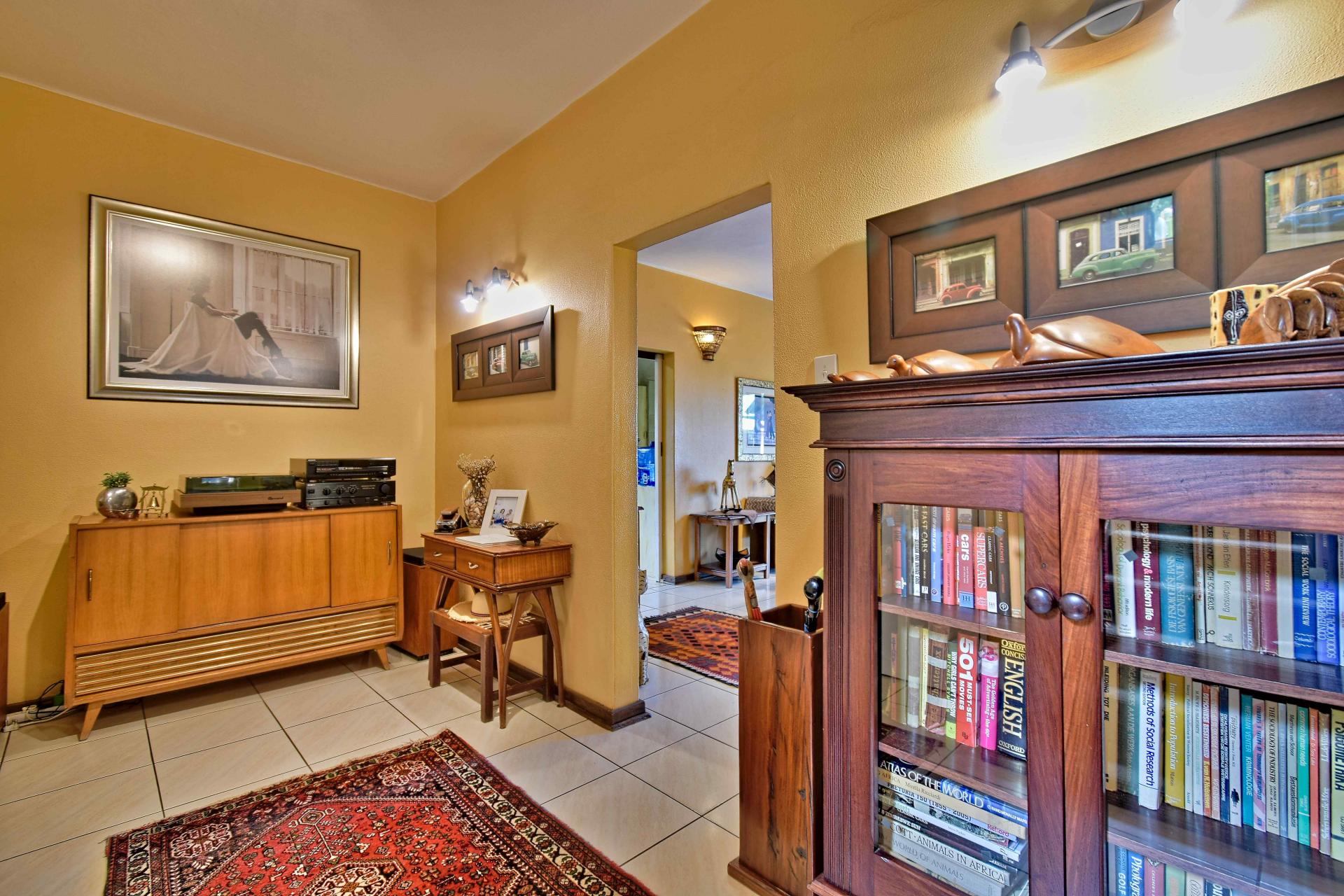 Step inside through the spacious tiled entrance hall into a warm and welcoming atmosphere. A guest toilet and formal carpeted lounge with large windows set the tone for easy family living and entertaining. The sunny tiled passage leads to a family/music room with a solid wood built-in bar and wooden sliding doors opening onto an open-air patio and sparkling swimming pool – ideal for hosting guests or enjoying relaxed weekends.