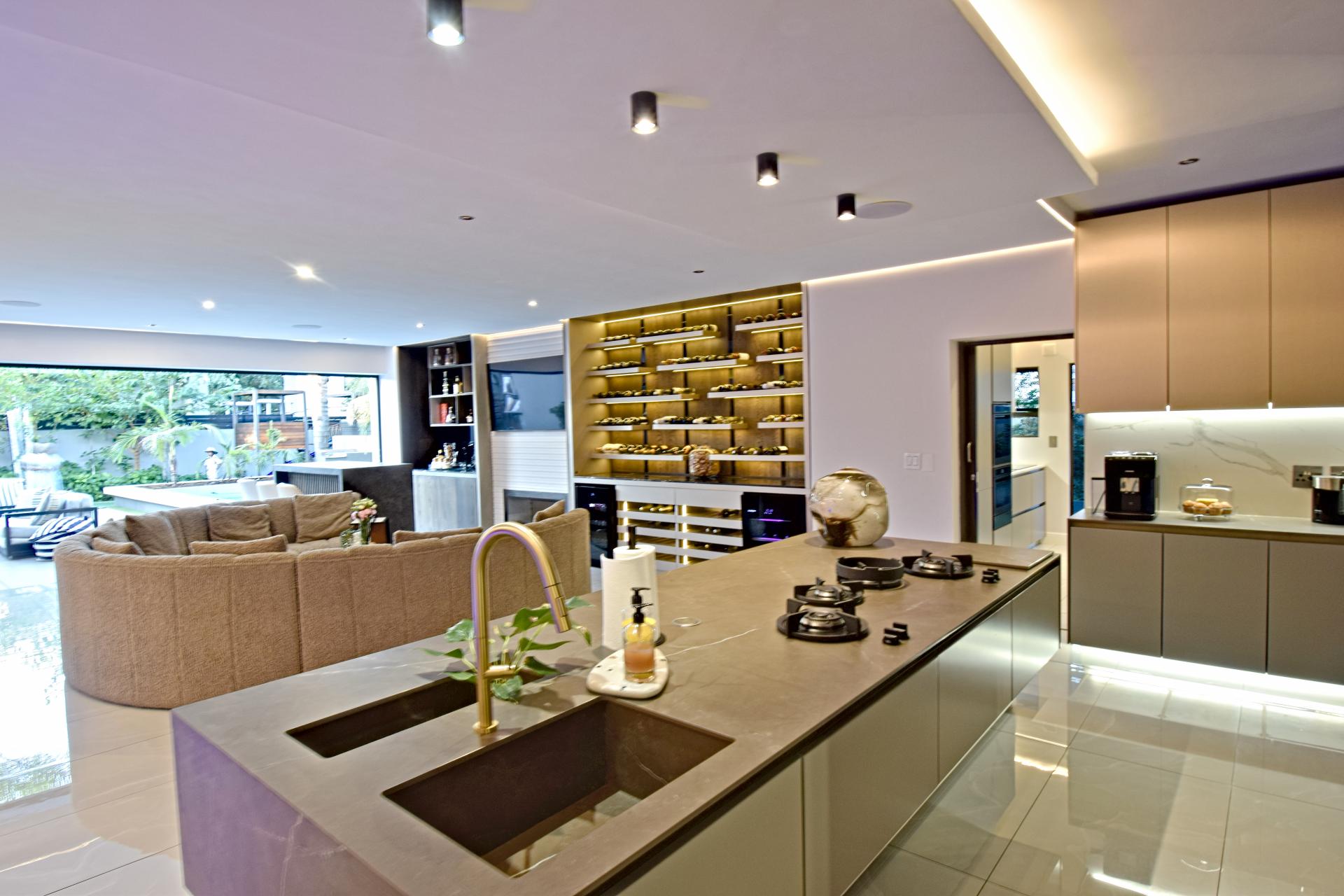 Designed for both everyday living and unforgettable gatherings, the open-plan layout flows with ease. A welcoming lounge, elegant dining area with a modern gas fireplace, and a stylish bar with a feature wine wall form the heart of the home.