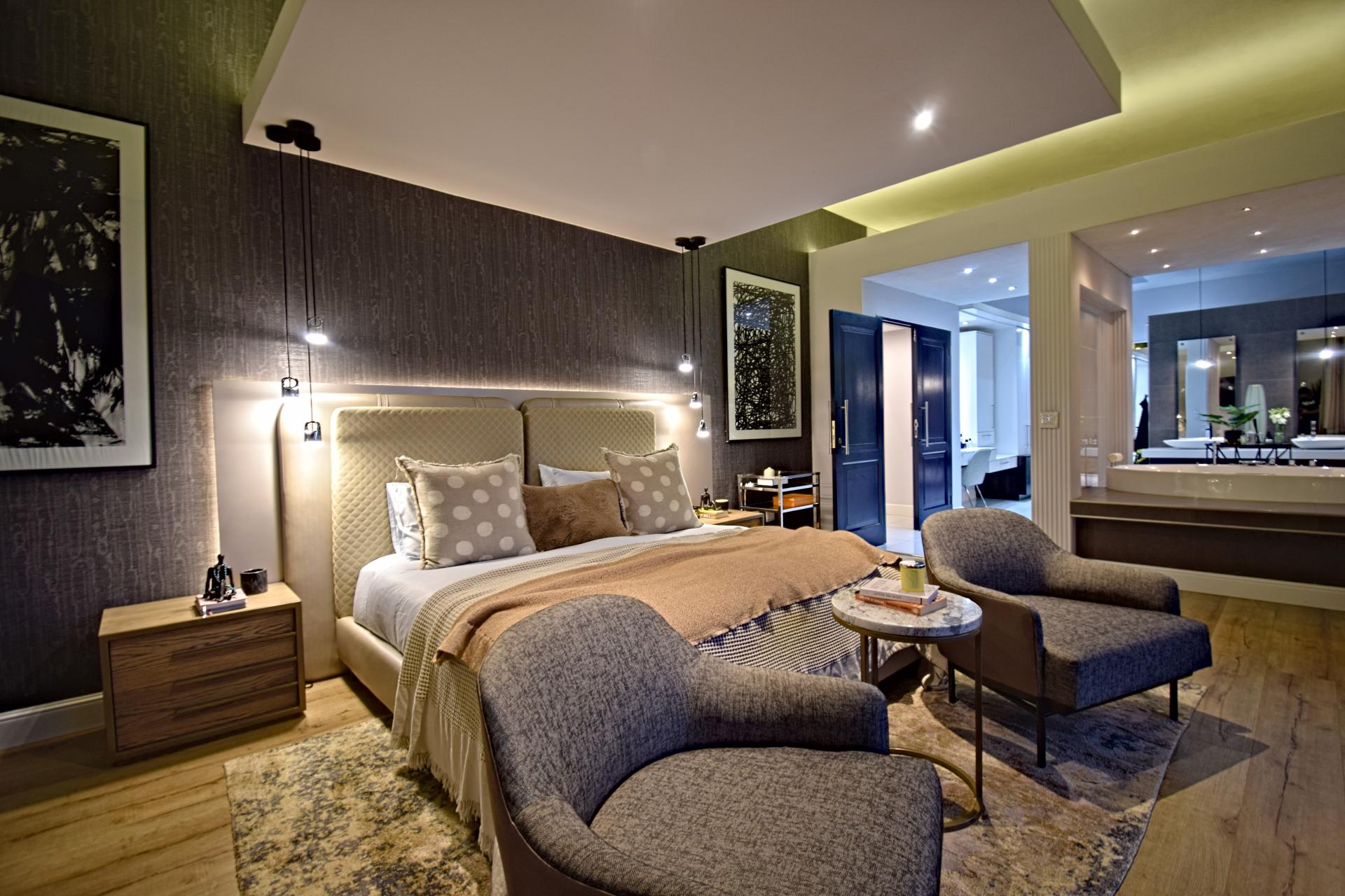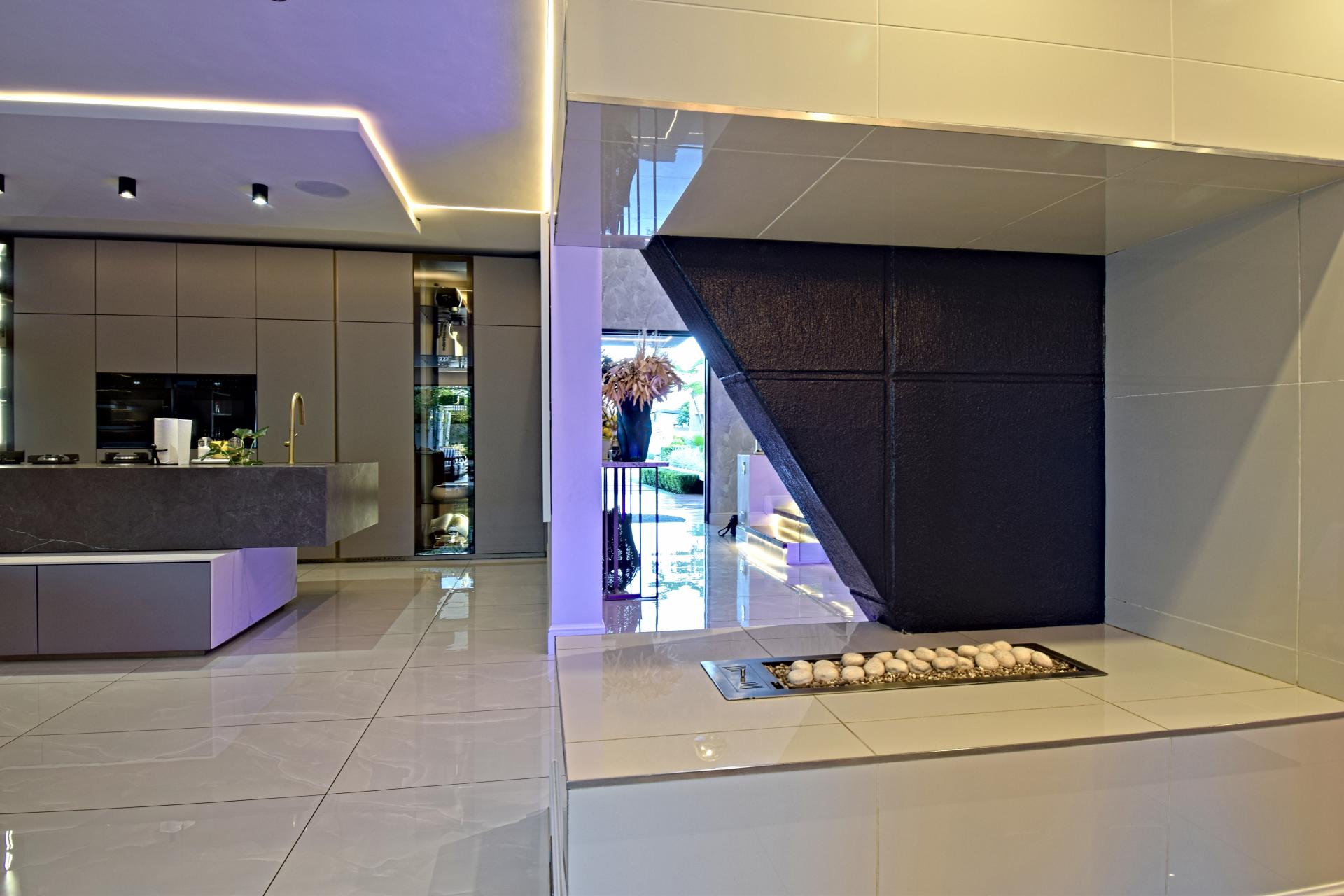 The bespoke Nuuma kitchen is a chef’s dream, featuring sleek cabinetry, integrated appliances, and a stone-topped island with a Pitt gas hob. A fully equipped chef’s kitchen, with a gas/electric stove and double oven, ensures a flawless cooking experience for every occasion.