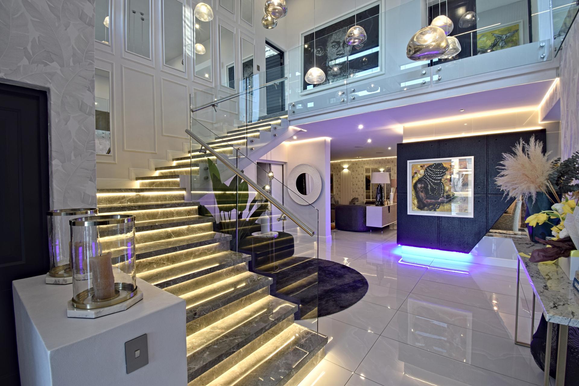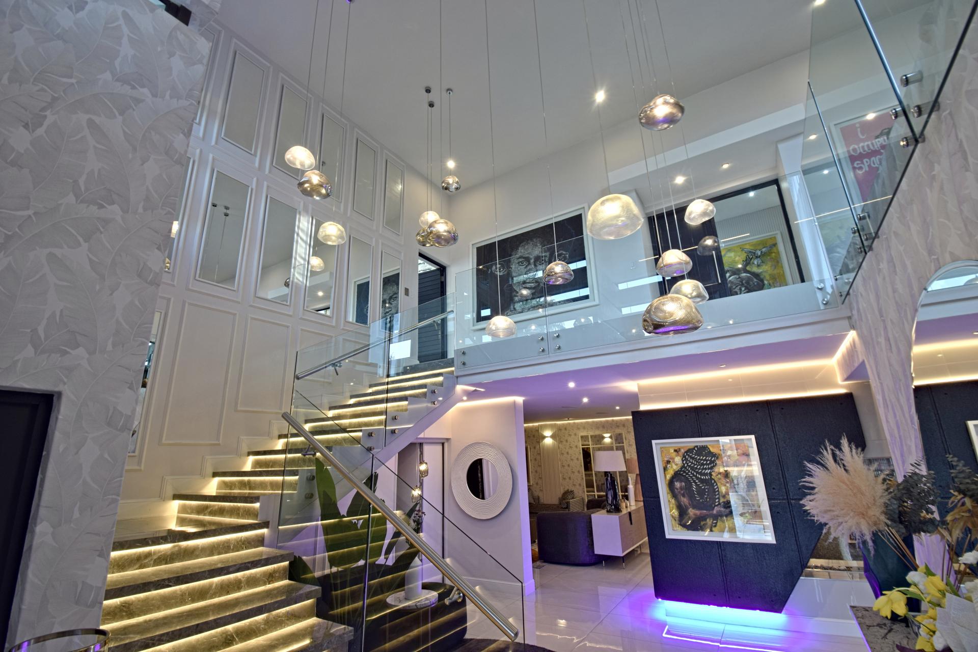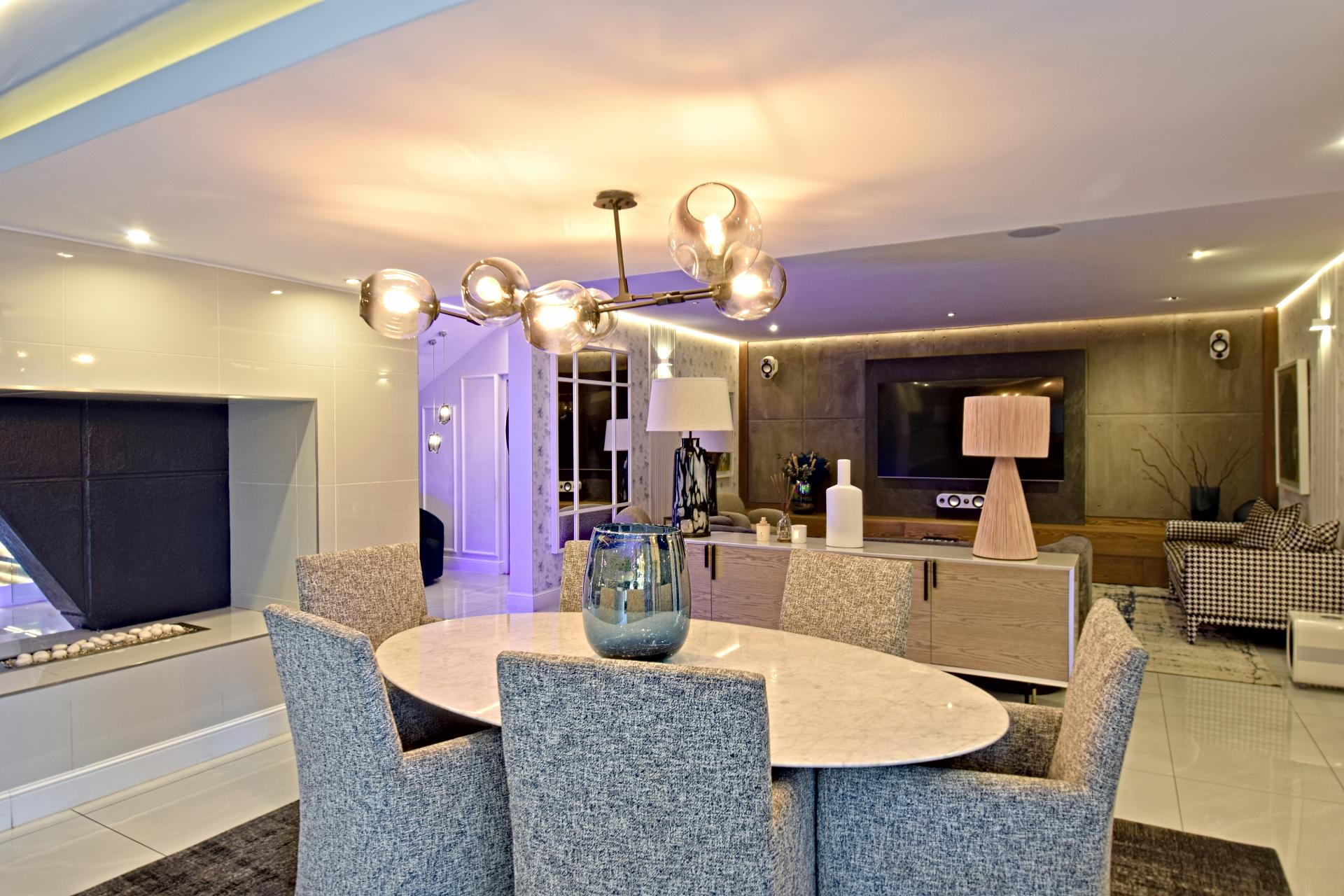 Designer lighting throughout, including ambient, pendant & chandelier pieces