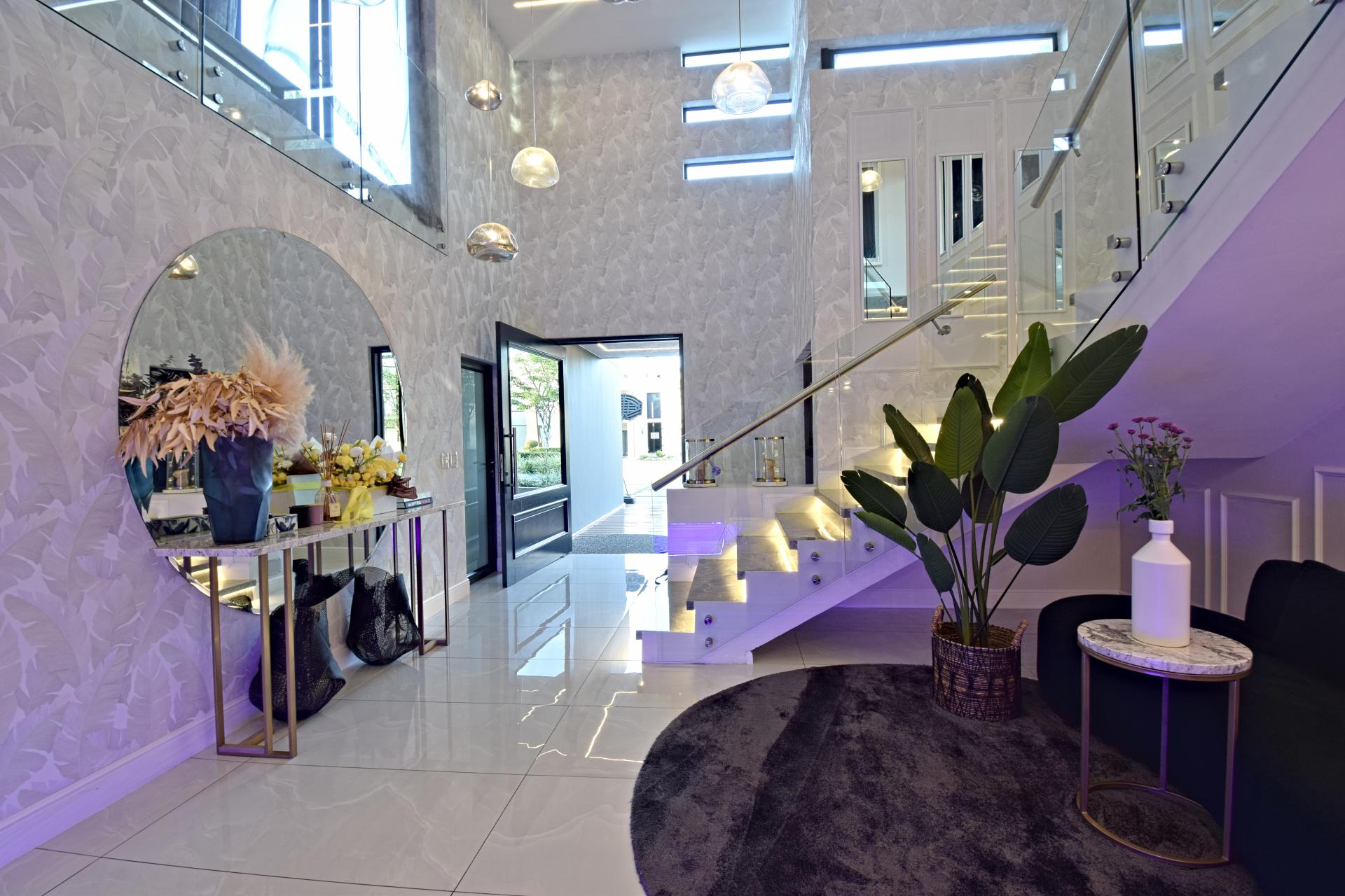 A captivating water feature and double-volume entrance set the tone for what awaits inside. Soaring ceilings, a dramatic staircase, and abundant natural light create a breathtaking first impression.