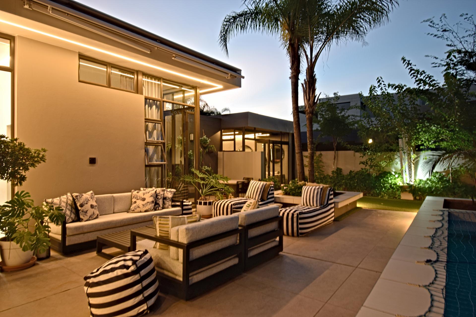 -Glass stacking doors blur the line between indoors and outdoors, opening to a private oasis complete with: