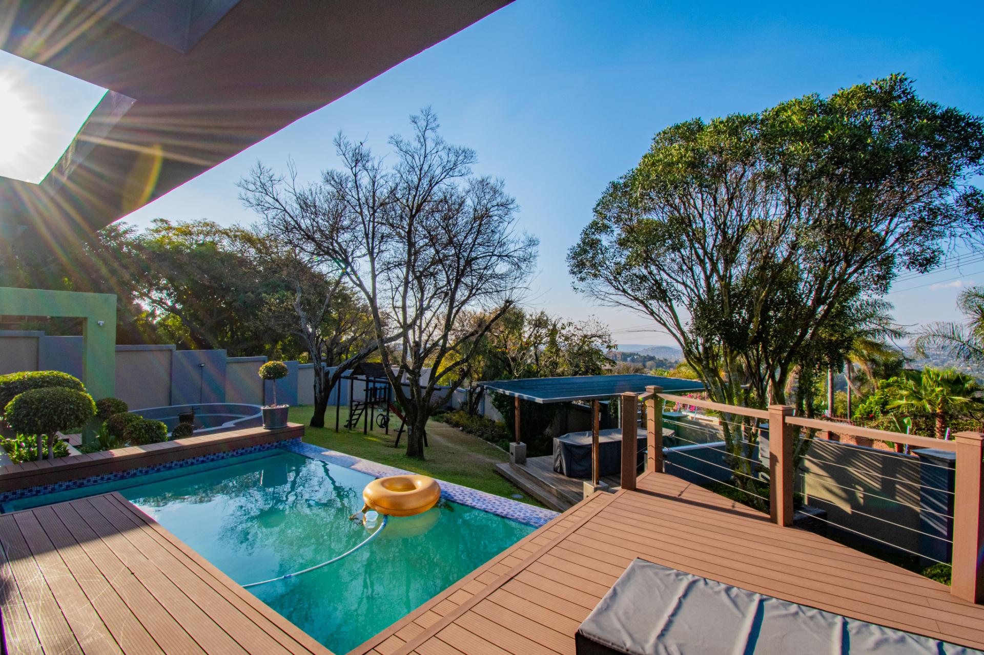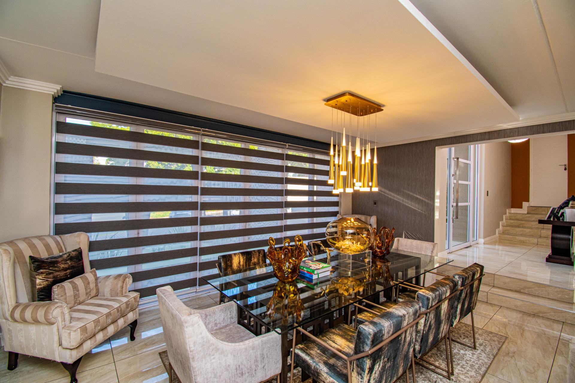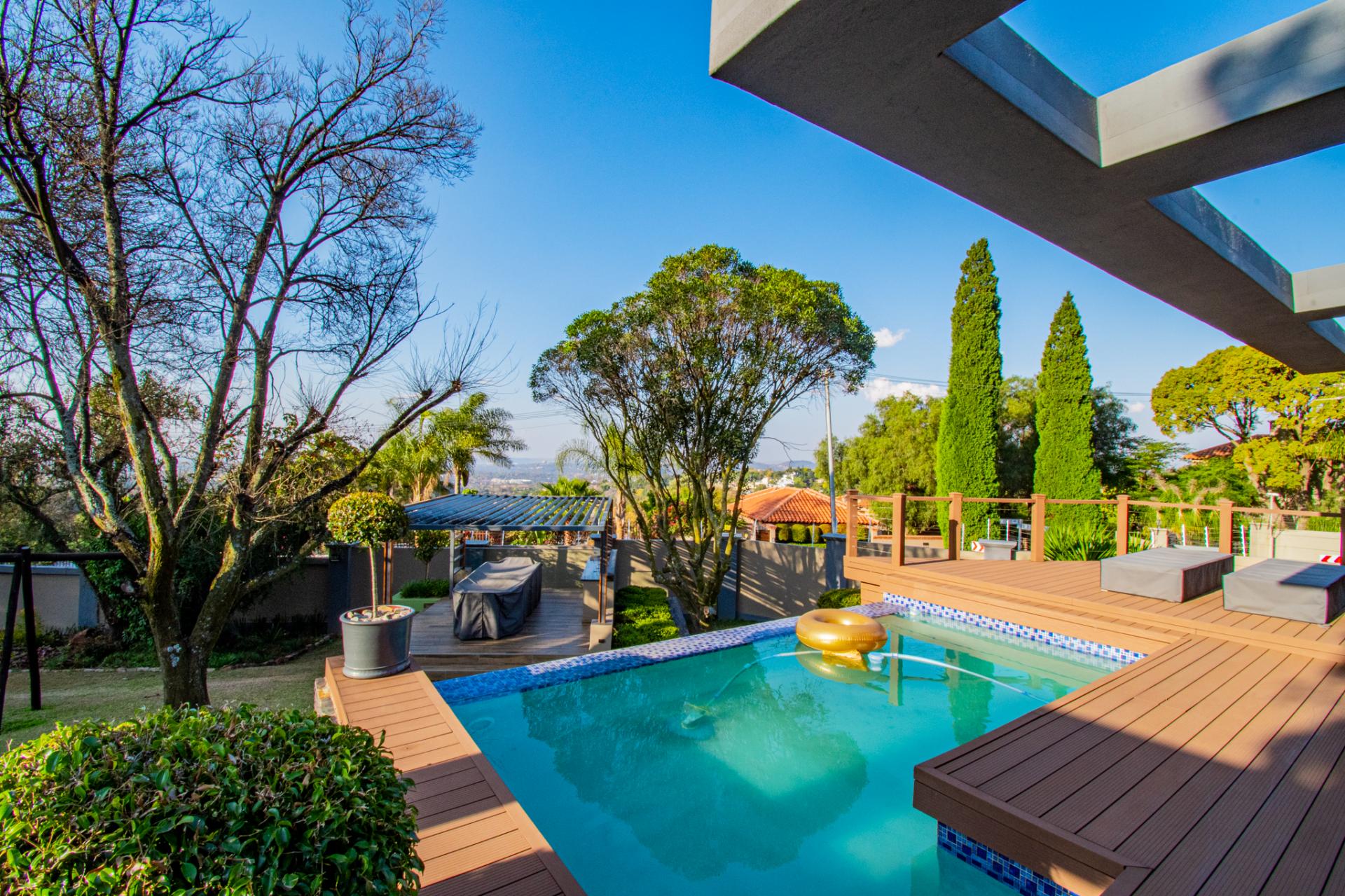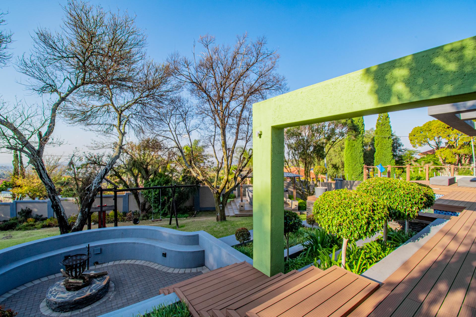 The outdoor living spaces are an extension of the home's artful design, offering multiple terraces, a state-of-the-art infinity pool, and meticulously manicured gardens. Whether you're lounging by the pool or hosting gatherings on the spacious patio, the backdrop of Pretoria East's natural beauty sets an enchanting stage for every occasion.