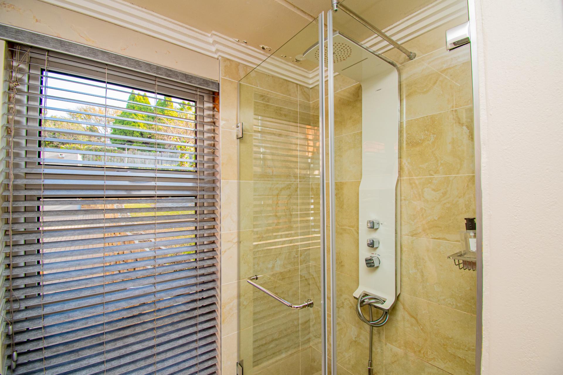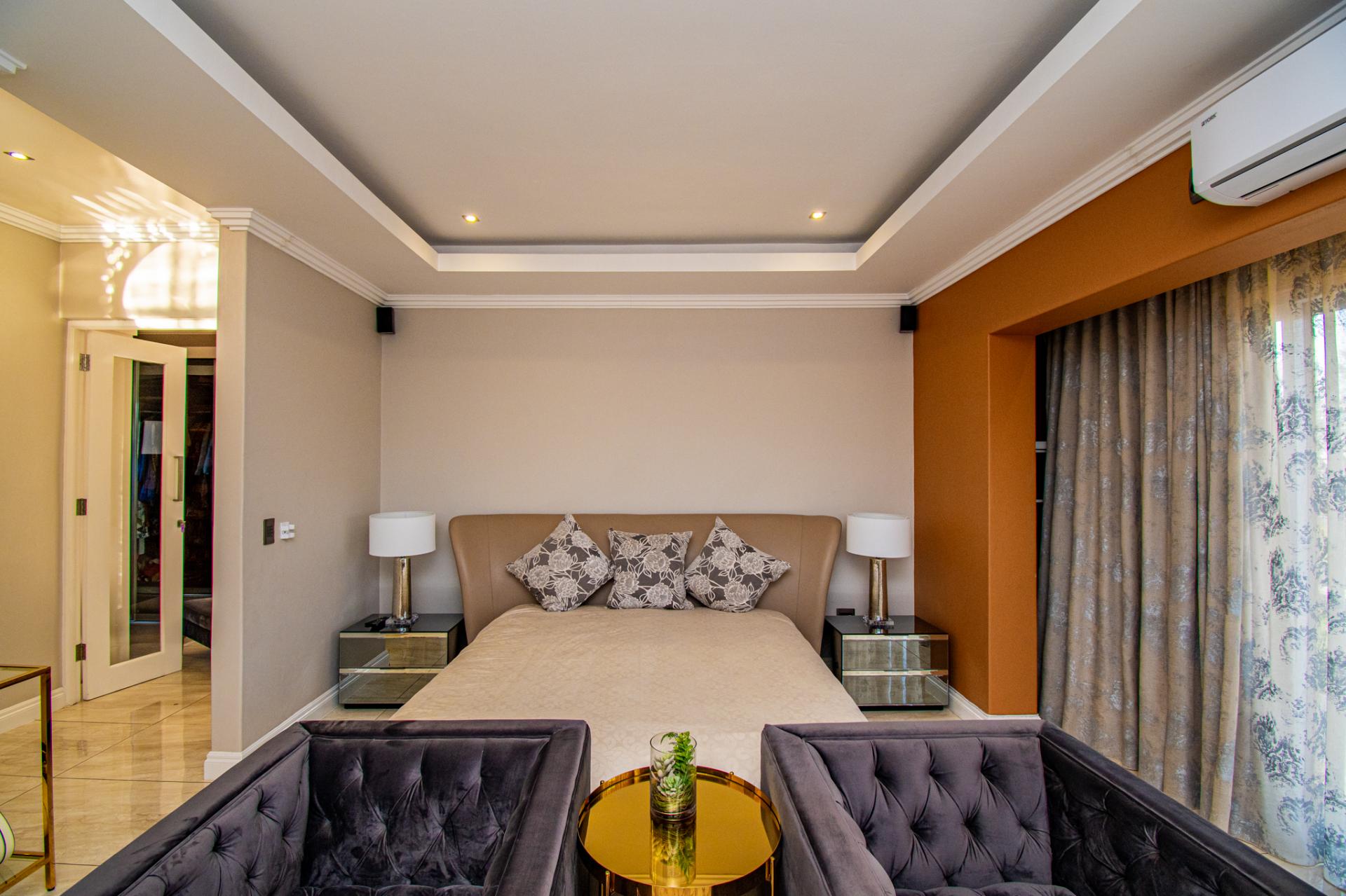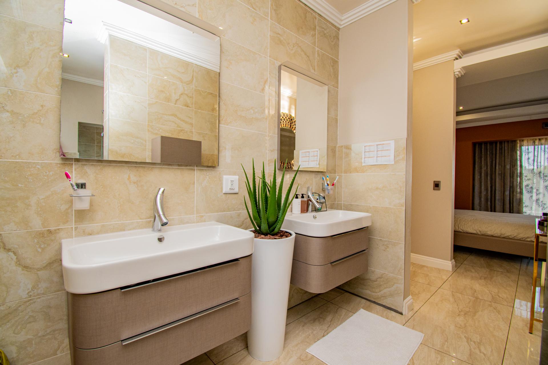The four sumptuous bedrooms exude tranquility and comfort, each offering its own ensuite bathroom adorned with luxurious finishes. The master suite, a true sanctuary, features a private terrace overlooking the sprawling Pretoria East landscape, providing an intimate retreat for moments of reflection.