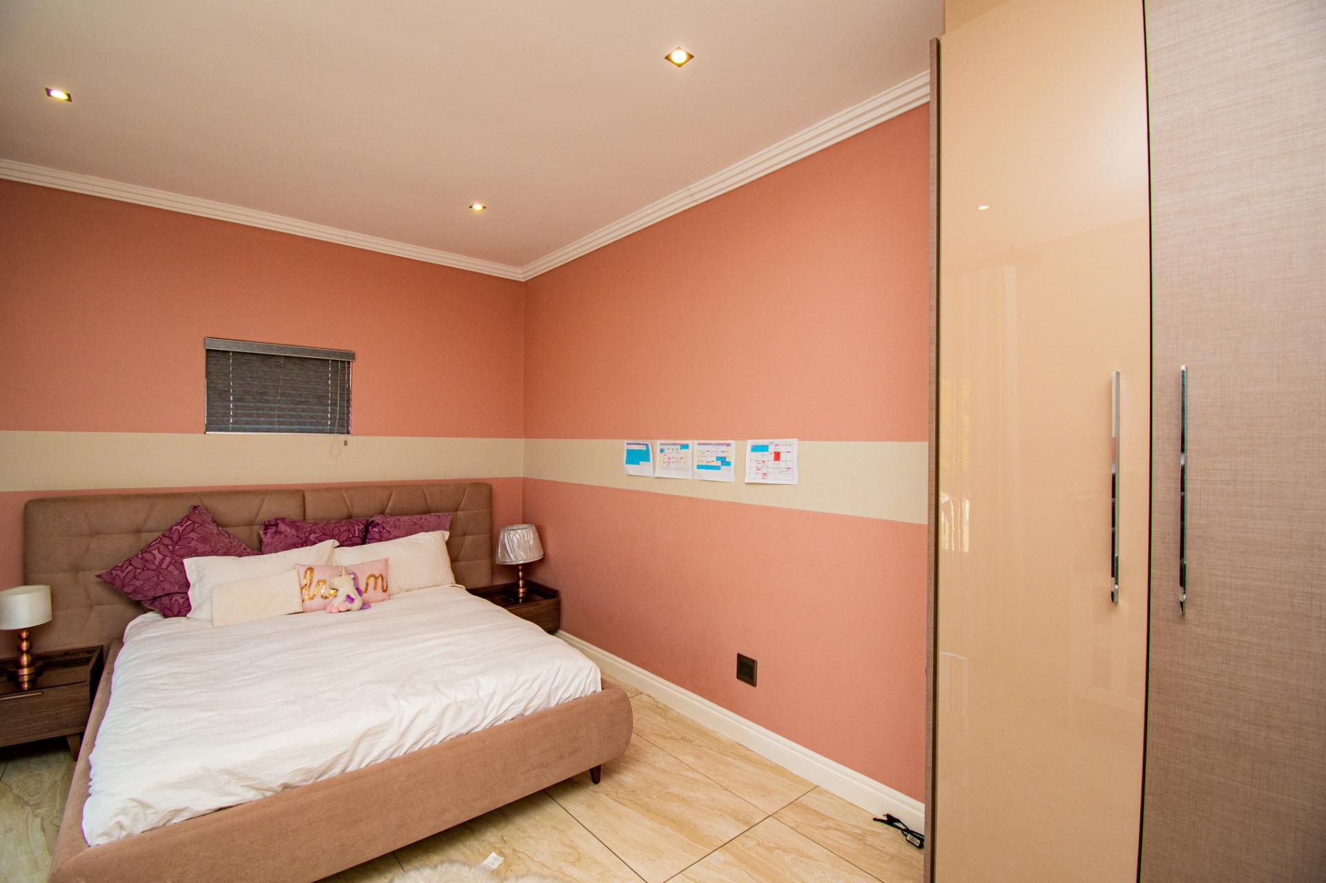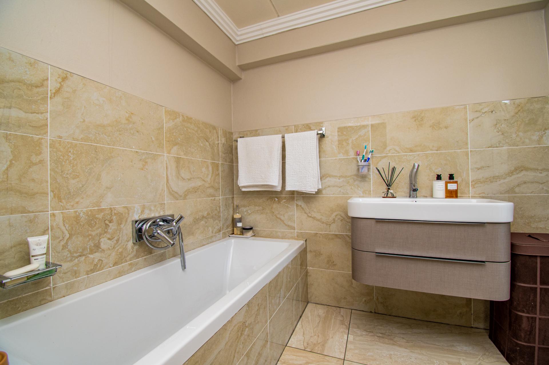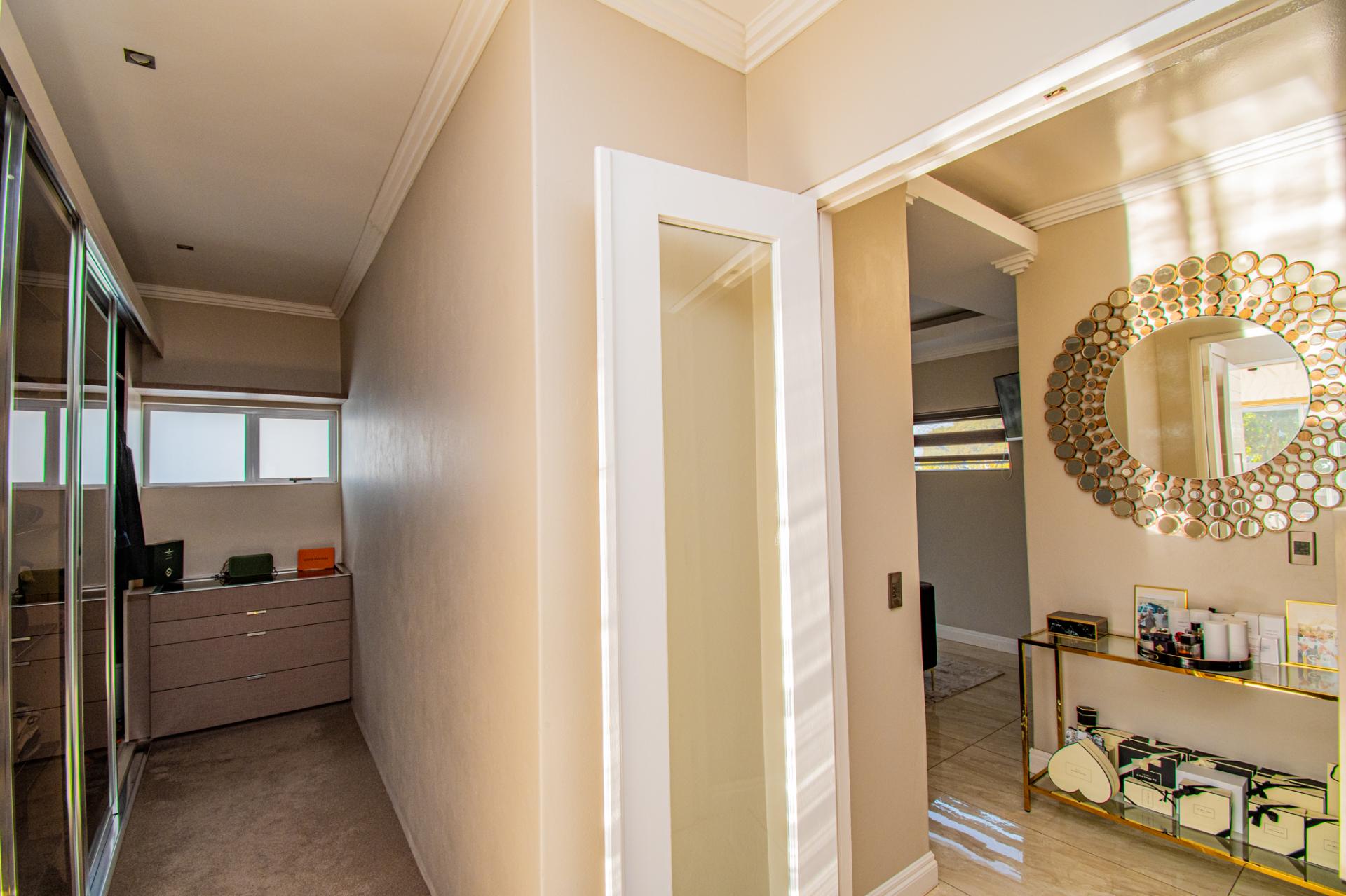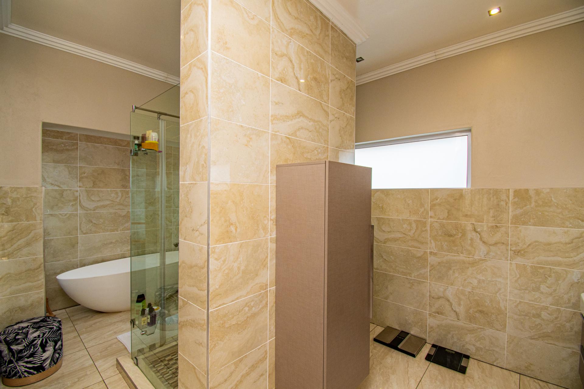 The four sumptuous bedrooms exude tranquility and comfort, each offering its own ensuite bathroom adorned with luxurious finishes. The master suite, a true sanctuary, features a private terrace overlooking the sprawling Pretoria East landscape, providing an intimate retreat for moments of reflection.