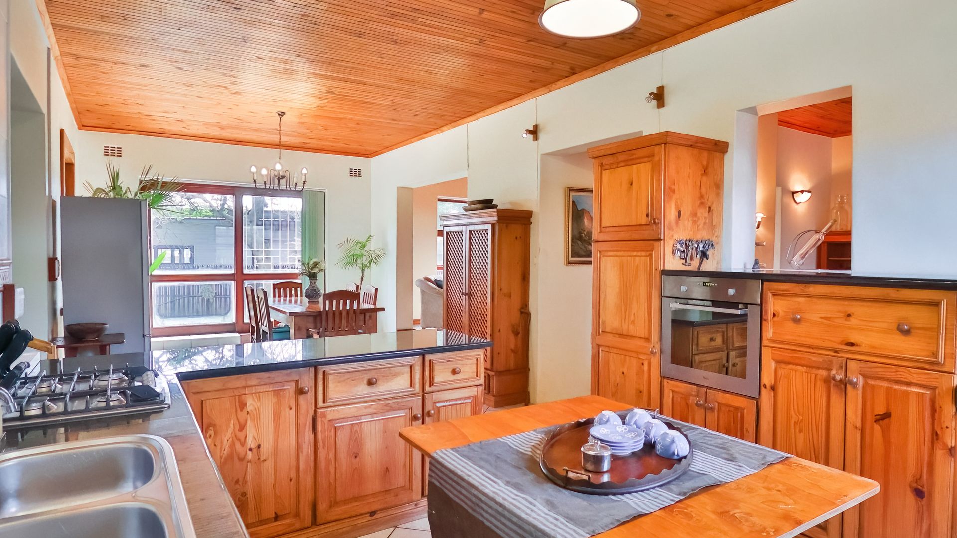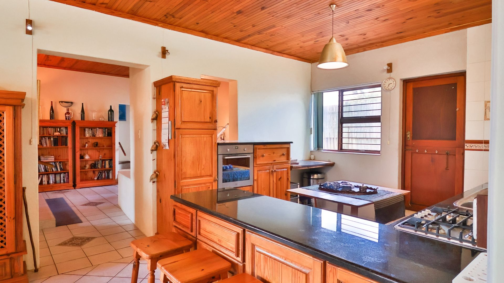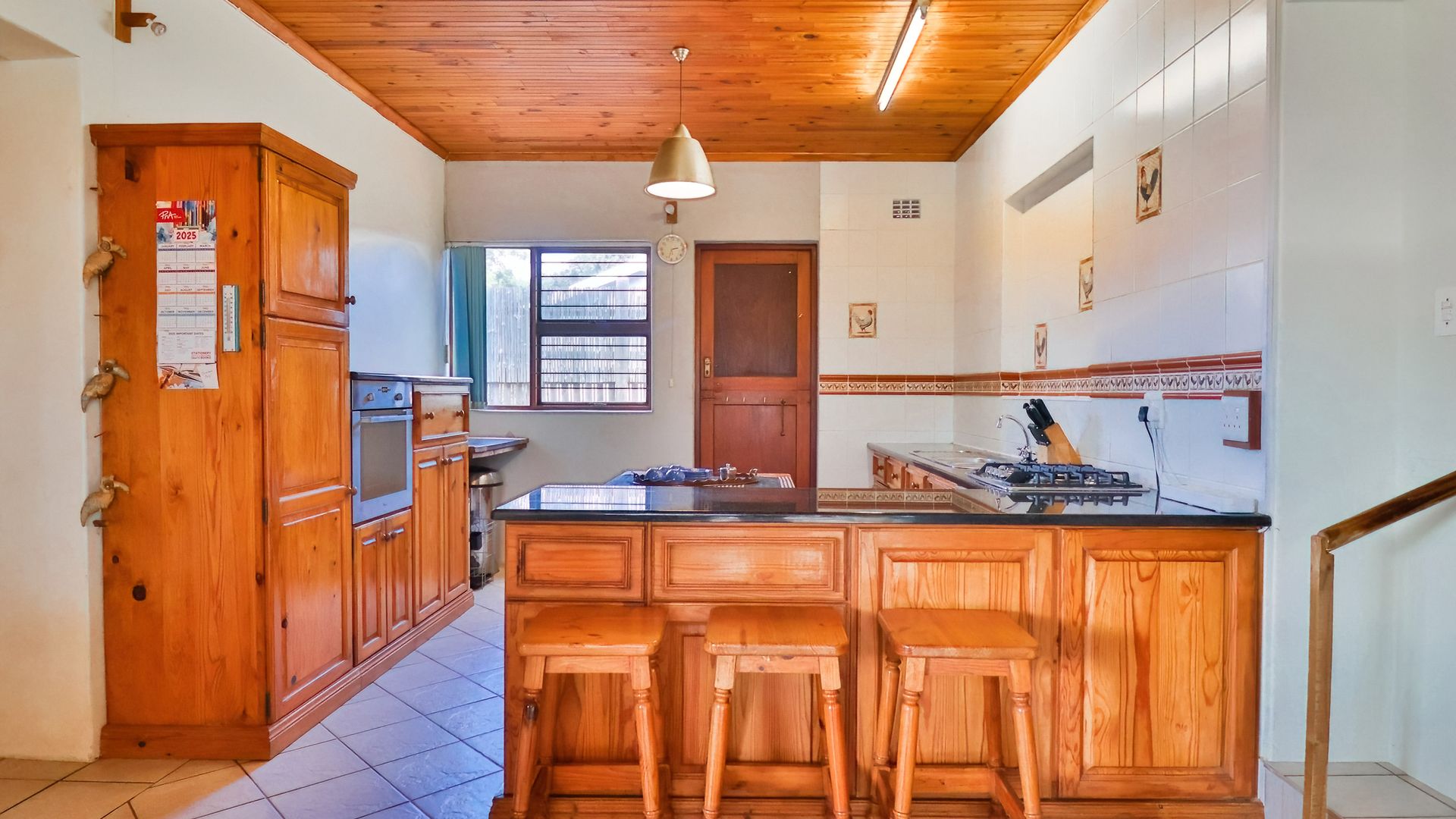 Spacious and welcoming, this 4-bedroom family home blends comfort and functionality perfectly. The inviting living areas, complete with a cozy indoor braai, create a warm and relaxing atmosphere. The expansive wooden kitchen with granite tops and dining area is ideal for entertaining family and friends. The rooms, though on different levels, remain connected, promoting interaction with all your guests. Down the passage, a generous laundry room with ample cupboards keeps things out of the way.