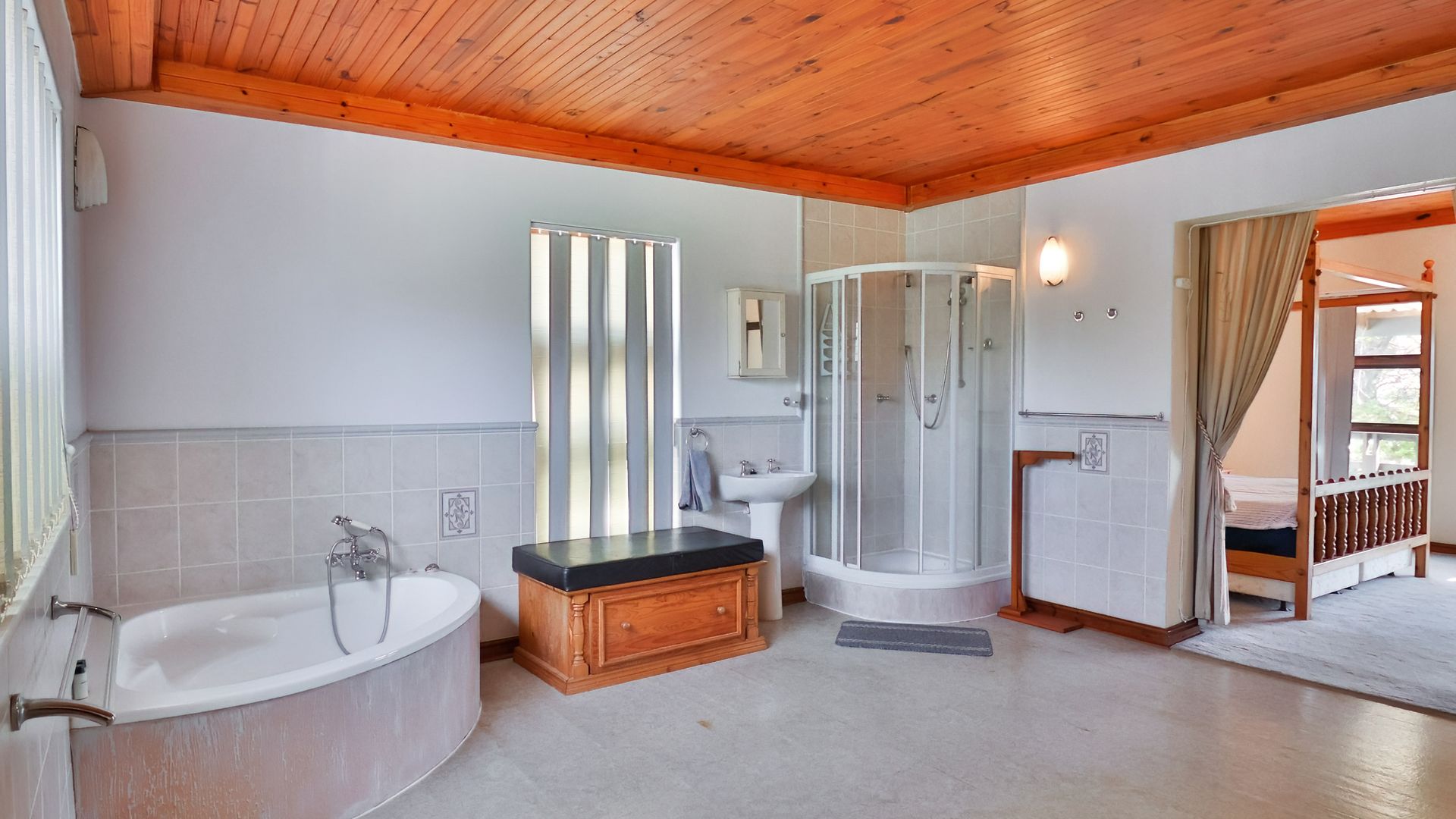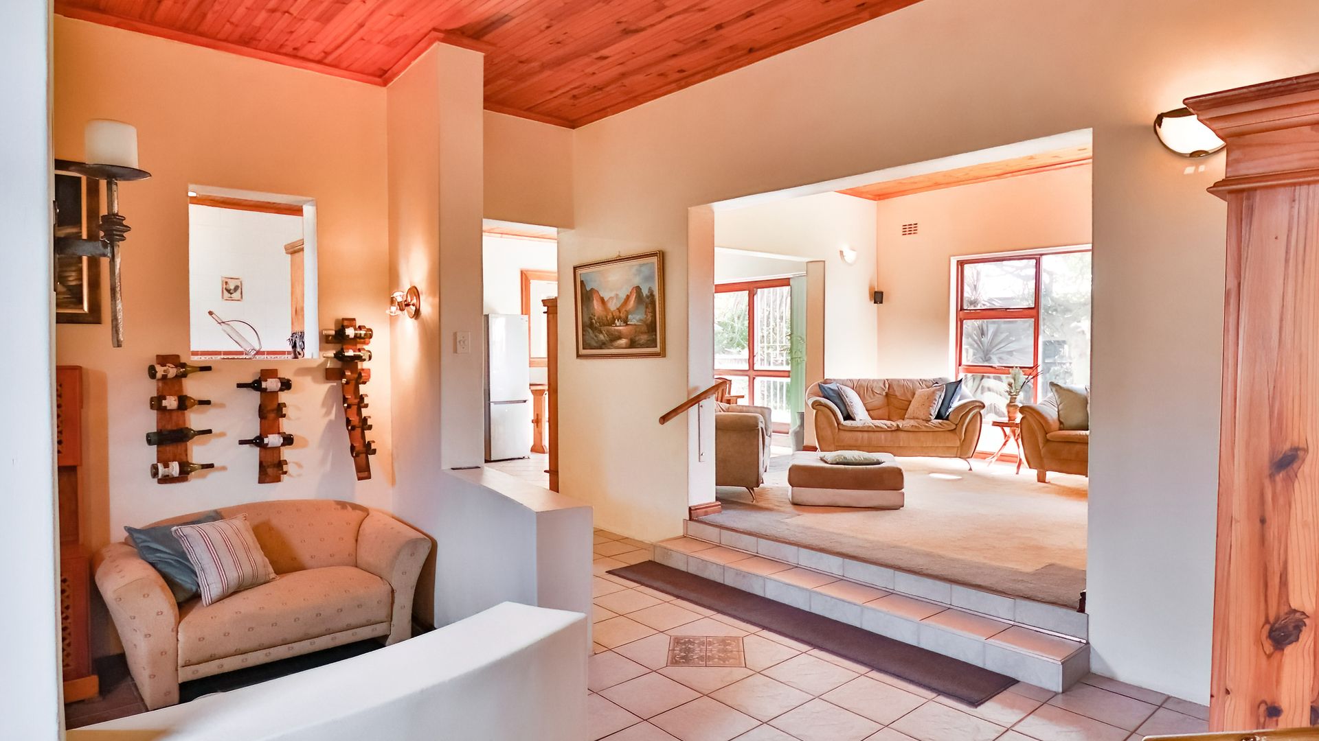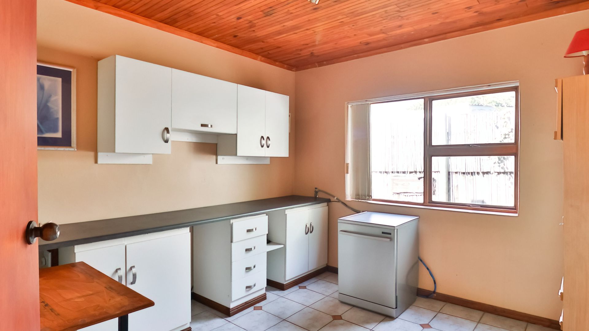 Spacious and welcoming, this 4-bedroom family home blends comfort and functionality perfectly. The inviting living areas, complete with a cozy indoor braai, create a warm and relaxing atmosphere. The expansive wooden kitchen with granite tops and dining area is ideal for entertaining family and friends. The rooms, though on different levels, remain connected, promoting interaction with all your guests. Down the passage, a generous laundry room with ample cupboards keeps things out of the way.