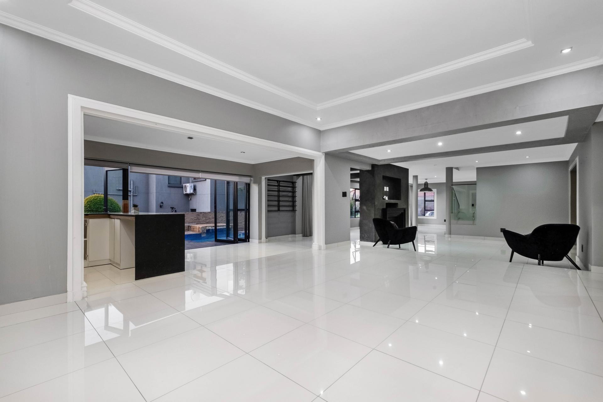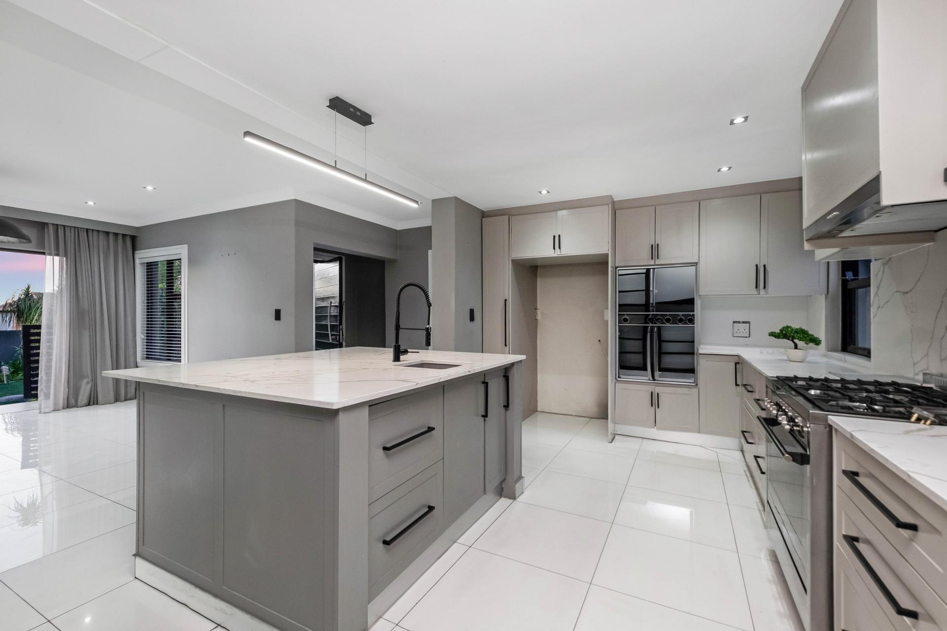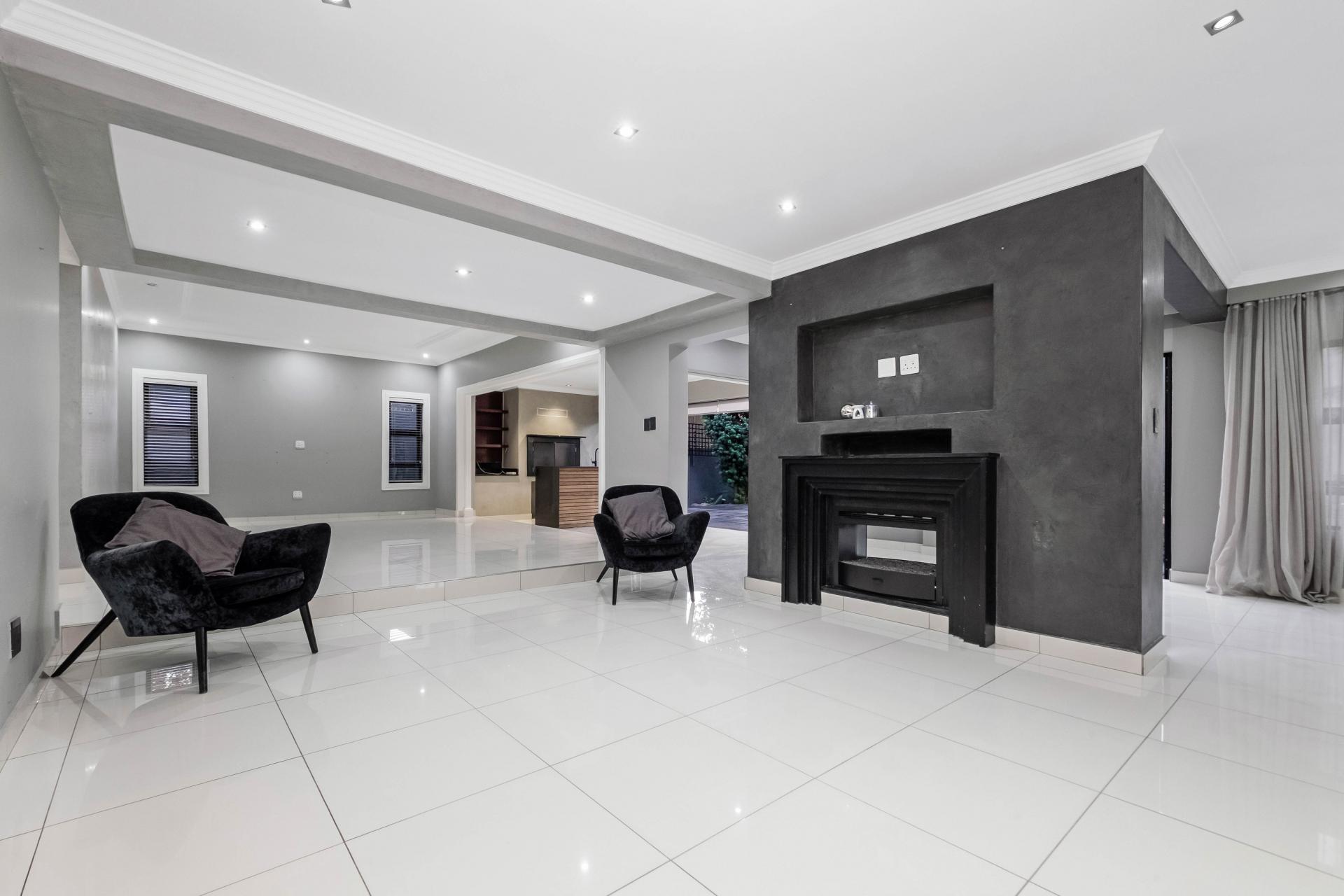 The gourmet kitchen is a true showstopper, featuring a beautiful and functional island, while the well-positioned scullery adds convenience and extra storage. Three expansive living areas flow effortlessly into the outdoor entertainment space, creating a warm and inviting atmosphere. A generously sized dining area easily accommodates a large table, perfect for big families or entertaining guests. Comfort is key with an air conditioning system and a stunning double-sided fireplace that warms the entire living space while adding timeless elegance.