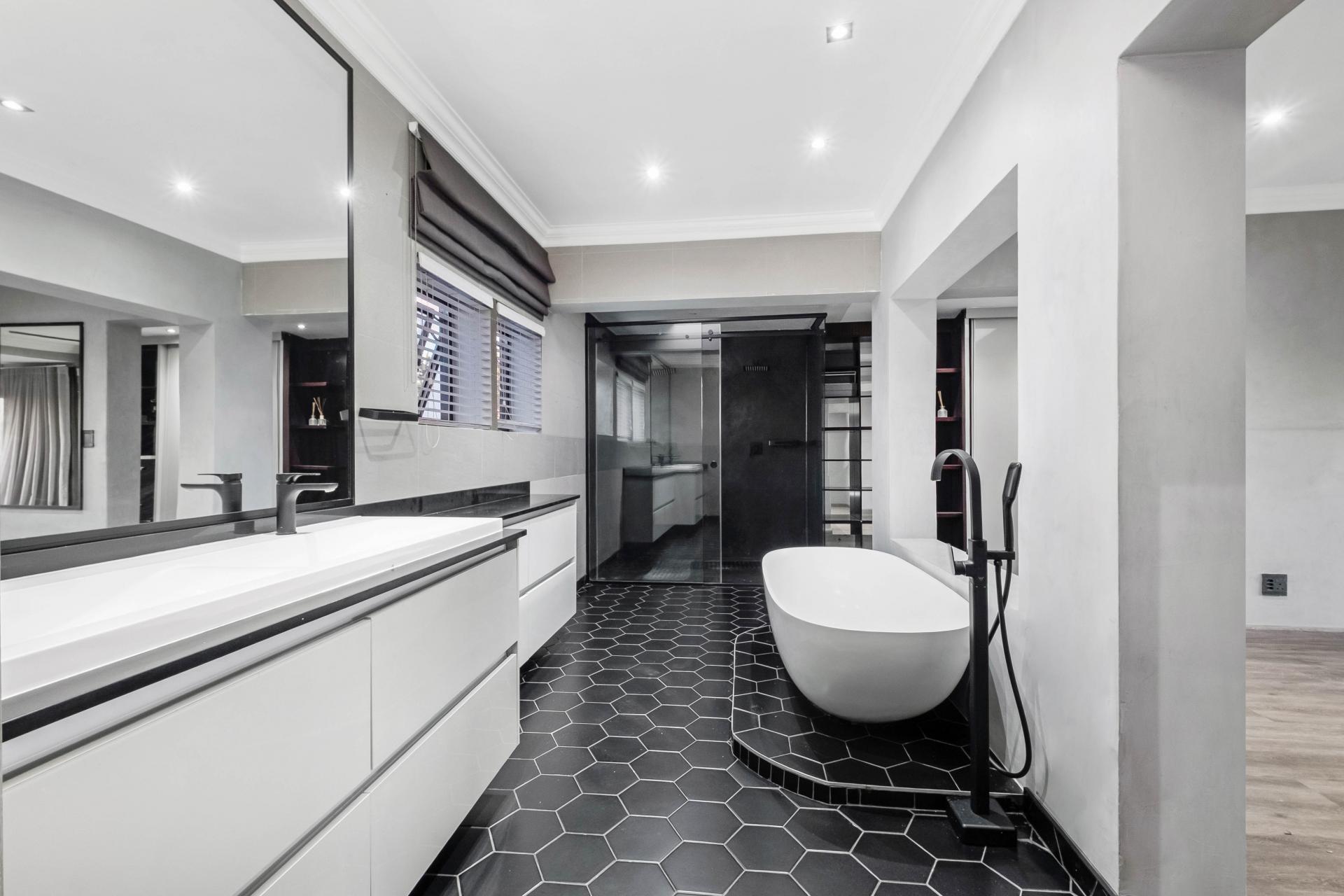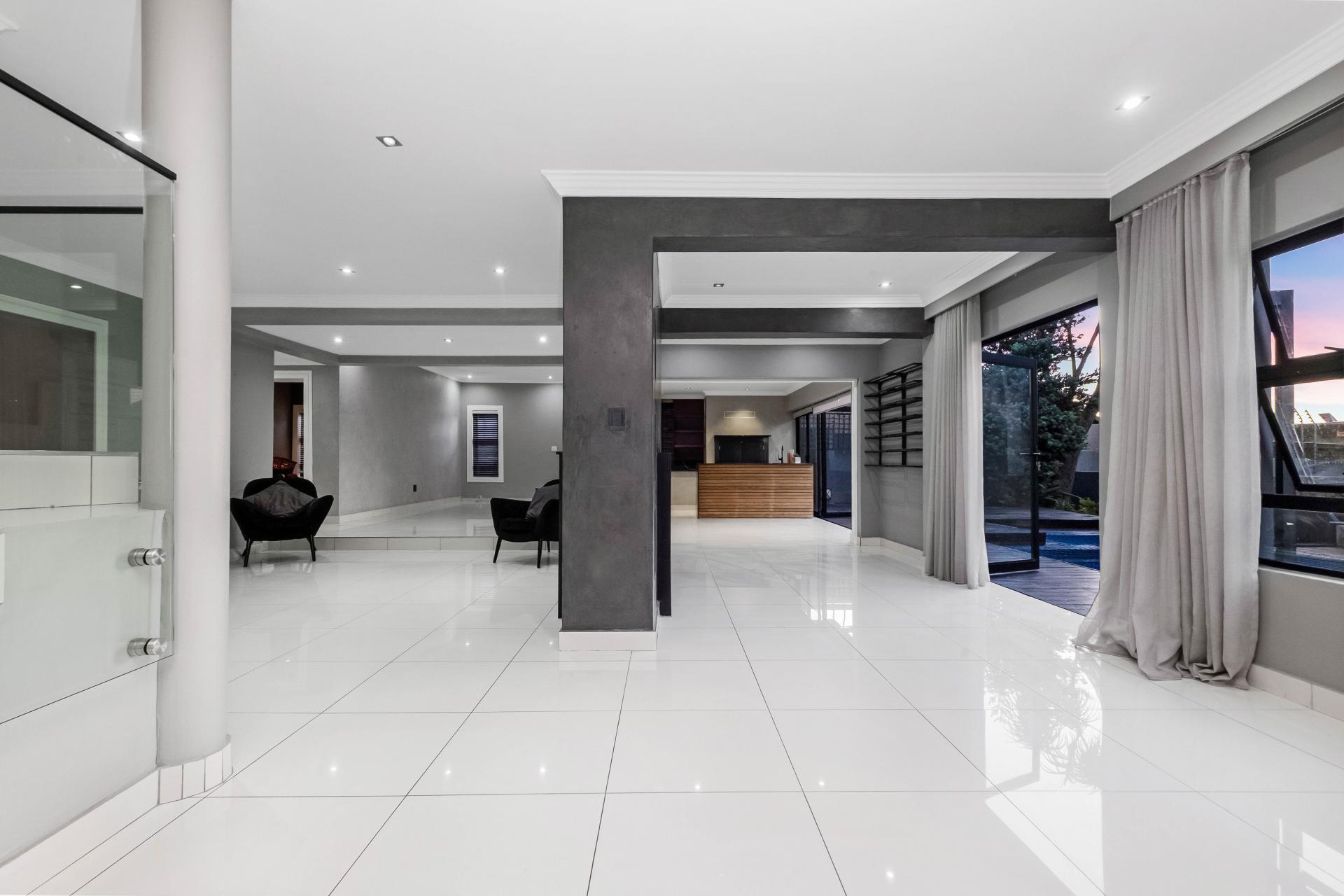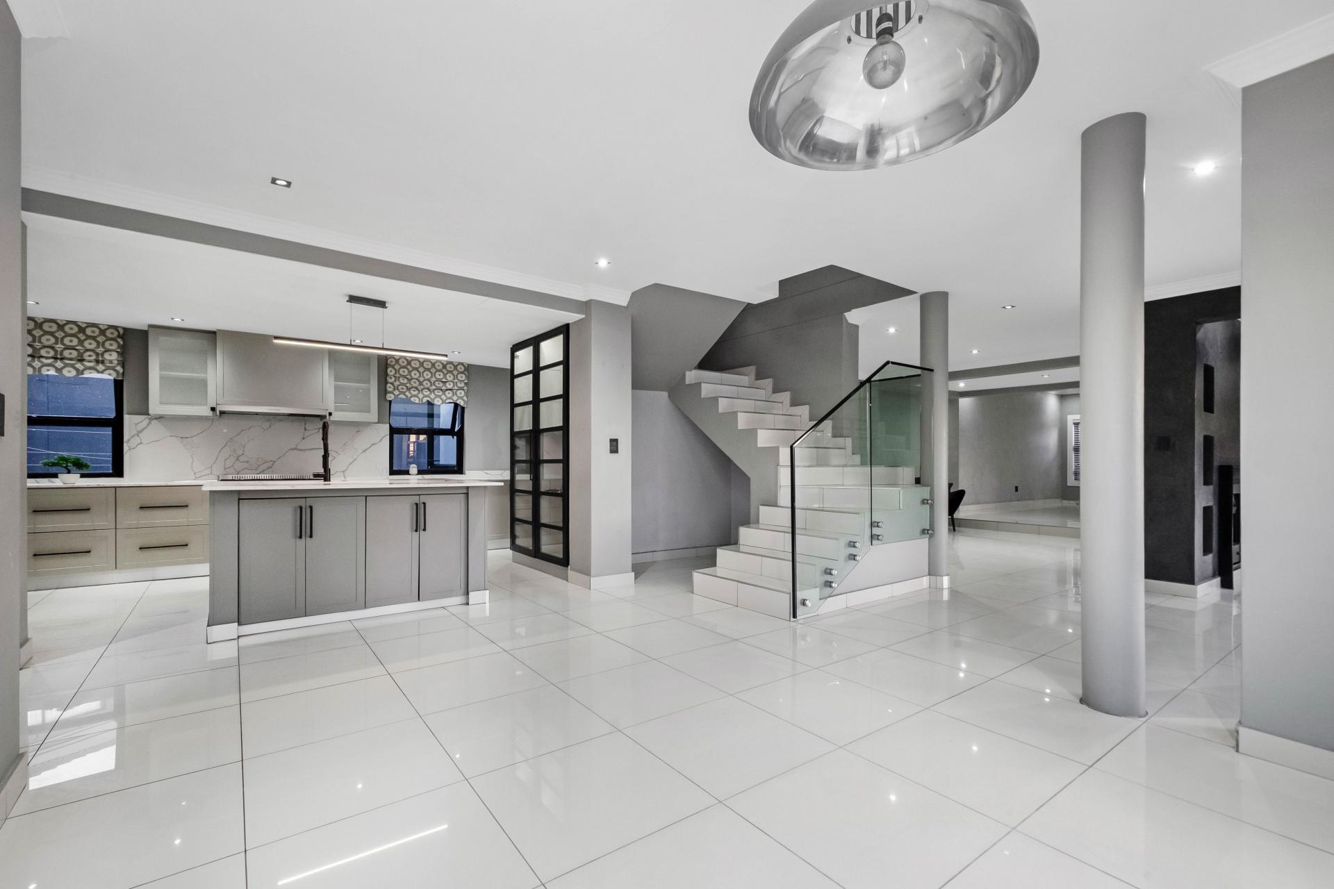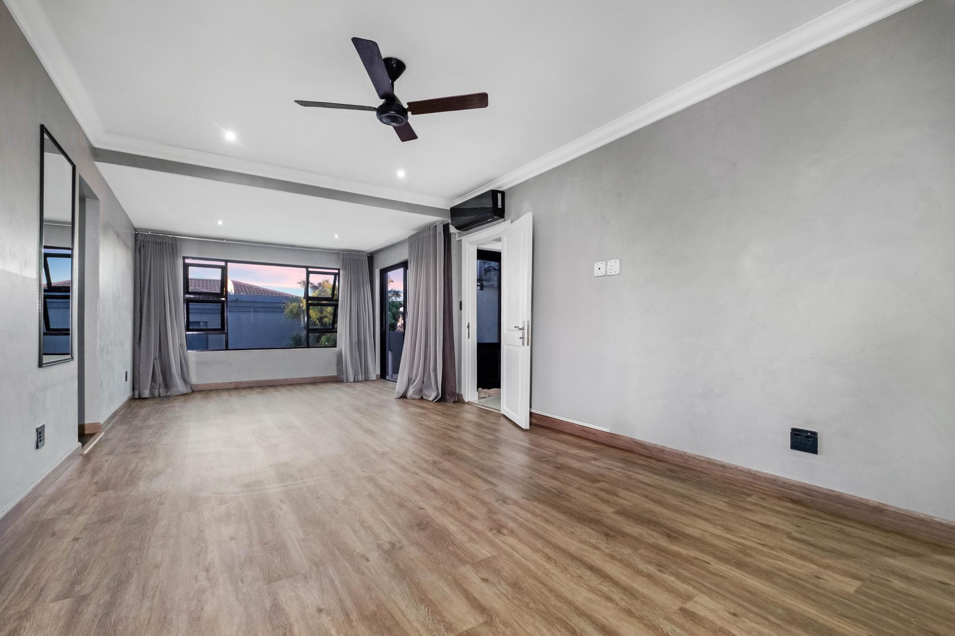 The gourmet kitchen is a true showstopper, featuring a beautiful and functional island, while the well-positioned scullery adds convenience and extra storage. Three expansive living areas flow effortlessly into the outdoor entertainment space, creating a warm and inviting atmosphere. A generously sized dining area easily accommodates a large table, perfect for big families or entertaining guests. Comfort is key with an air conditioning system and a stunning double-sided fireplace that warms the entire living space while adding timeless elegance.