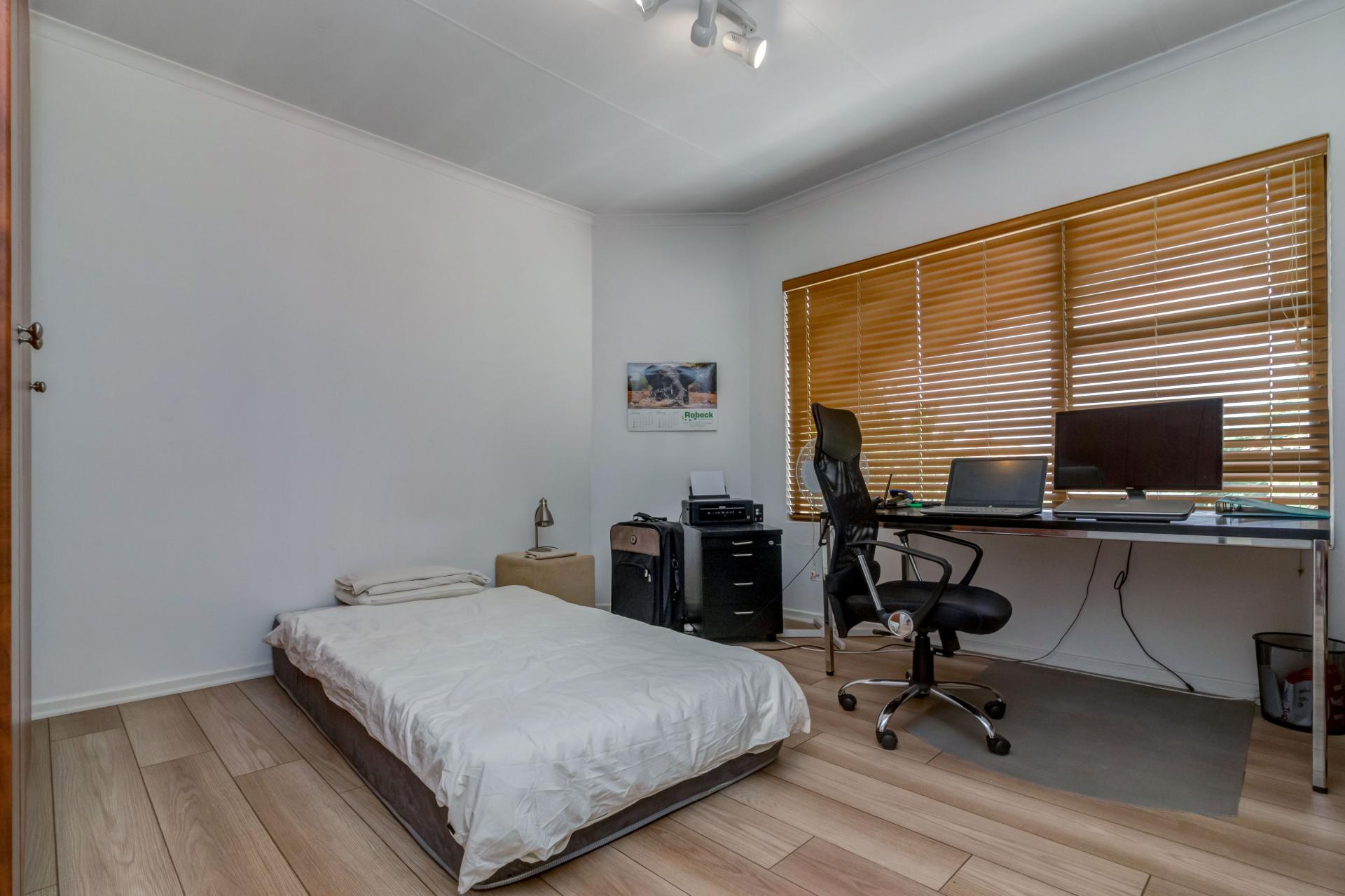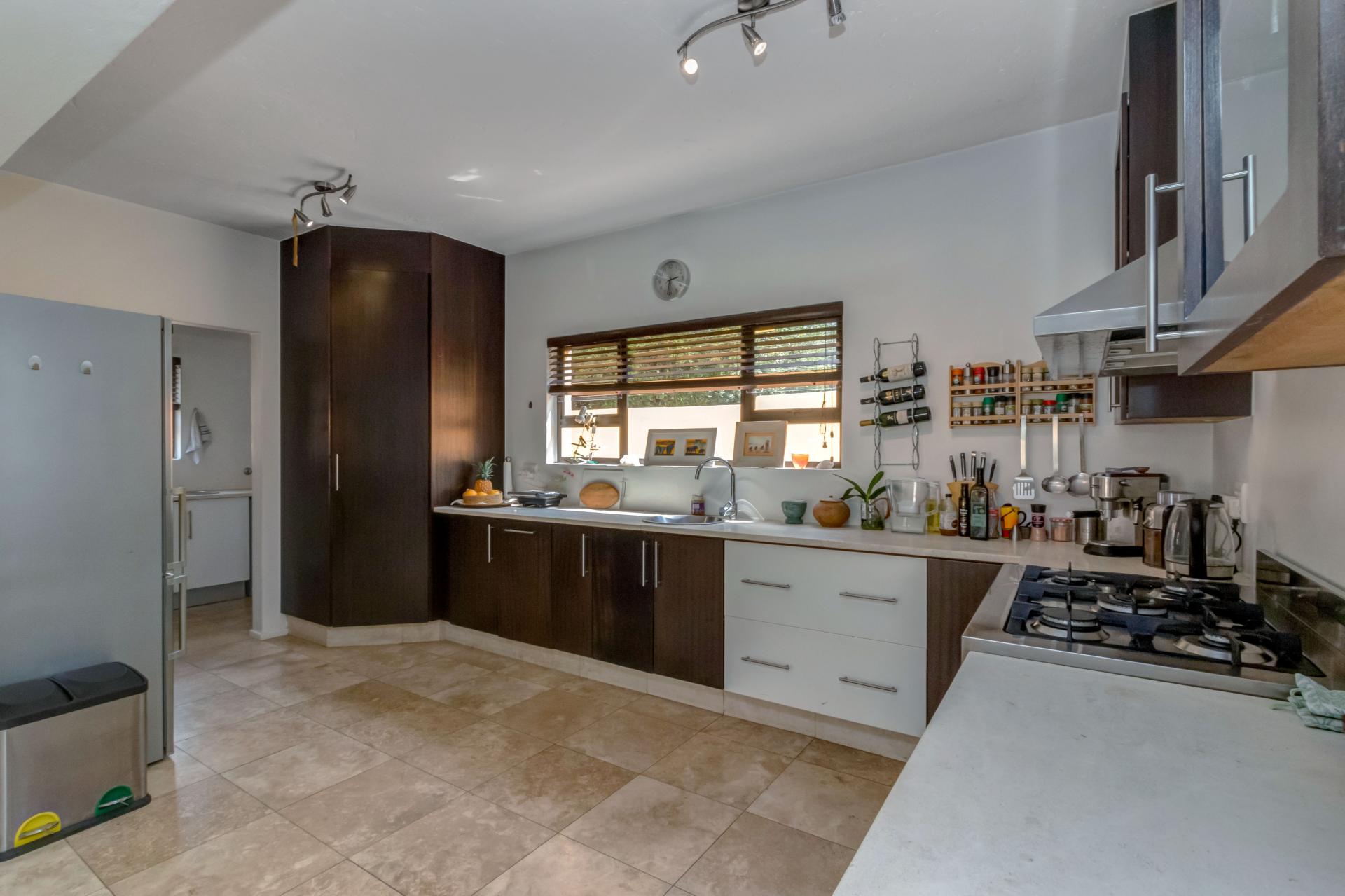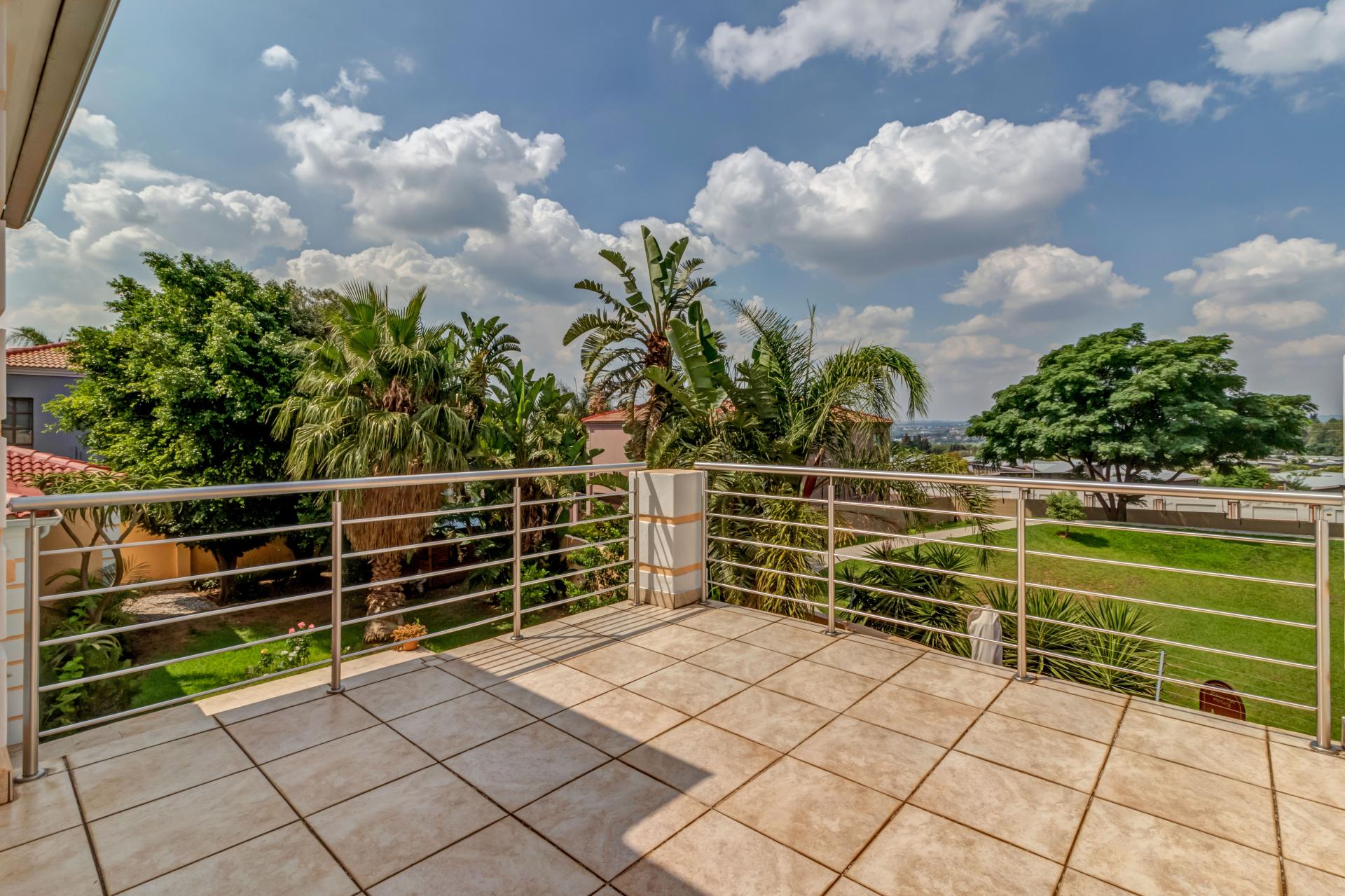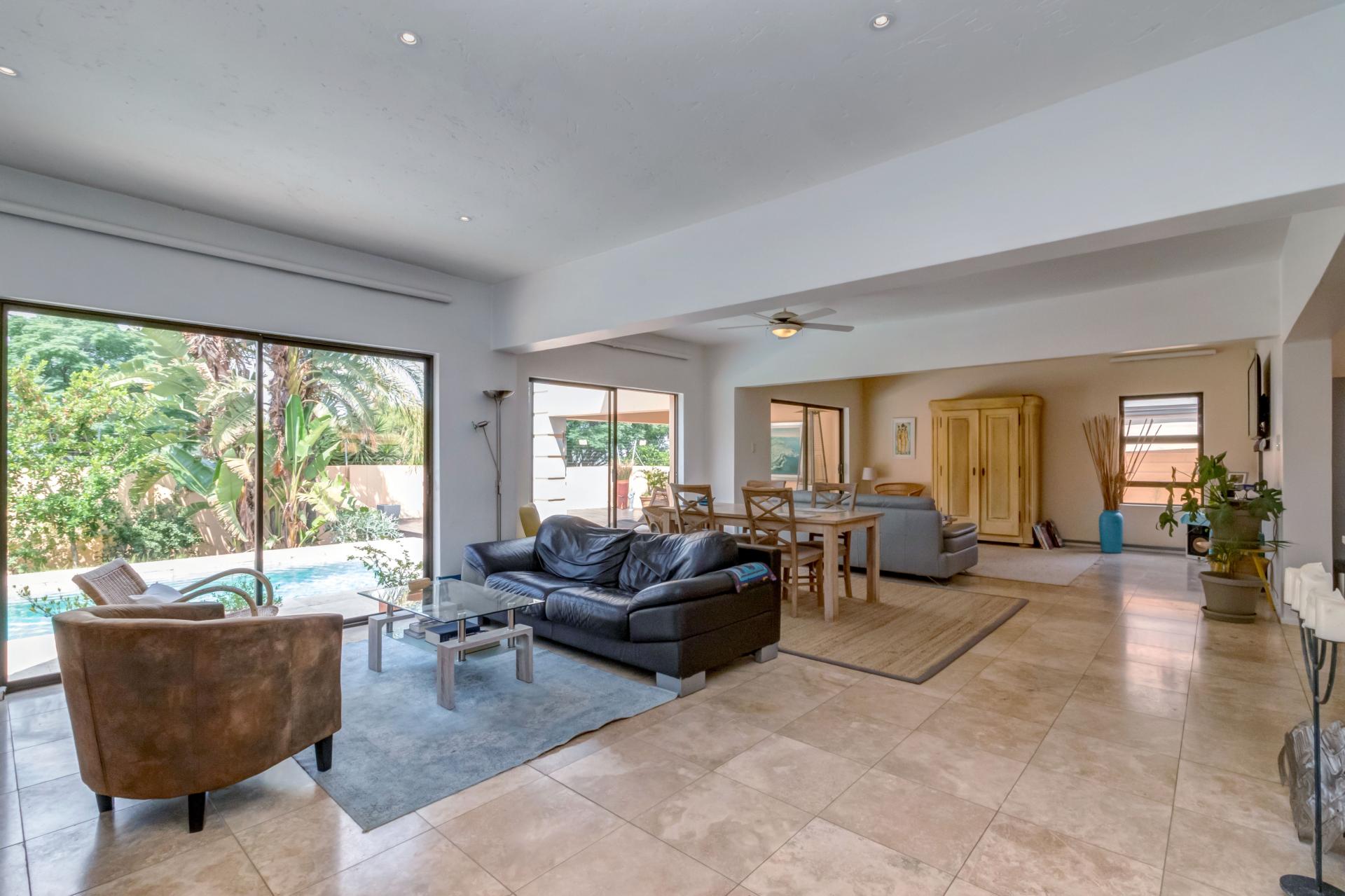 A lovely modern, spacious, and light property with an expansive garden is available, sparking pool and entertainment area is available in a superb estate. The property is situated in popular San Henrique Estate in Broadacres and offers 3 bedrooms, 3 bathrooms and a self-contained flatlet with its own entrance. As one enters from the front door you are greeted with a modern, tiled, open plan lounge and dining room area with a second / formal lounge complete with a wood burning fireplace and aluminium sliding doors all round and an easy flow into the modern granite top kitchen. The kitchen has a gas stove, ample cupboard space, and an additional space ideal for a laundry with undercounter space for 3 appliances. Outside you are welcomed by a sparkling swimming pool, undercover patio and deck area making entertaining and living indoors and outdoors a breeze. Upstairs are 3 spacious bedrooms, all with built in cupboards and the main bedroom boasts a full en-suite with double vanity and a private balcony with a guest bathroom for the other 2 bedrooms to share. This home has many extras including a double automated garage, additional driveway parking, a self-contained flatlet with a private courtyard and a solar / inverter system to cater for the entire home.