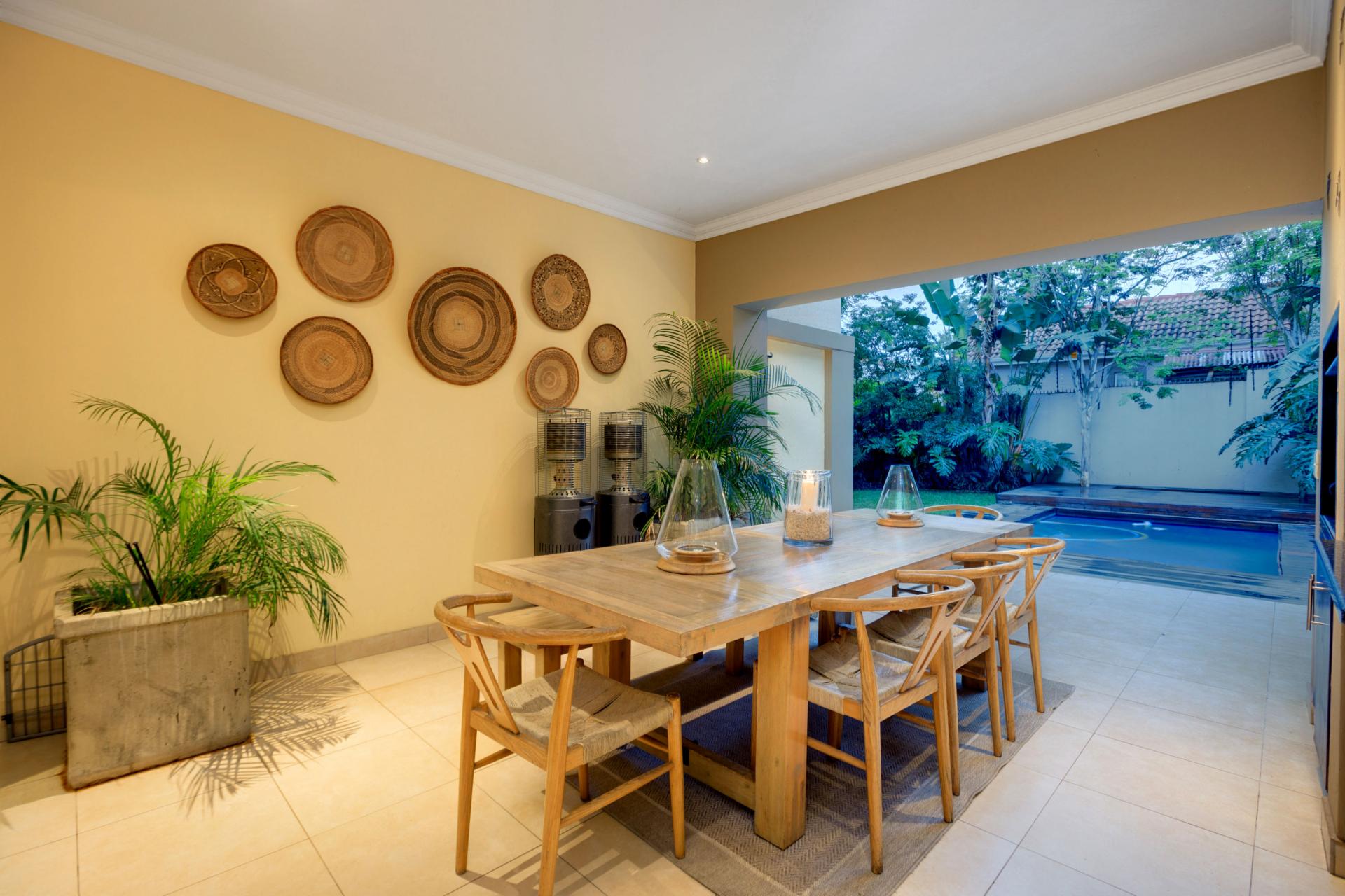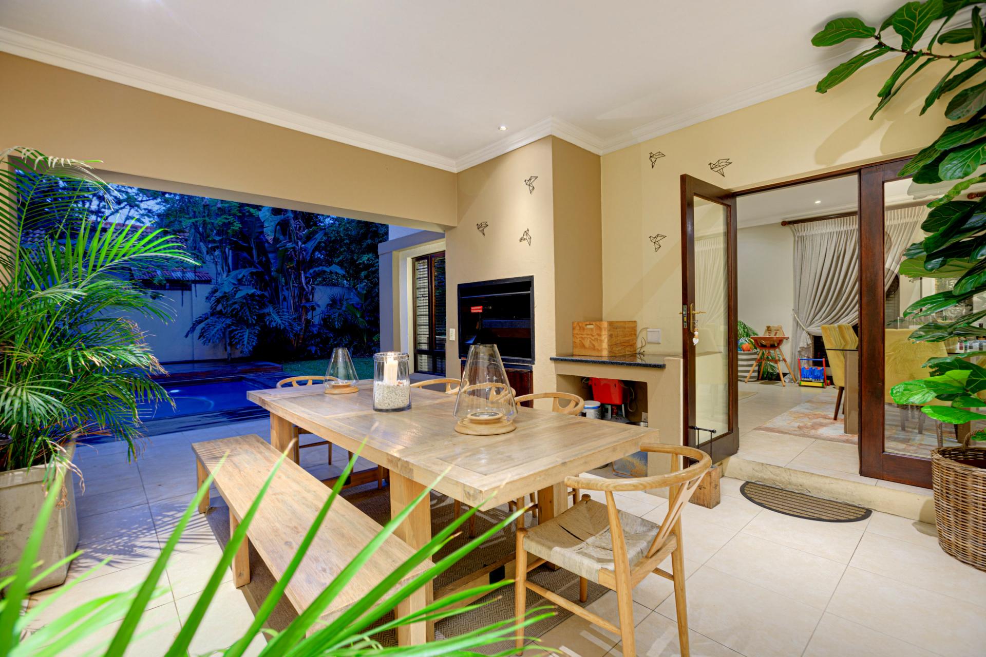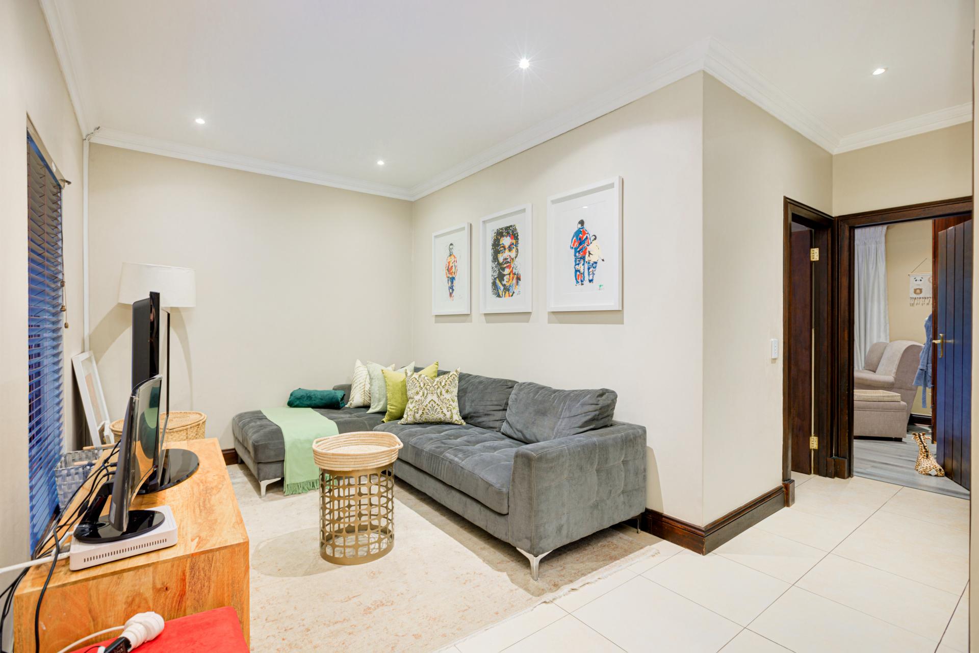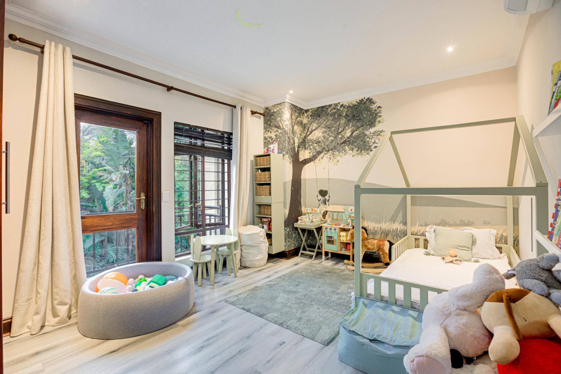 Offering double door/double volume entrance hall, flowing to the large living areas, including lounge/dining areas and open plan kitchen. The lounge is spacious with a wood burning fireplace and opens to the patio, inviting pool and private garden. The kitchen is modern, with ample cupboard space and has a separate scullery with place for all 3 appliances, and opens to the courtyard.