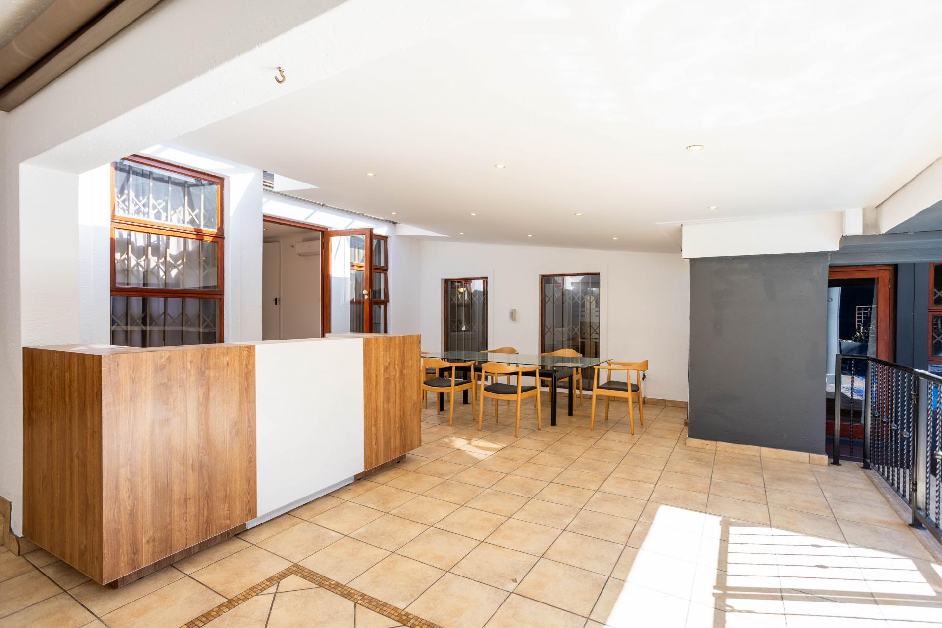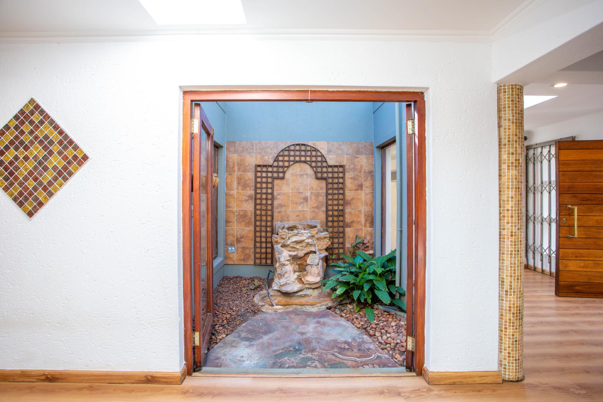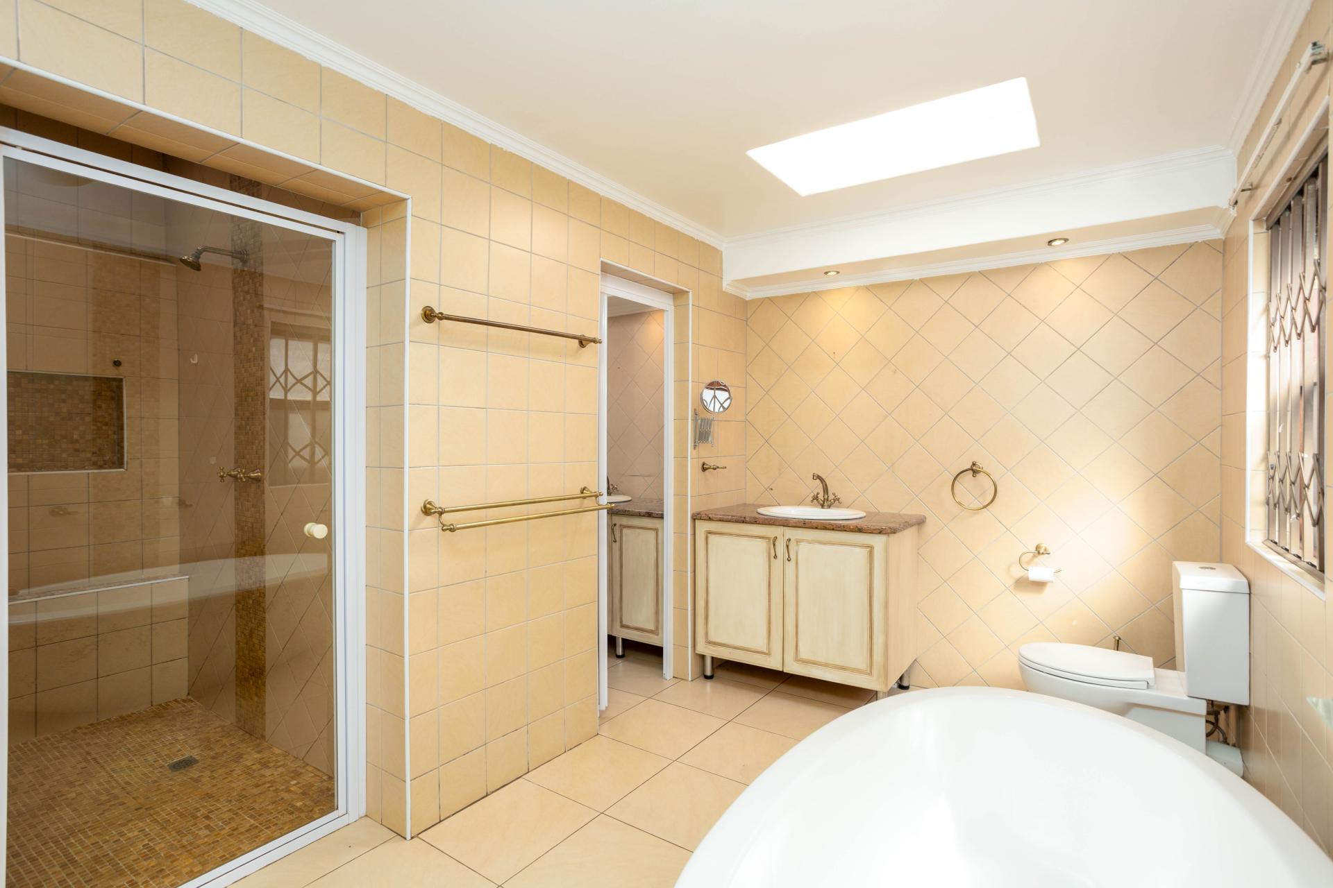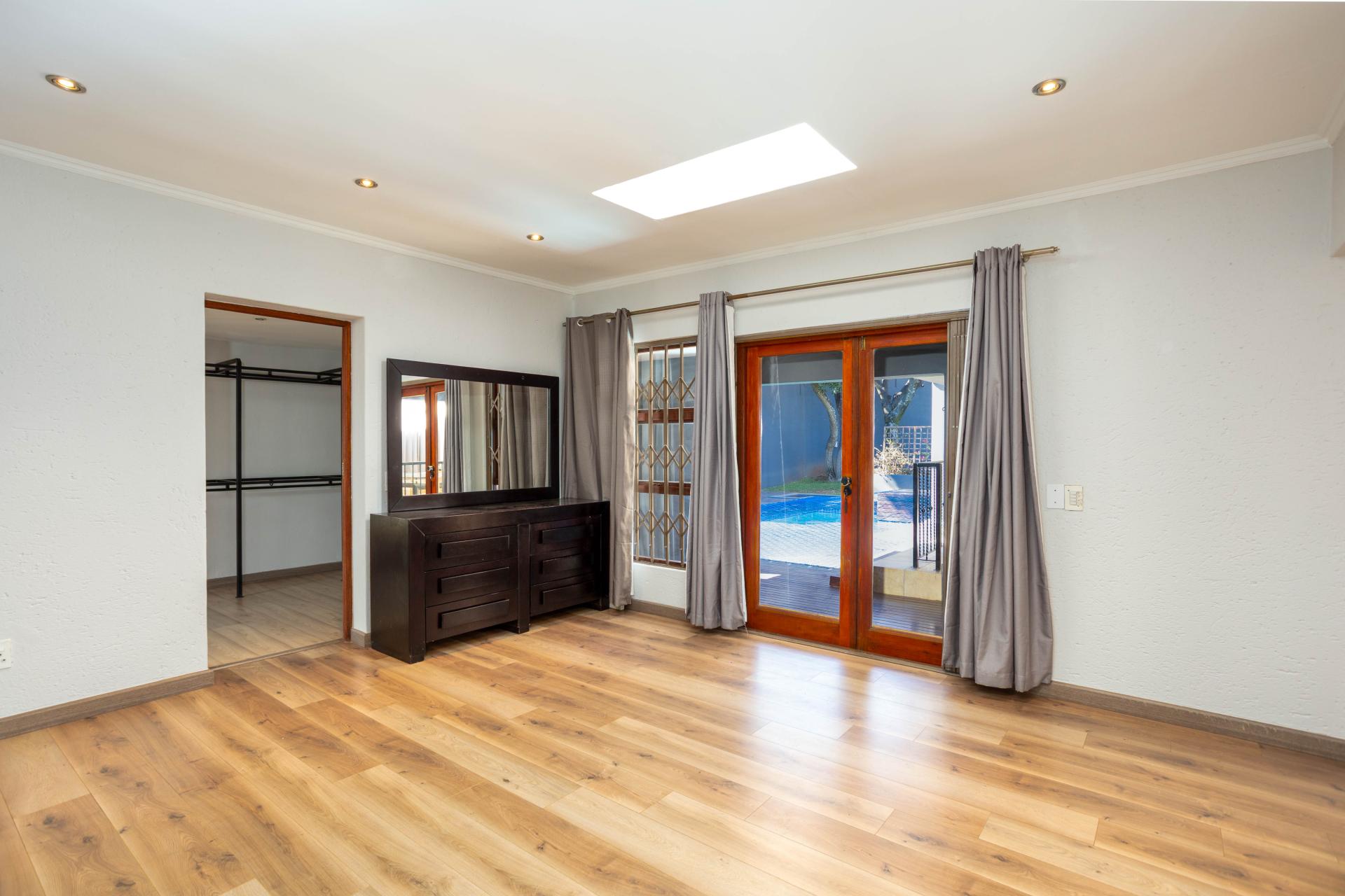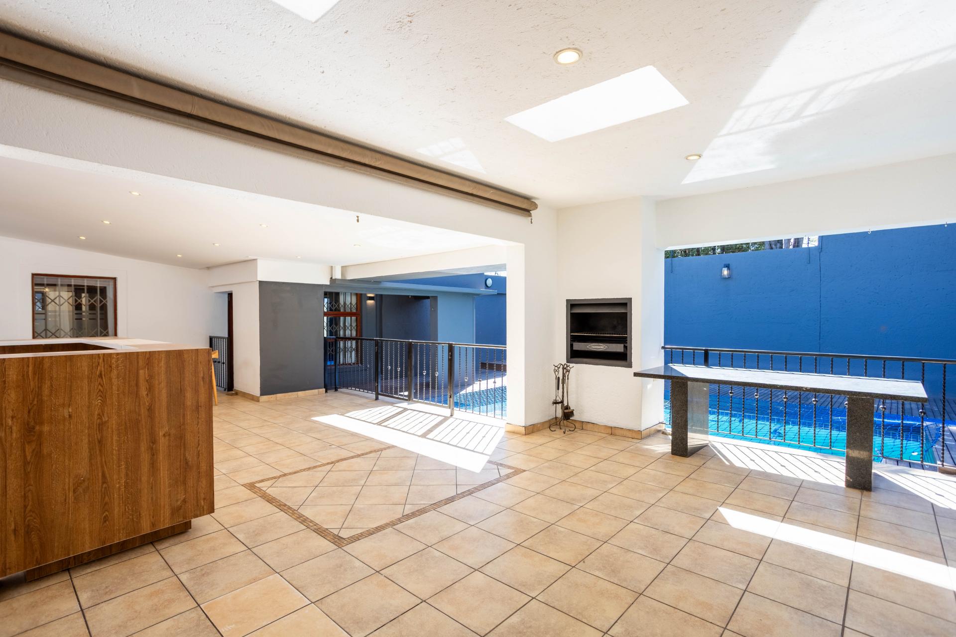 The home has a generator, irrigation system, alarm, Vumatel fibre Wifi and offers excellent security. Located within the very sought-after boomed suburb of Hurlingham Manor. There is a home automation system, air conditioning and security cameras. There is parking for 4 cars in the garage.There is a good staff-room. The extra high perimeter boundary walls has electric fencing and offers exceptional privacy.