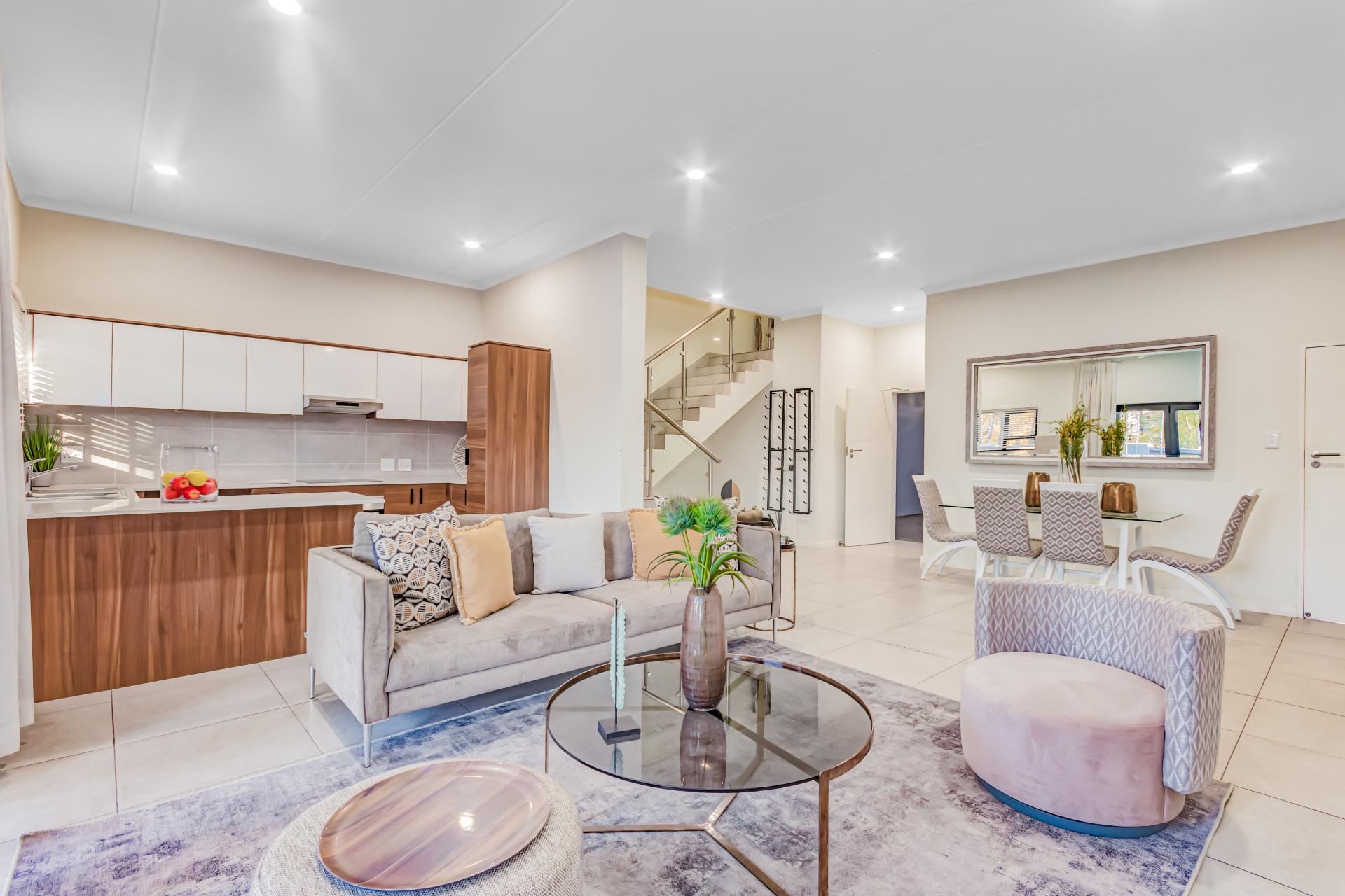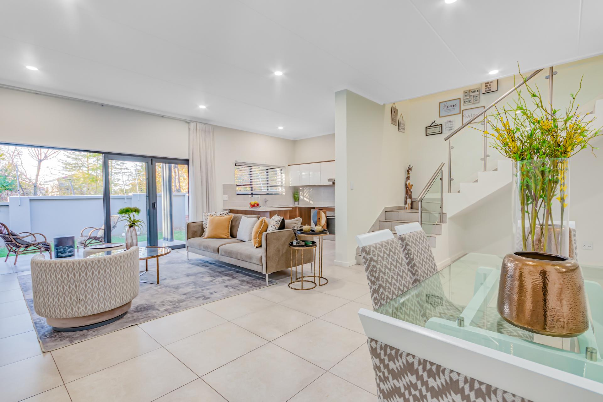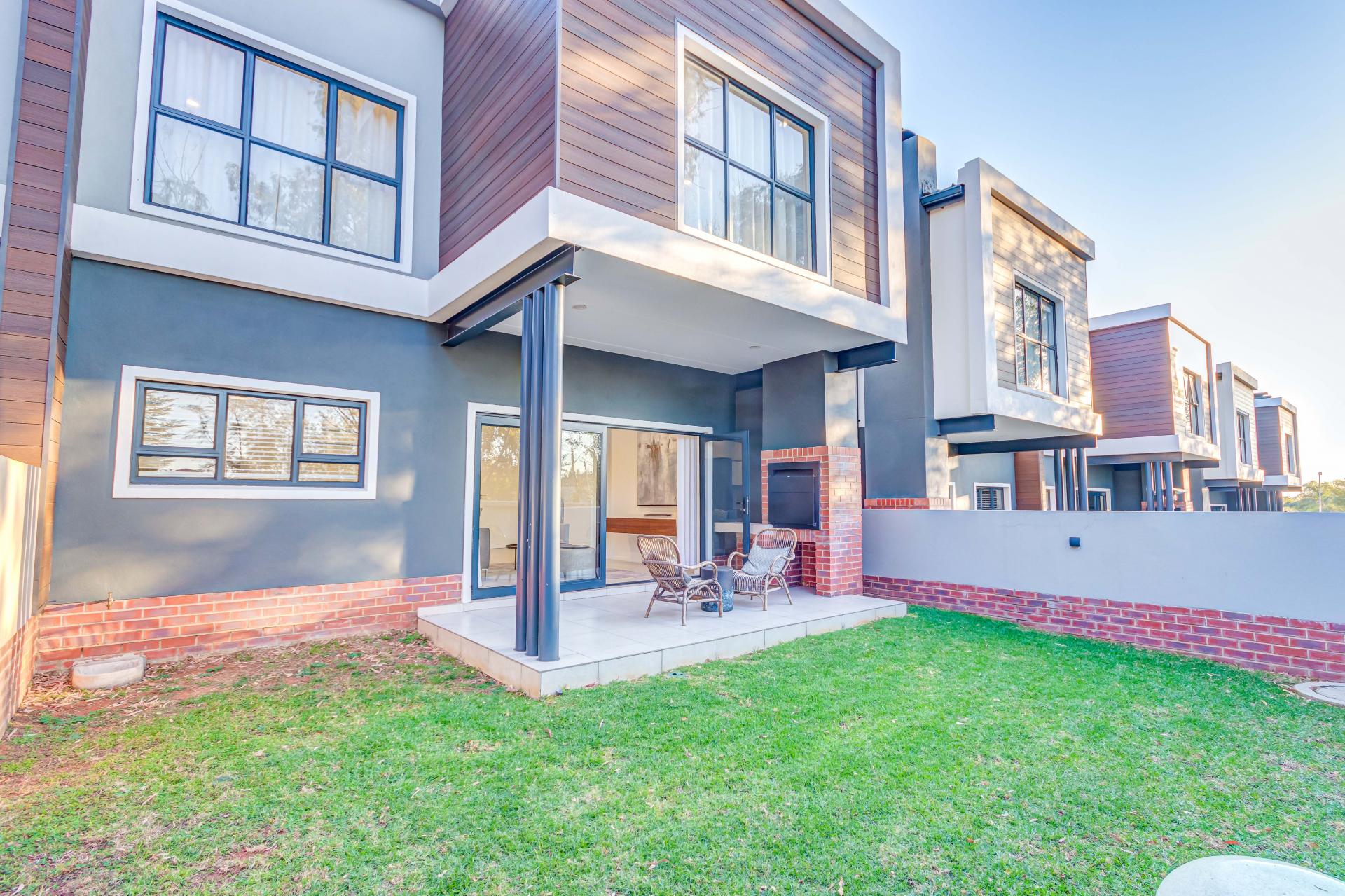 Welcome to Urban Tana, providing you with an all-encompassing product including benefits such as all costs included, backup power, solar geyser and a prepaid meter, and a lovely, modern and spacious property with a manicured private garden. The property is situated in newly developed Urban Tana Estate in the heart of Sunninghill and offers 4 bedrooms, 3 bathrooms (2 en-suite). As one enters from the front door you are greeted with a modern, tiled, open plan lounge and dining room area with an easy flow into the modern granite top kitchen. The kitchen has a built in stove and ample cupboard space. There is a guest cloakroom and direct access to the double garage with additional water points for extra appliances. The lounge area opens to an undercover patio and garden area. Upstairs are 4 spacious bedrooms, all with built in cupboards and a modern design, with the main bedroom and 1 of the additional bedrooms both having en-suite bathrooms. The additional 2 bedrooms share a guest bathroom. This design also includes a storeroom and staff accommodation.