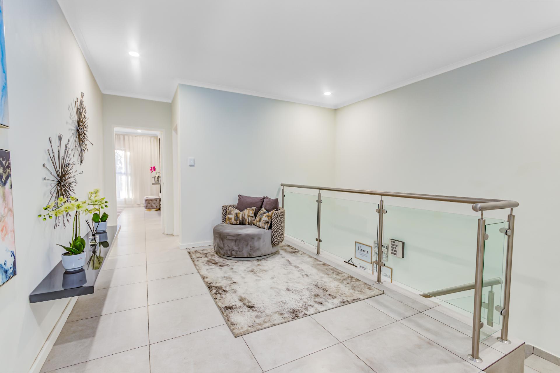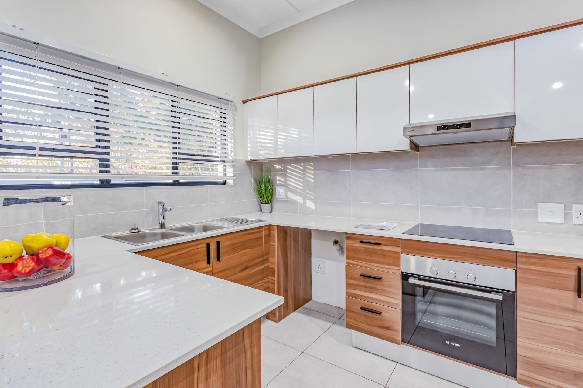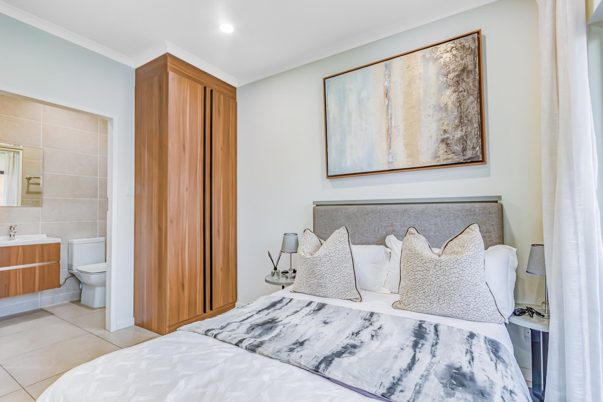 Welcome to Urban Tana, providing you with an all-encompassing product including benefits such as all costs included, backup power, solar geyser and a prepaid meter, and a lovely, modern and spacious property with a manicured private garden. The property is situated in newly developed Urban Tana Estate in the heart of Sunninghill and offers 4 bedrooms, 3 bathrooms (2 en-suite). As one enters from the front door you are greeted with a modern, tiled, open plan lounge and dining room area with an easy flow into the modern granite top kitchen. The kitchen has a built in stove and ample cupboard space. There is a guest cloakroom and direct access to the double garage with additional water points for extra appliances. The lounge area opens to an undercover patio and garden area. Upstairs are 4 spacious bedrooms, all with built in cupboards and a modern design, with the main bedroom and 1 of the additional bedrooms both having en-suite bathrooms. The additional 2 bedrooms share a guest bathroom. This design also includes a storeroom and staff accommodation.