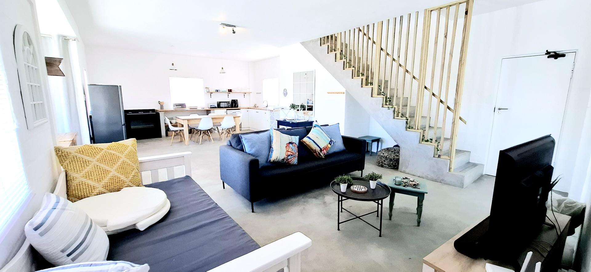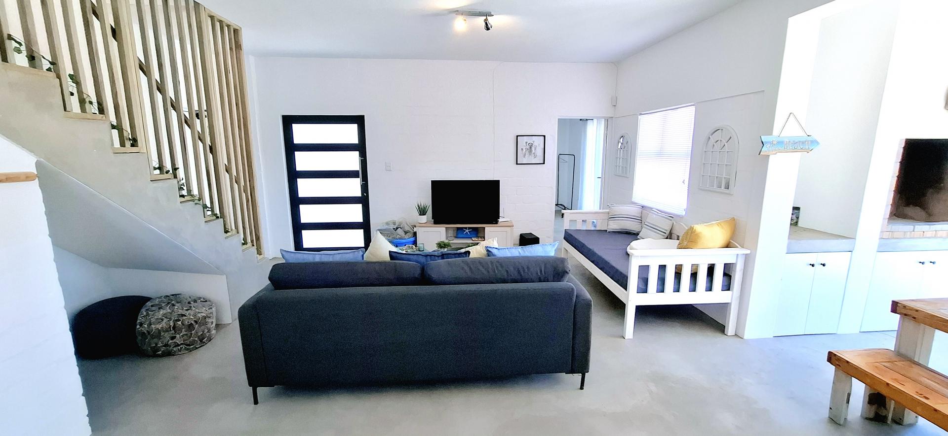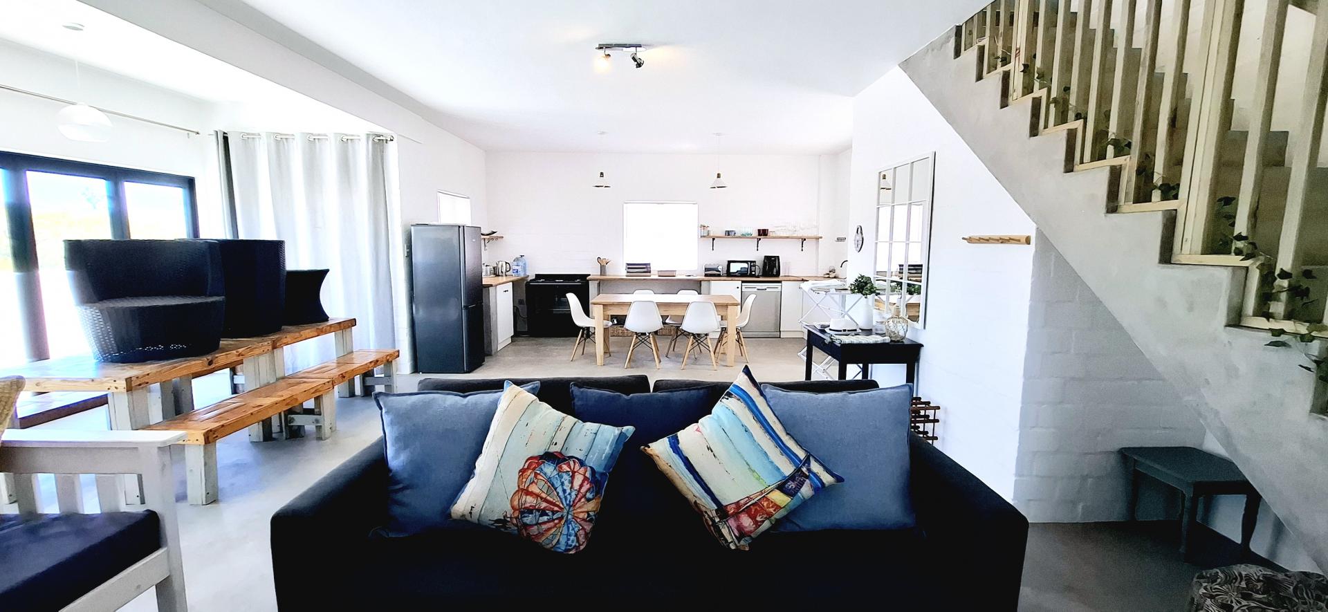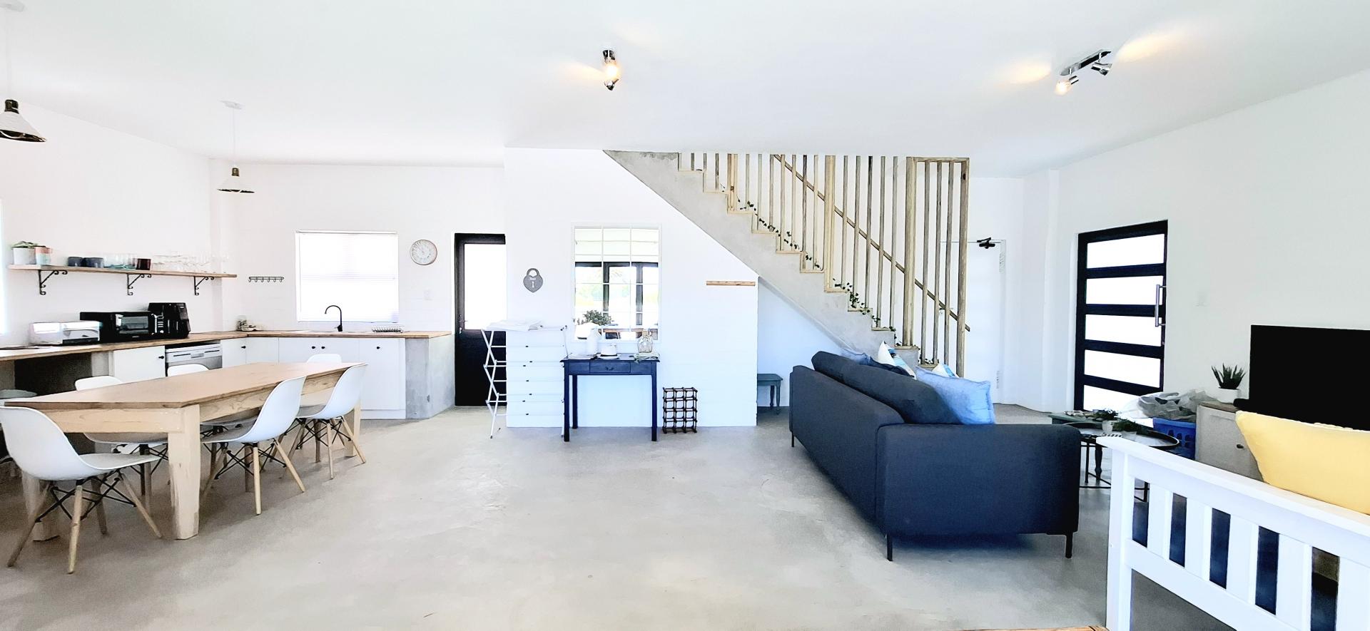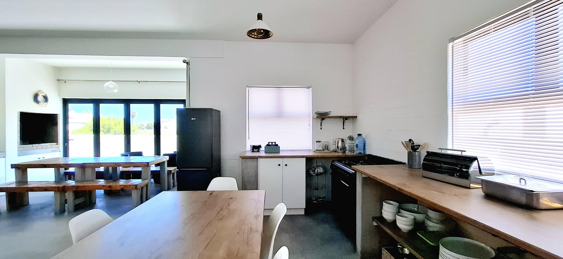 Enter through the elegant glass front door into an expansive living area featuring exposed wooden beams, creating a warm and inviting atmosphere. Adjacent to the living space is a cozy indoor braai area with a large glass window, perfect for entertaining all year round.