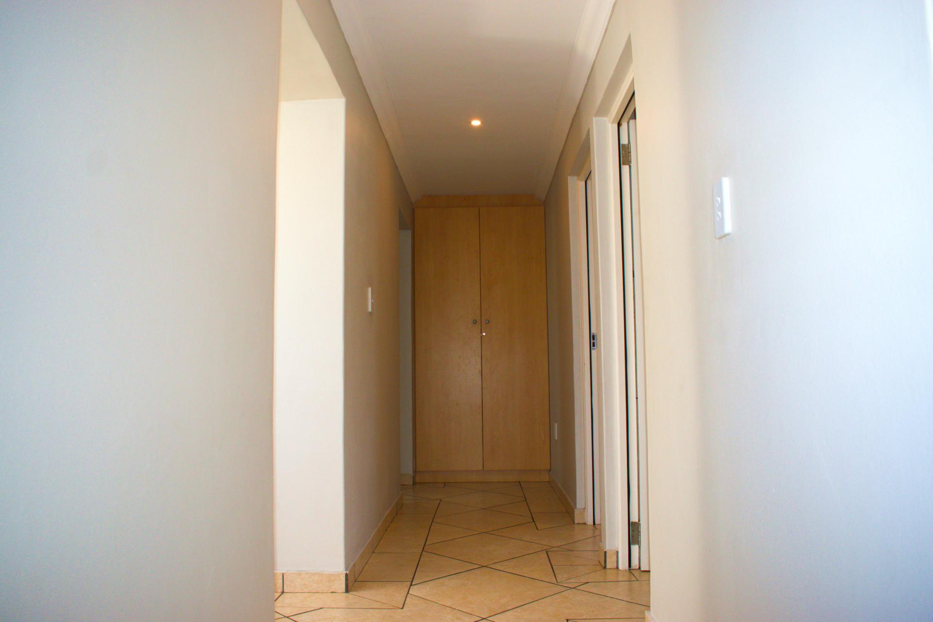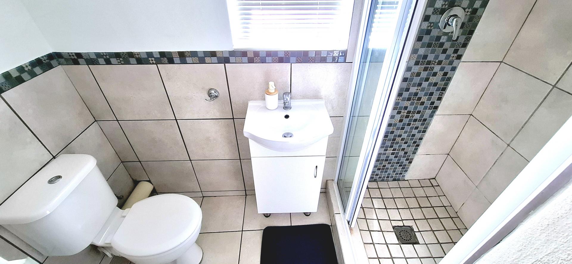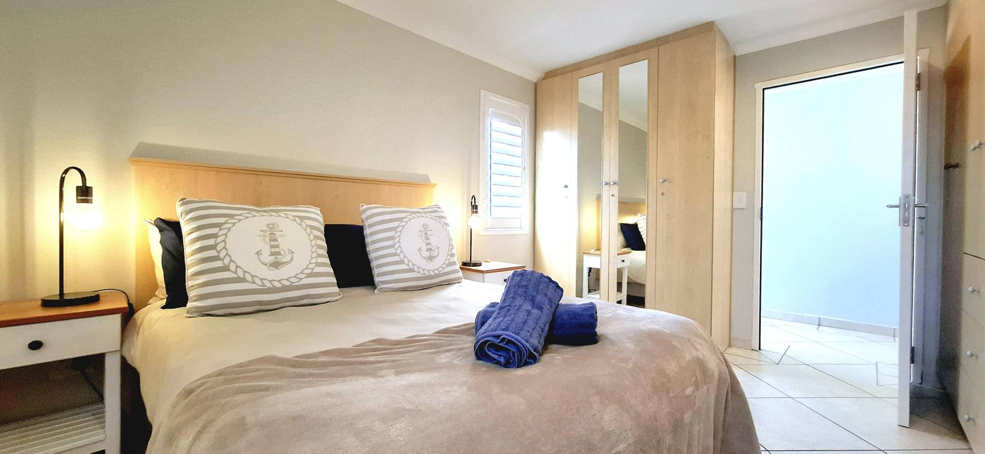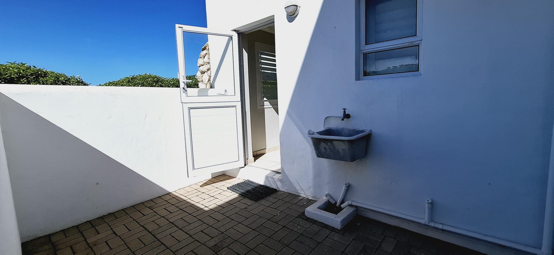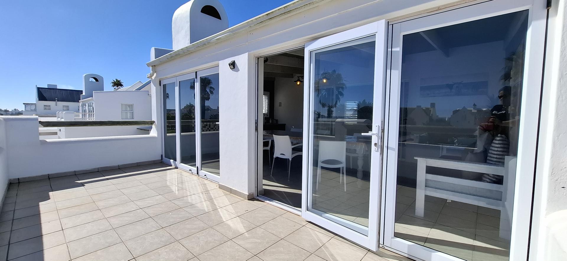 Upstairs, a staircase leads to a bright and airy living area complete with a convenient kitchenette. Large sliding doors open to an enclosed braai room and balcony, where you can enjoy stunning views over Golden Mile and partial sea views. The main bedroom includes built-in cupboards and en-suite, and there is also a guest toilet on this level for added convenience.
