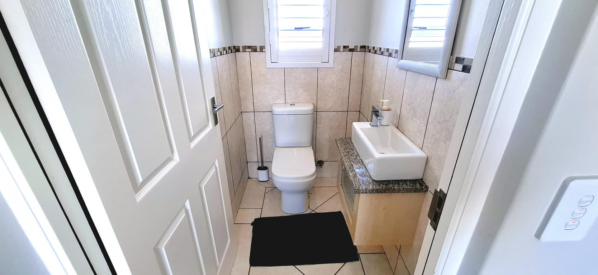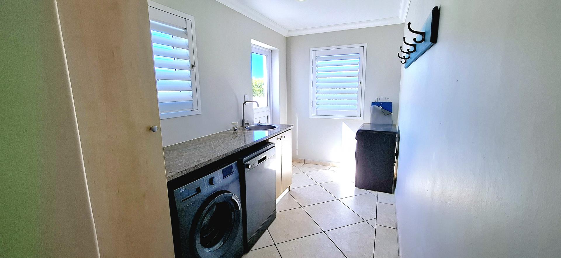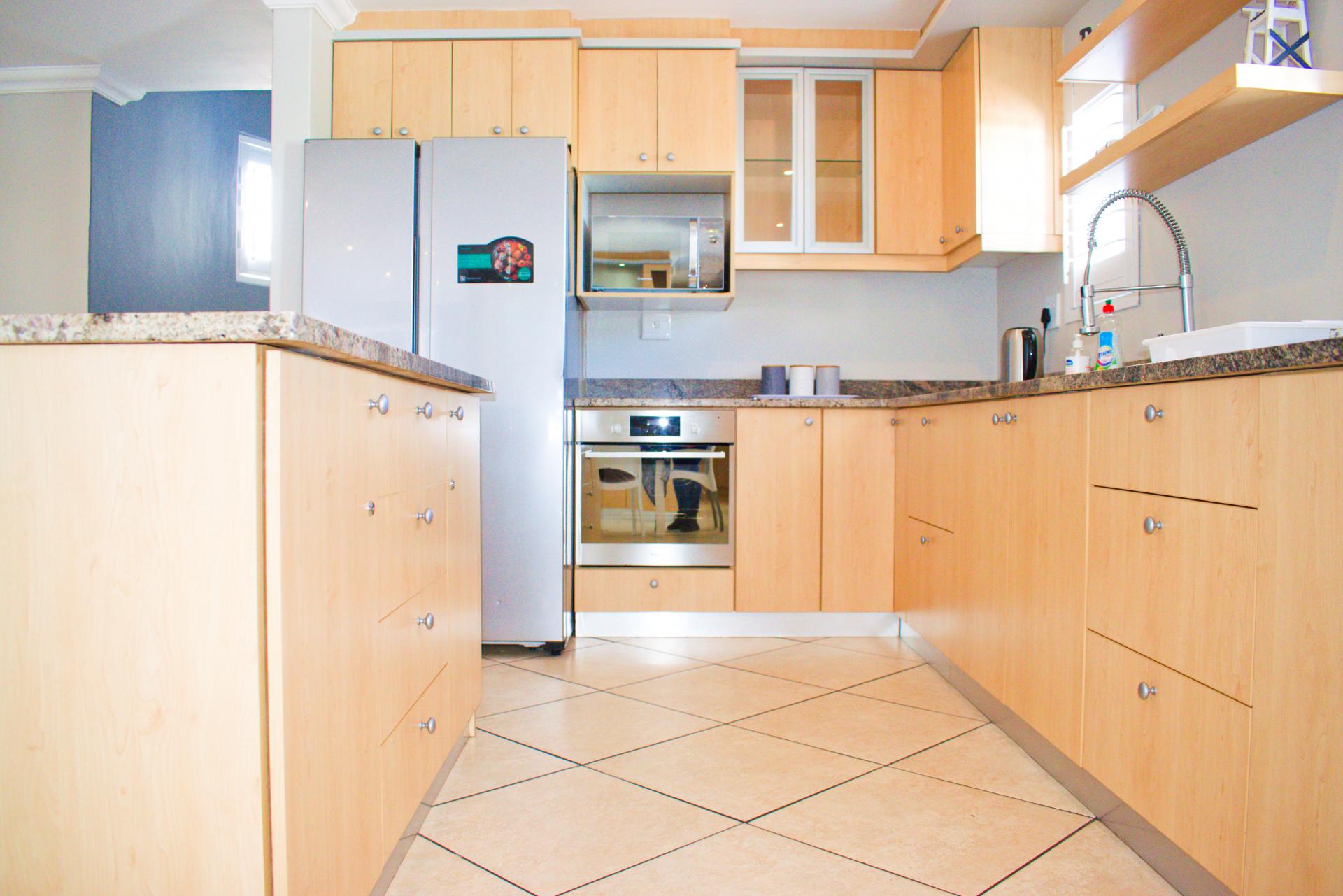 This spacious home welcomes you through a large glass front door leading into the ground floor. The modern kitchen offers ample cupboard space, granite countertops, and a separate scullery with a dedicated laundry area. The ground floor also features two guest bedrooms with built-in cupboards and a full family bathroom.