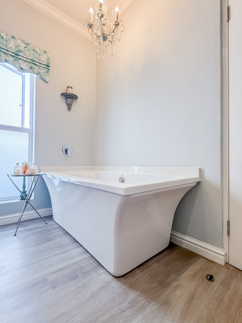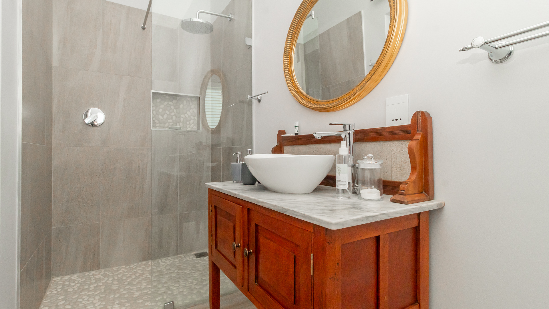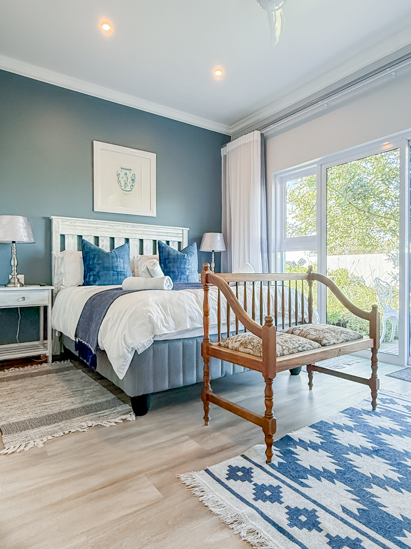 Set in a beautifully maintained garden with a full irrigation system, the property boasts four generous en-suite bedrooms, each designed for privacy and relaxation. One of the bedrooms has an outside door that leads to a little private sitting space as well as the fire-pit. The main bedroom features a luxurious bathroom complete with a bathtub — perfect for unwinding after a long day.