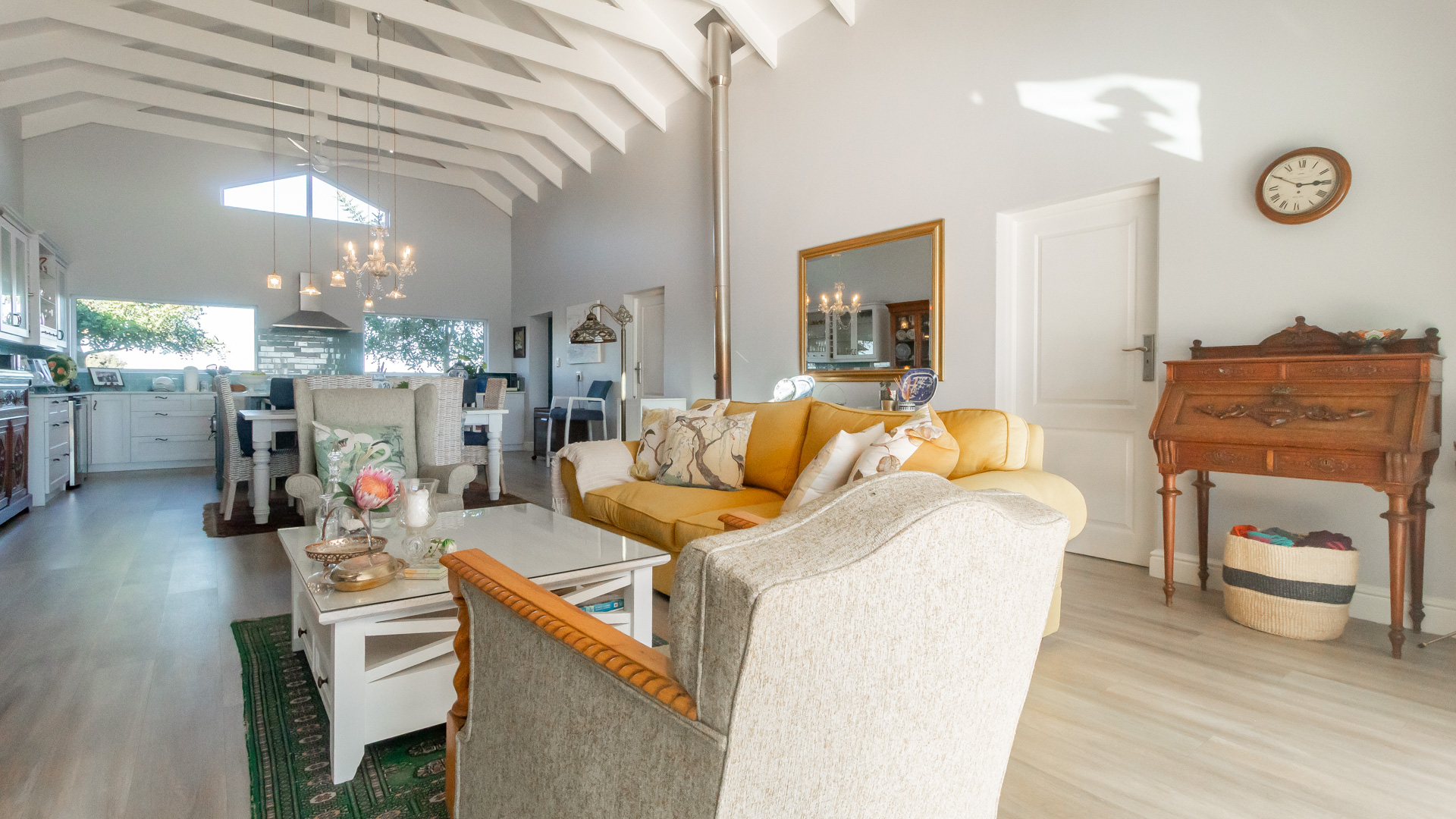 The heart of the home is its warm and inviting open-plan living, dining, and kitchen area. From the moment you walk in, you'll feel it: "Honey, I'm home!" The kitchen flows effortlessly into a scullery and walk-in pantry, with direct access to the outdoors — where a cozy fire pit awaits in the lush garden, creating an ideal space for entertaining under the stars.
