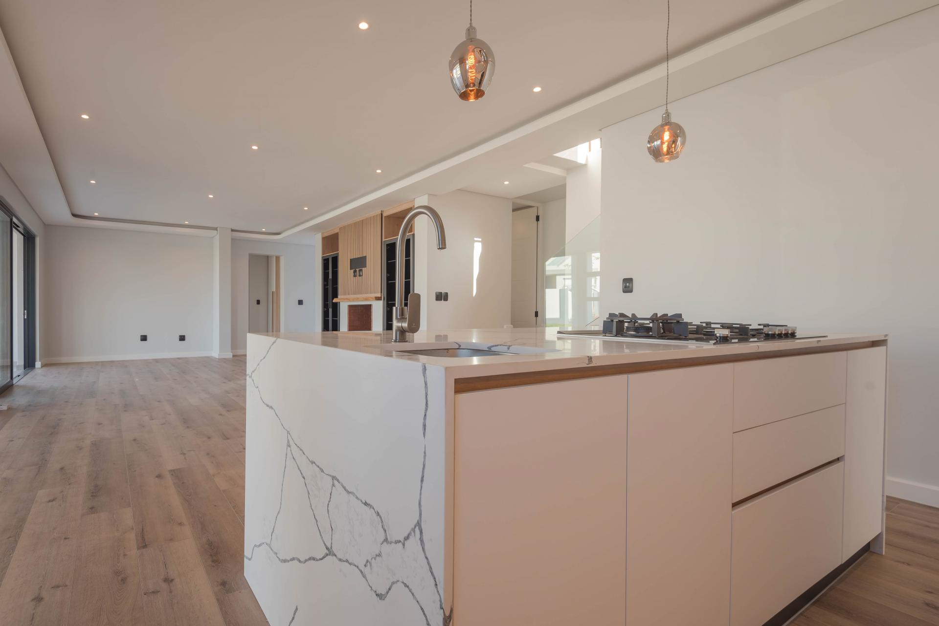 The open-plan living spaces are light and airy, designed to cater to every aspect of family life. The master chef’s kitchen, fitted with premium Siemens appliances and sleek quartz countertops, is a culinary delight.