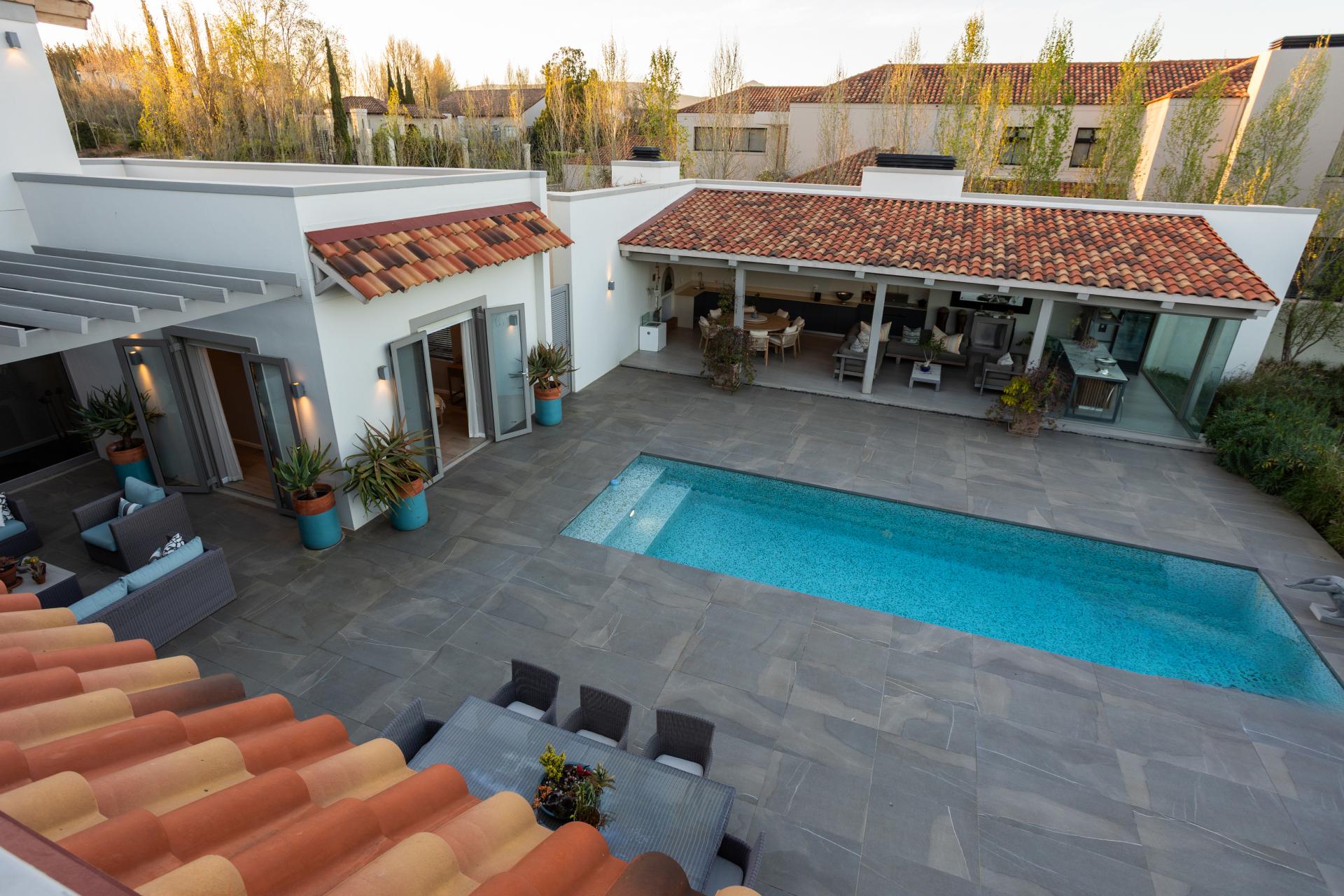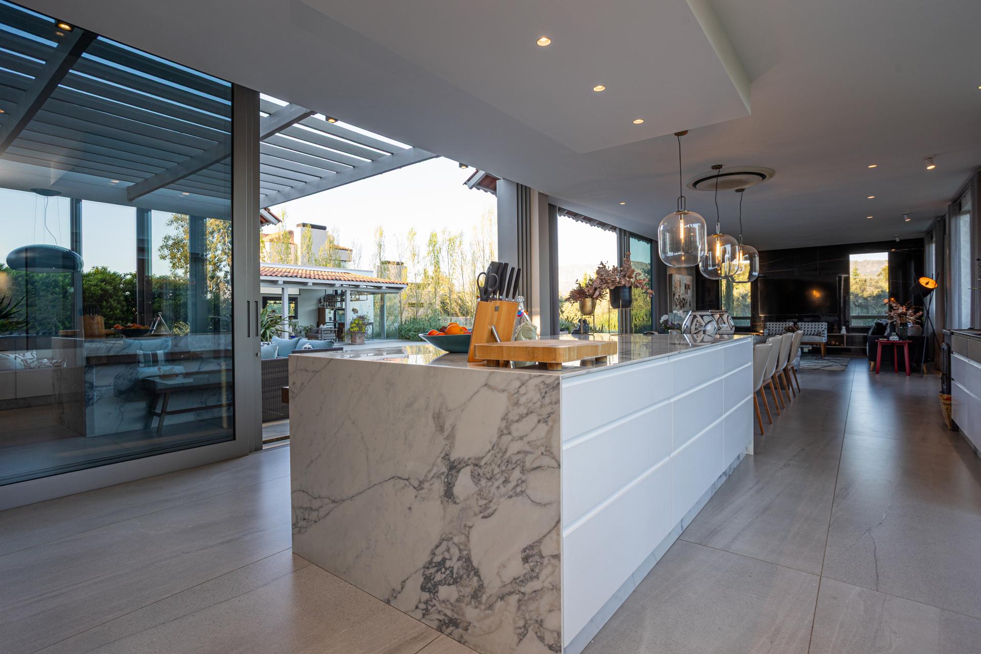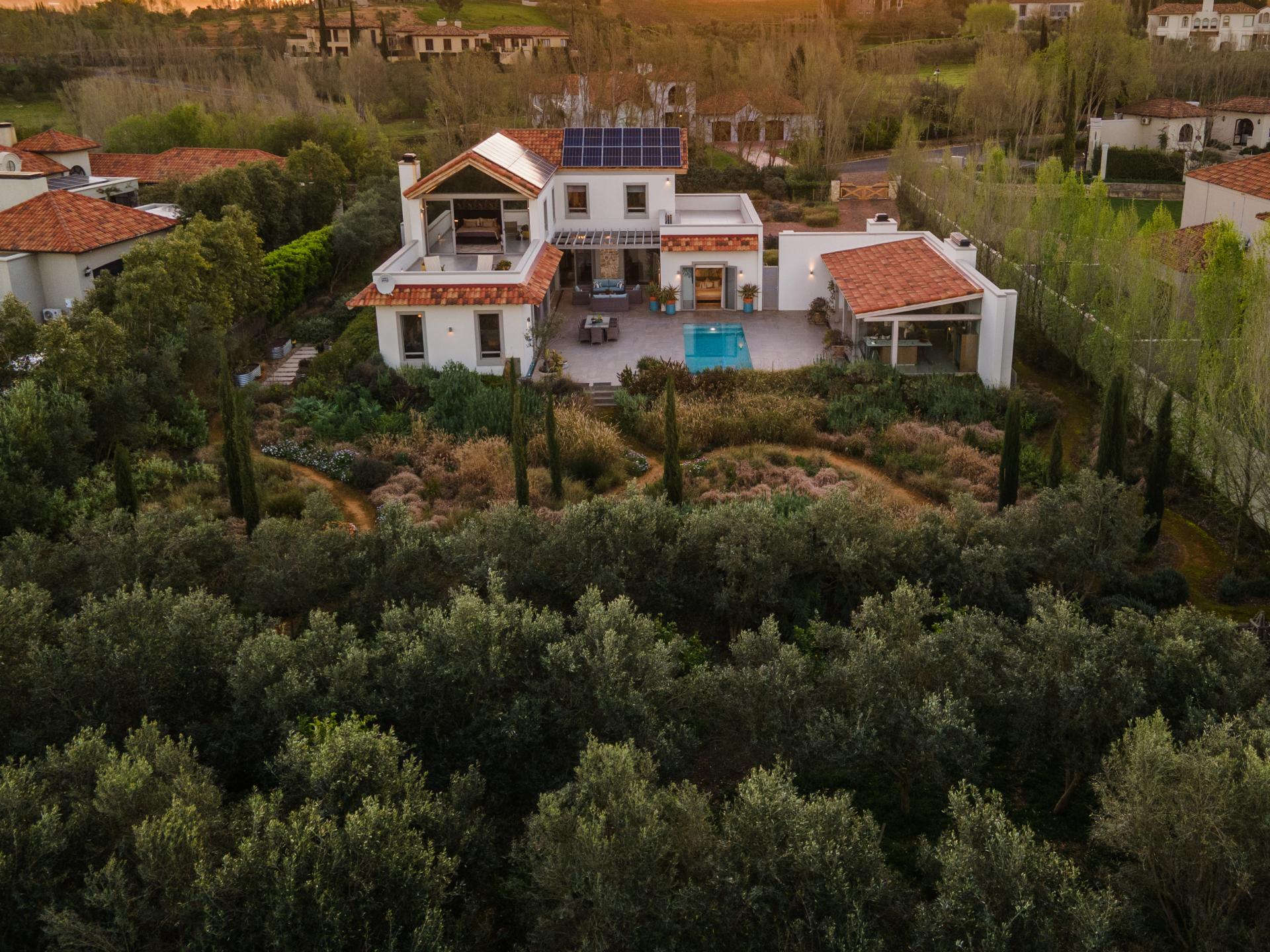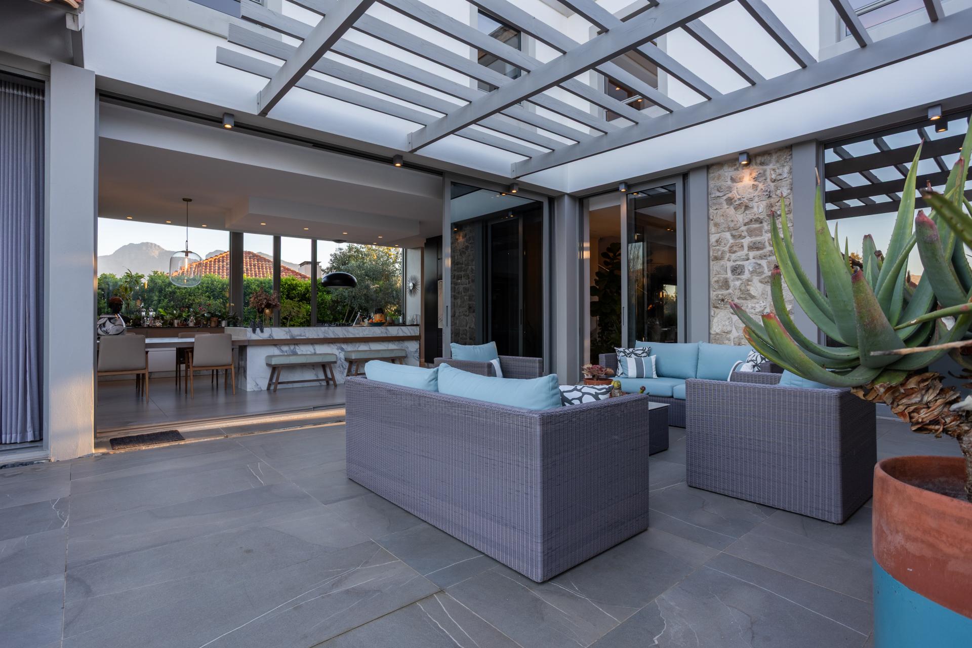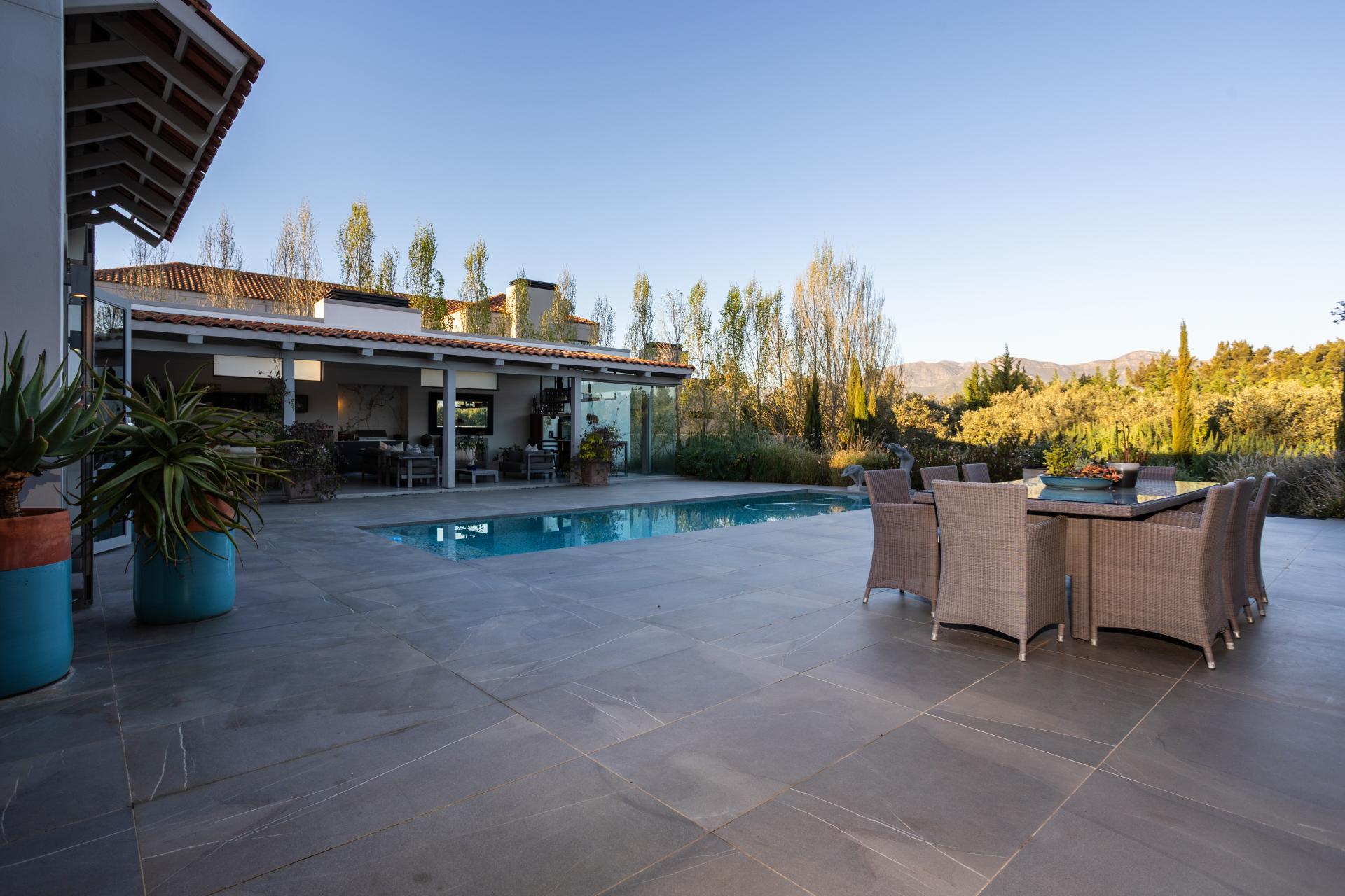 Set in the heart of the prestigious Winelands Estate, this distinguished residence embodies the essence of refined country living. Overlooking its own olive grove and framed by an indigenous garden alive with birdlife, the home combines natural elegance with contemporary comfort, enriched by imported stone finishes and streams of natural light.
