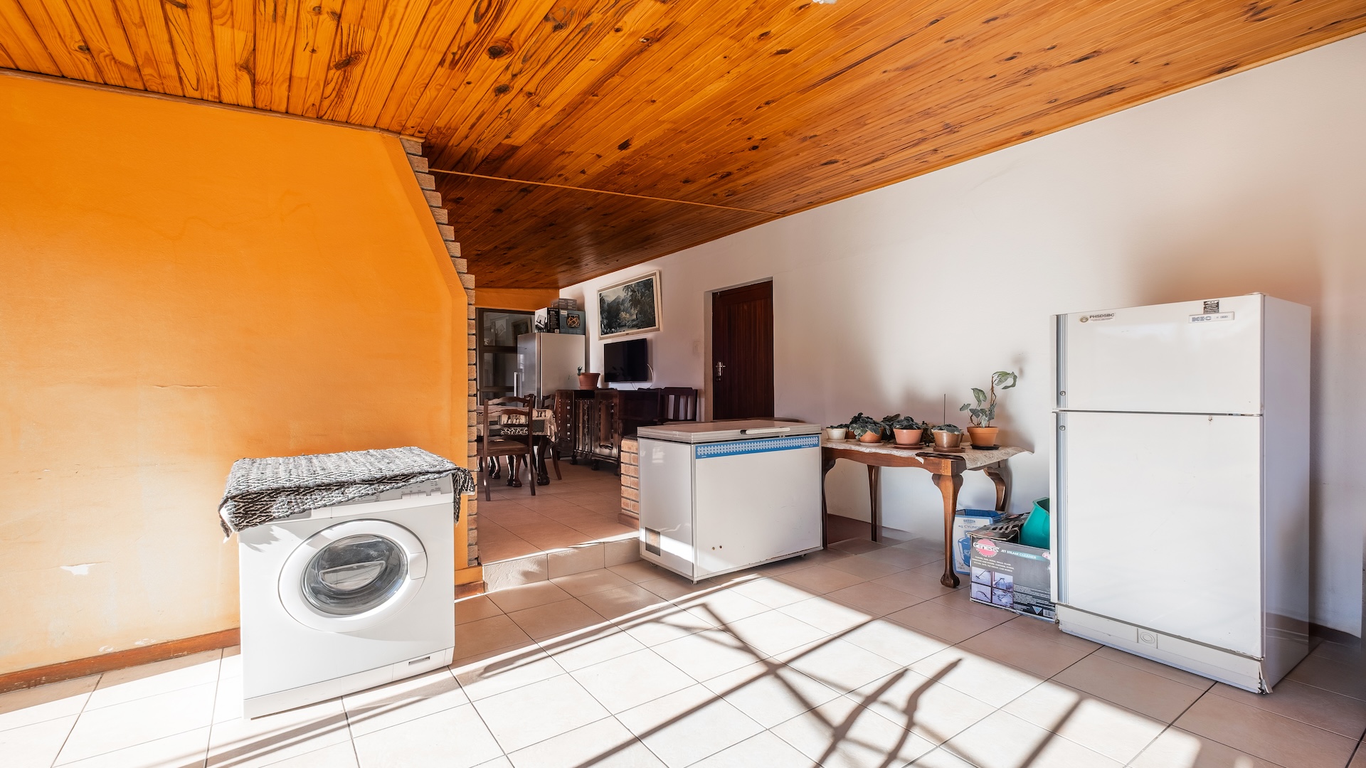 This charming home features five living areas, providing ample space for relaxation and entertainment. The open-plan kitchen is a highlight, boasting beechwood finished cupboards with solid granite tops. It's well-equipped with an undercounter oven, gas hob, and extractor fan. In addition to this, the functional kitchen area includes a separate scullery and laundry with a double sink, pre-plumped for two appliances – a washing machine and dishwasher – with space for a tumble dryer.