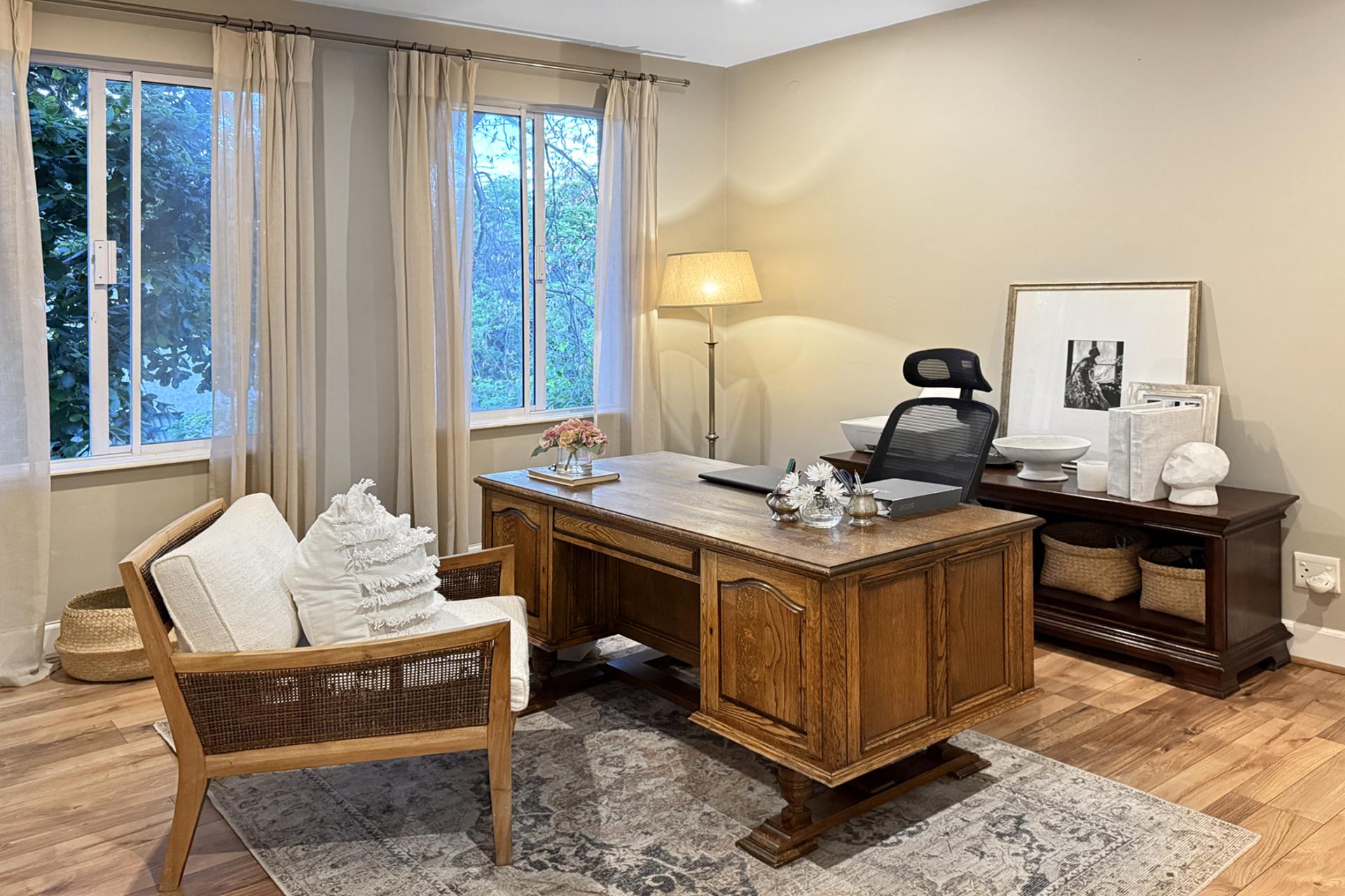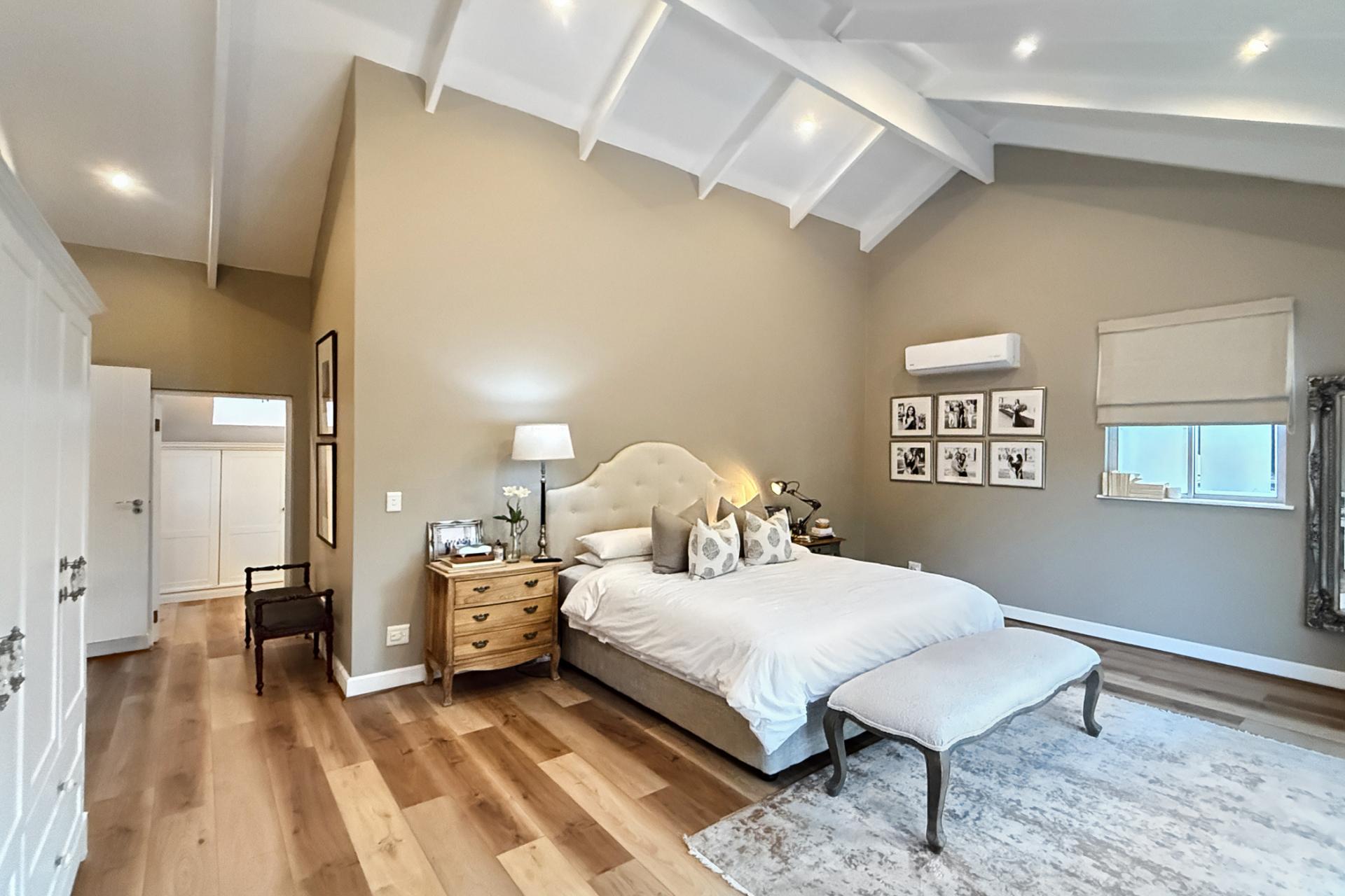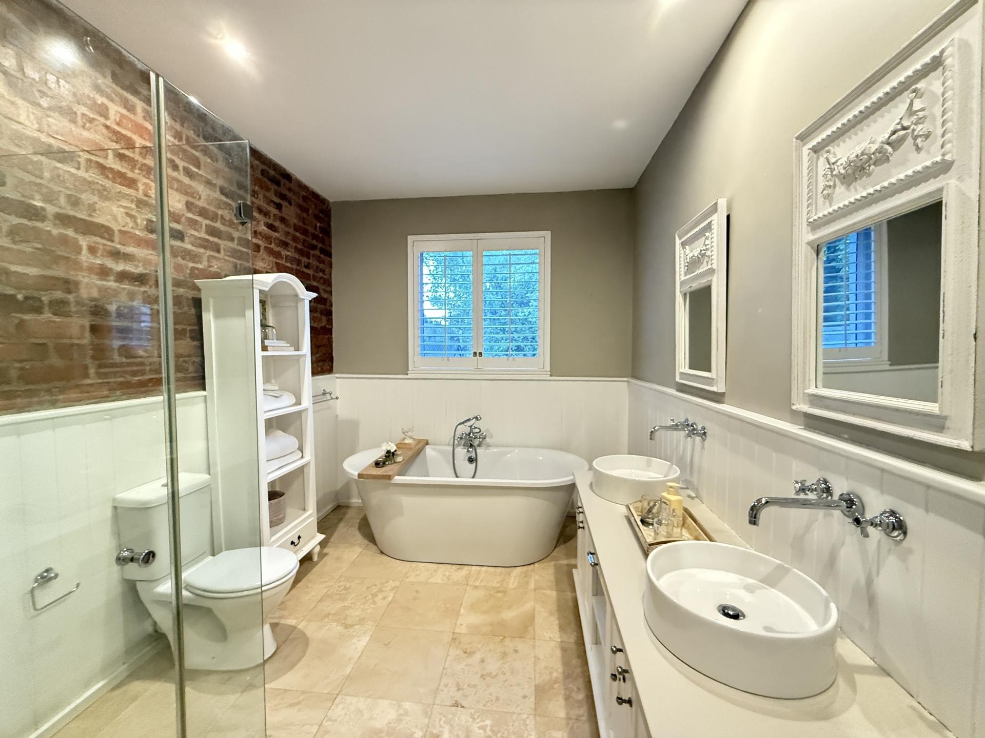 This light-filled, north-facing home delivers on style, space, and seamless indoor-outdoor living. The expansive open-plan kitchen features a central island, wood-burning fireplace, and flows effortlessly into casual dining and lounge areas — perfect for hosting and relaxing alike. A second, formal lounge and dining space brings elegance and warmth, with another fireplace and sleek aluminium sliders opening to a lush garden and sparkling pool. Upstairs offers three spacious bedrooms (two en suite) and a dedicated study. Downstairs, a fourth en suite bedroom provides the perfect setup for guests, extended family, or a playroom or office. The private garden, shaded by a magnificent tree, is ideal for lazy afternoons or summer entertaining around the fire-lit boma. With a solar inverter system and water tanks, this home is as efficient as it is beautiful.