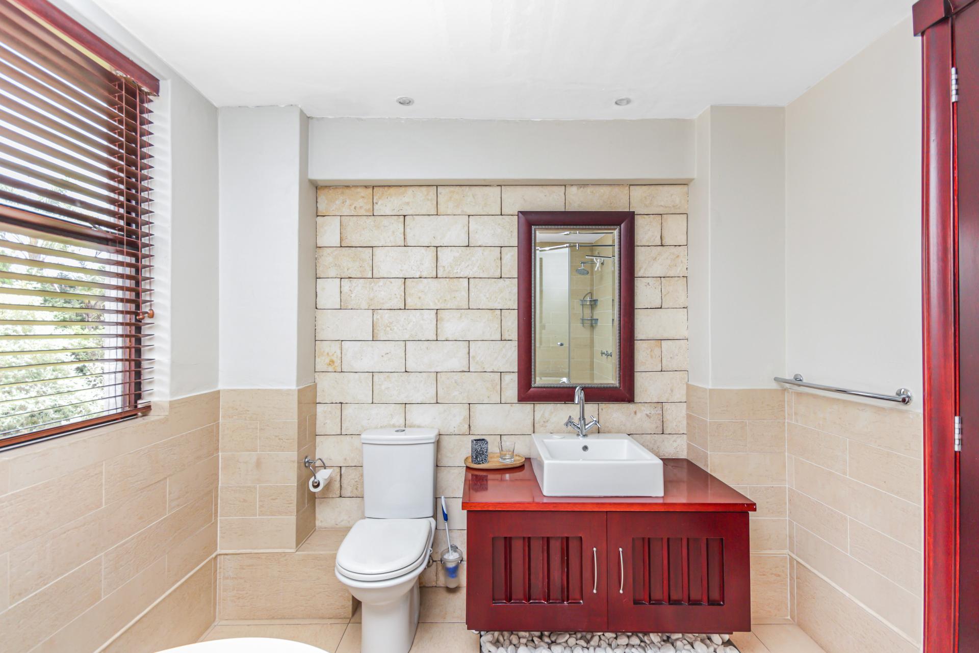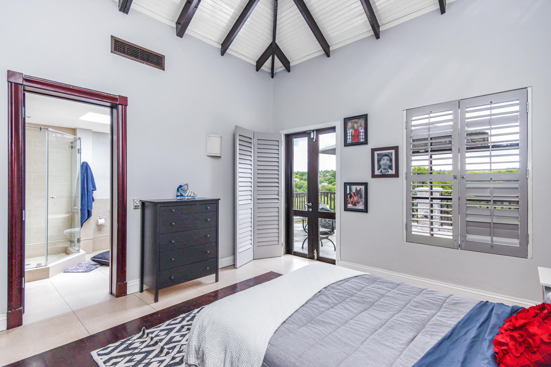 The basement level is designed for entertainment, boasting a wine cellar, built-in bar, and pool room, making it the ultimate fun zone. Upstairs, three generously sized bedrooms each feature en-suite bathrooms, with the master suite offering a built-in dressing table, a large walk-in dressing room, and a luxurious en-suite bathroom that continues the Balinese theme. The balcony on this level offers stunning views of the river and valley, creating a peaceful retreat.
