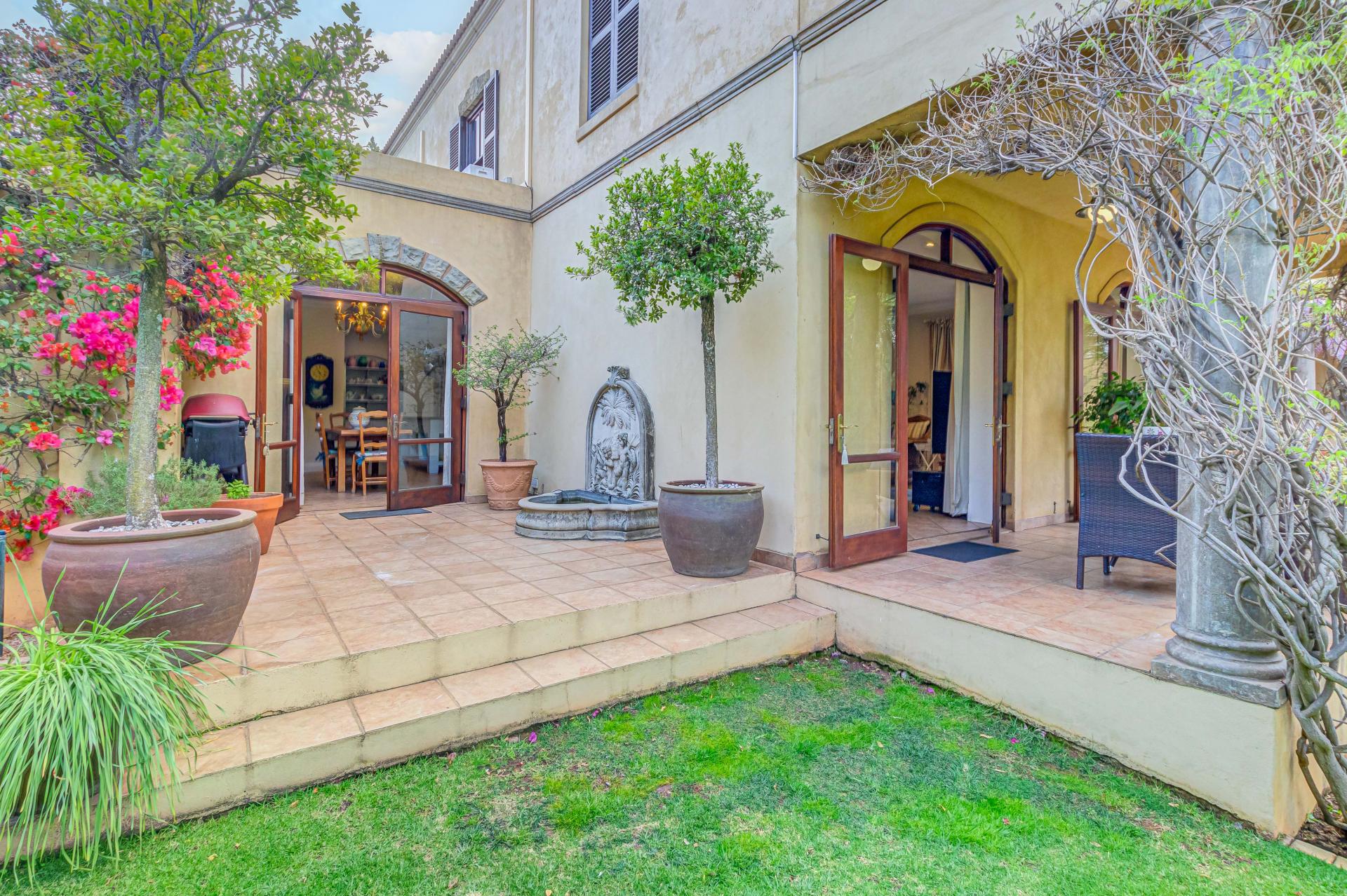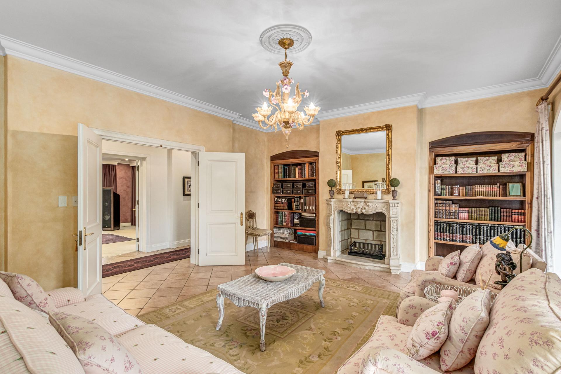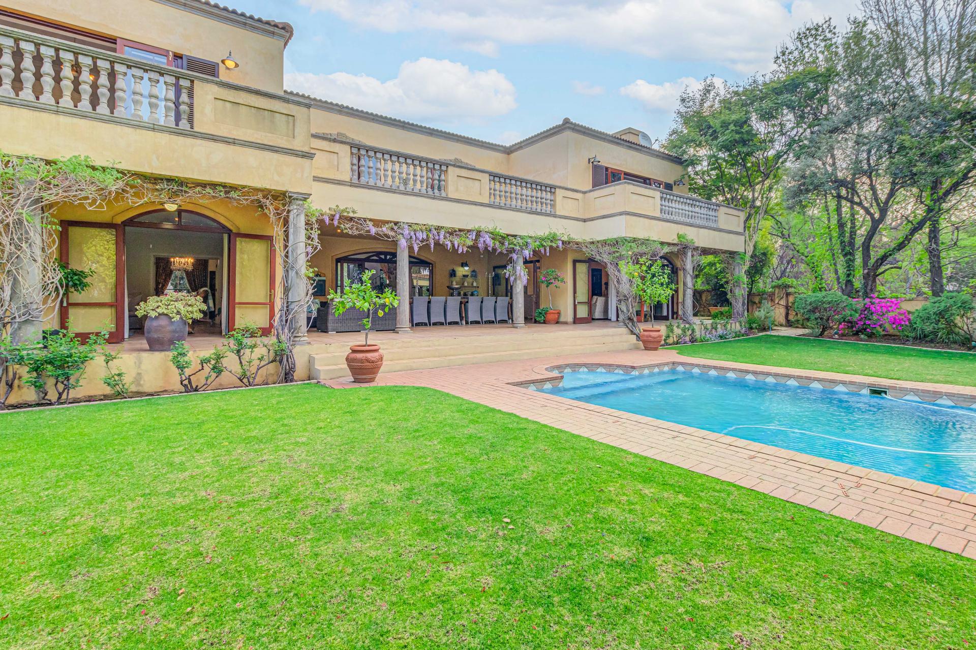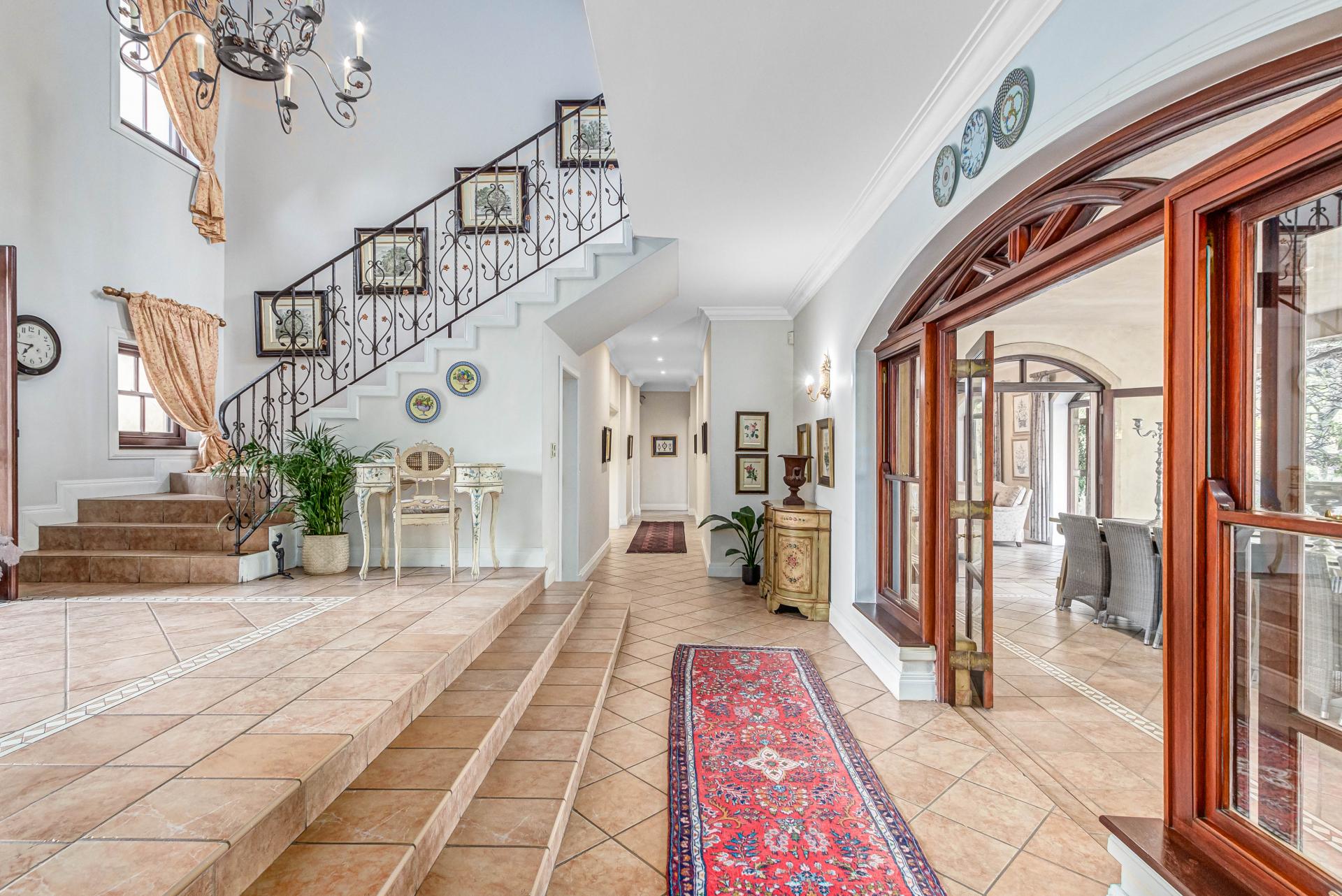 This luxurious Tuscan-style home, set on a consolidated double stand in the exclusive Dainfern Golf Estate, offers a seamless blend of elegance and functionality. The home’s architectural beauty is highlighted by its warm exterior tones, high ceilings, genuine sash windows, and imported Italian Murano chandeliers, capturing the essence of Tuscan charm.