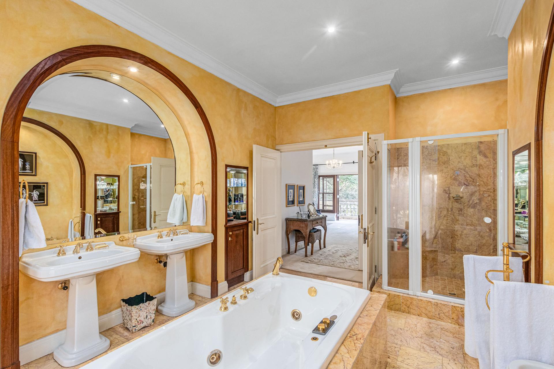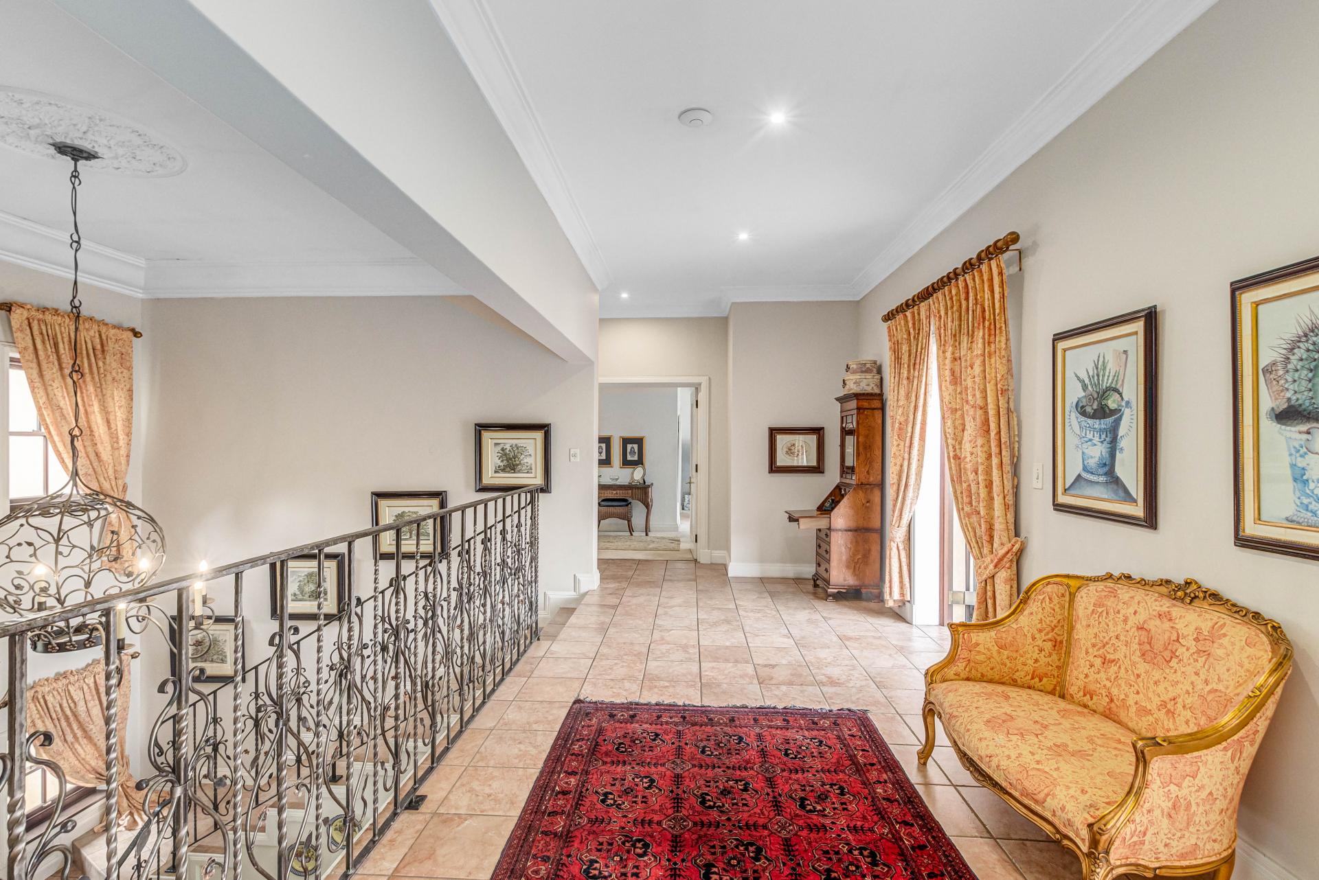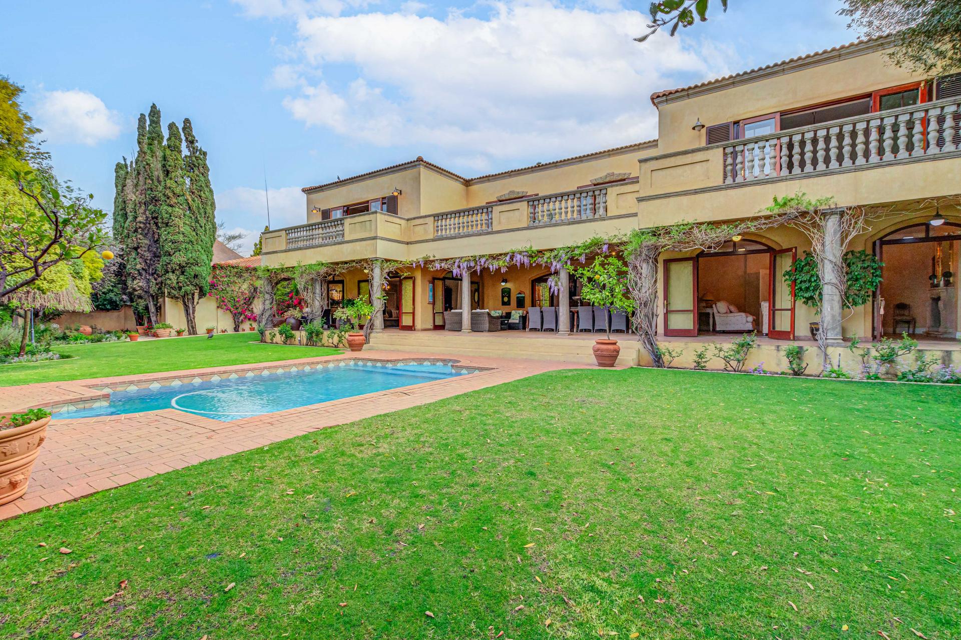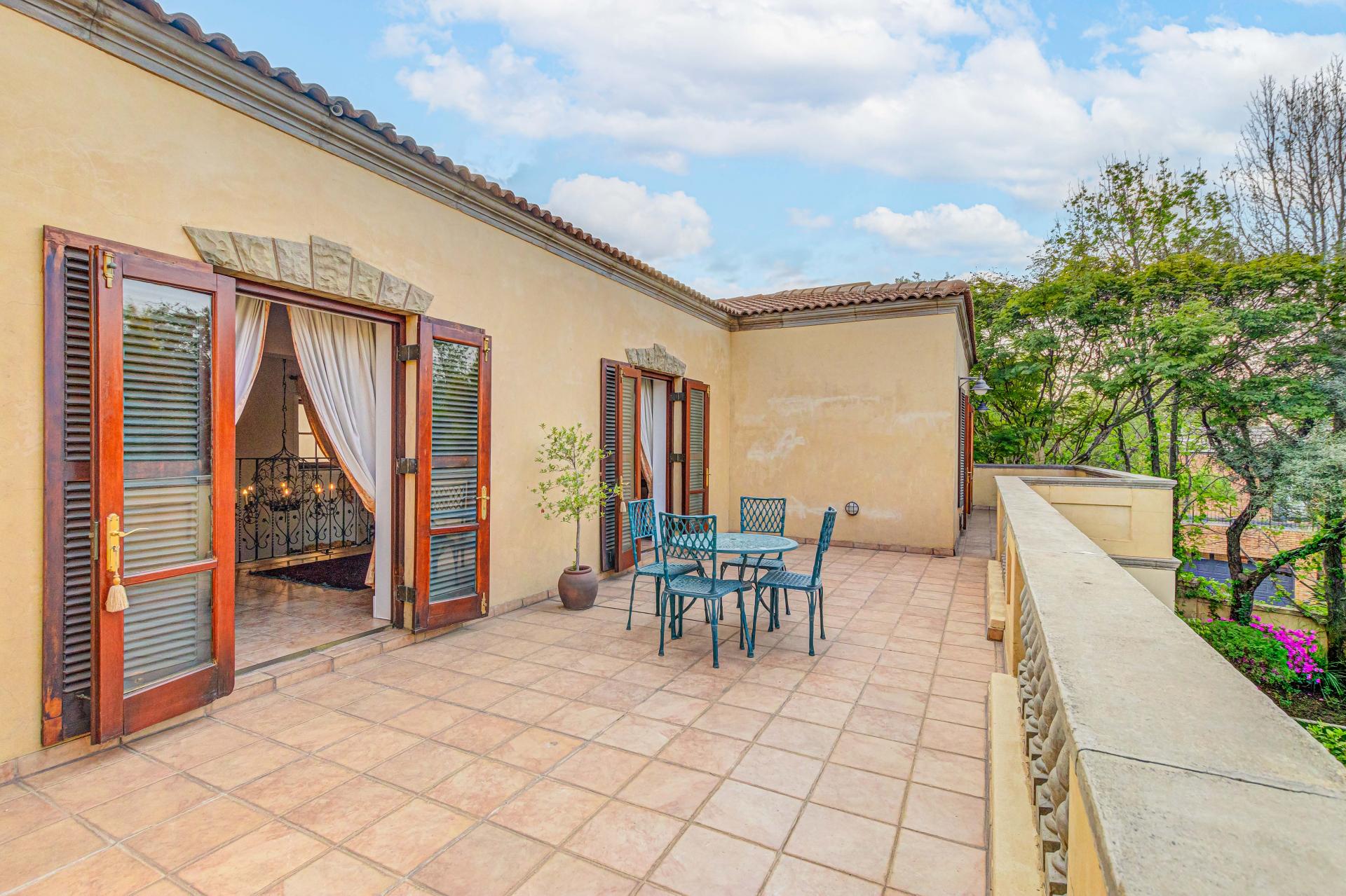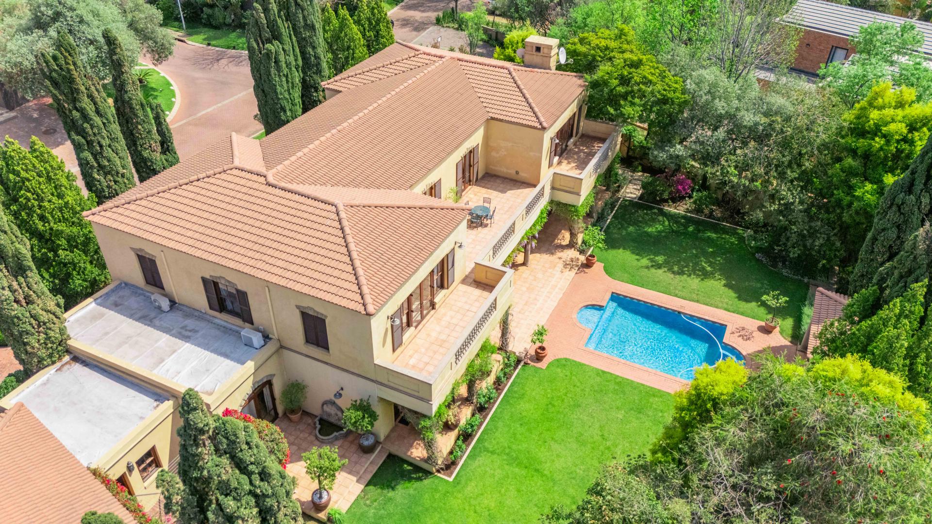 This luxurious Tuscan-style home, set on a consolidated double stand in the exclusive Dainfern Golf Estate, offers a seamless blend of elegance and functionality. The home’s architectural beauty is highlighted by its warm exterior tones, high ceilings, genuine sash windows, and imported Italian Murano chandeliers, capturing the essence of Tuscan charm.