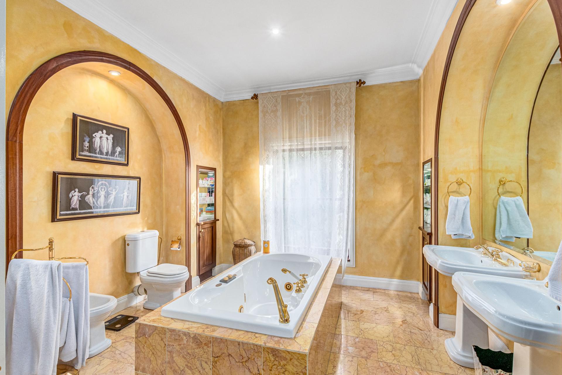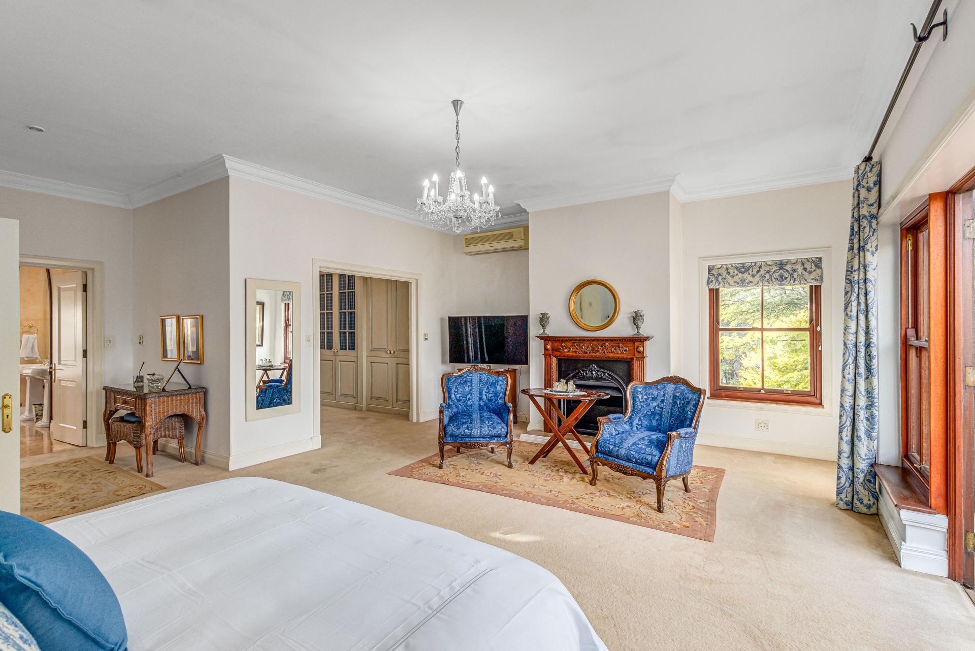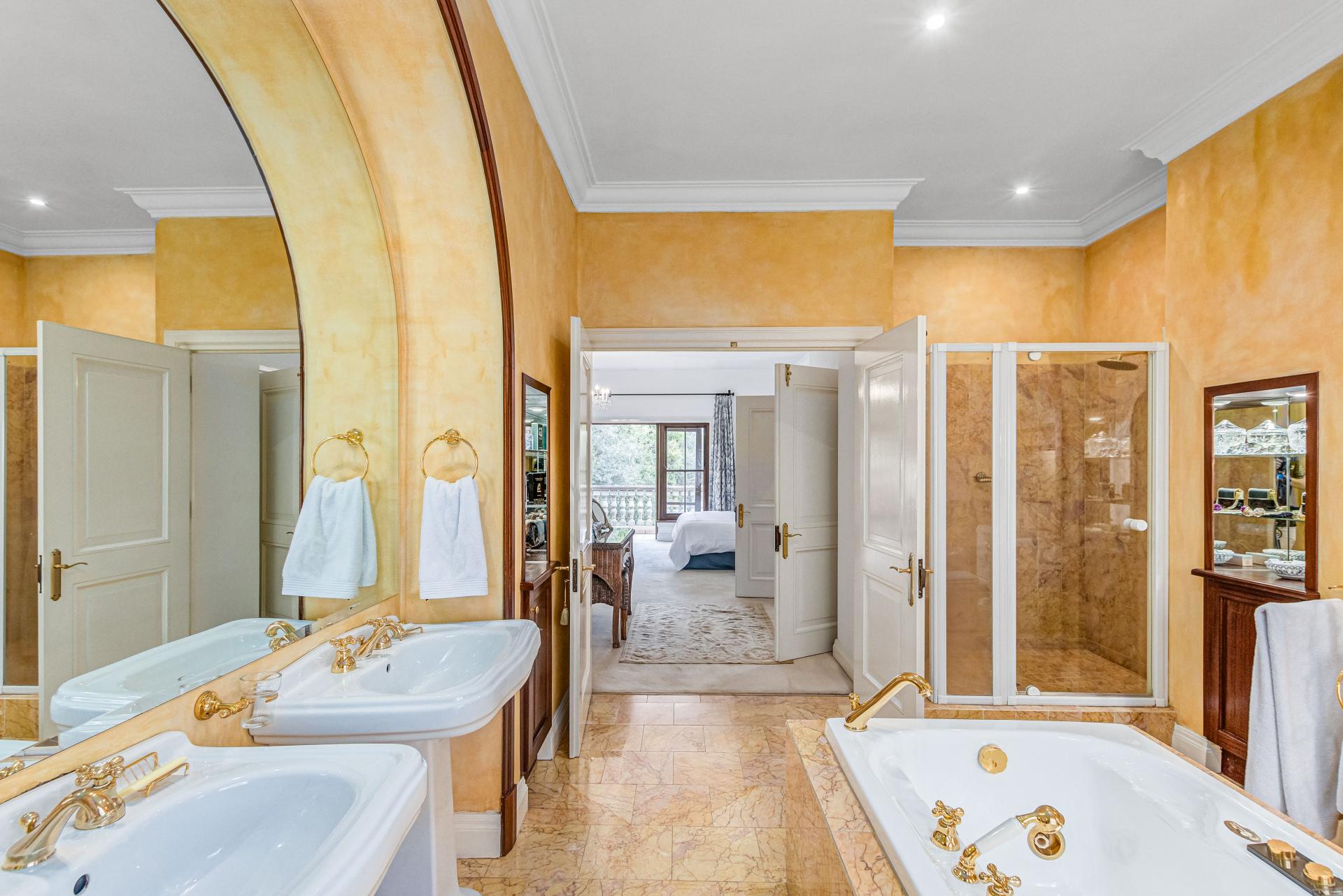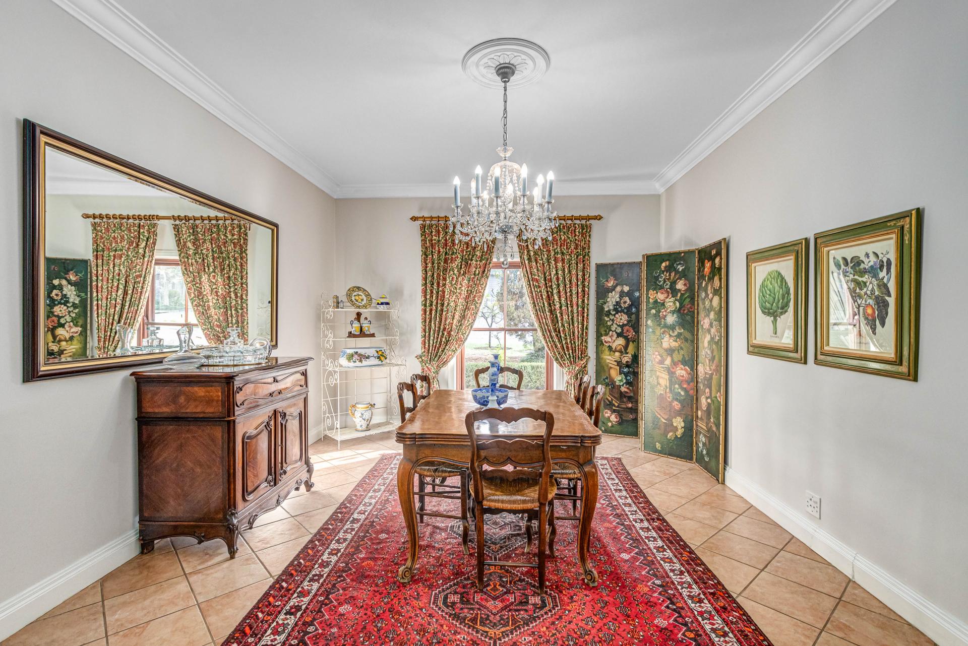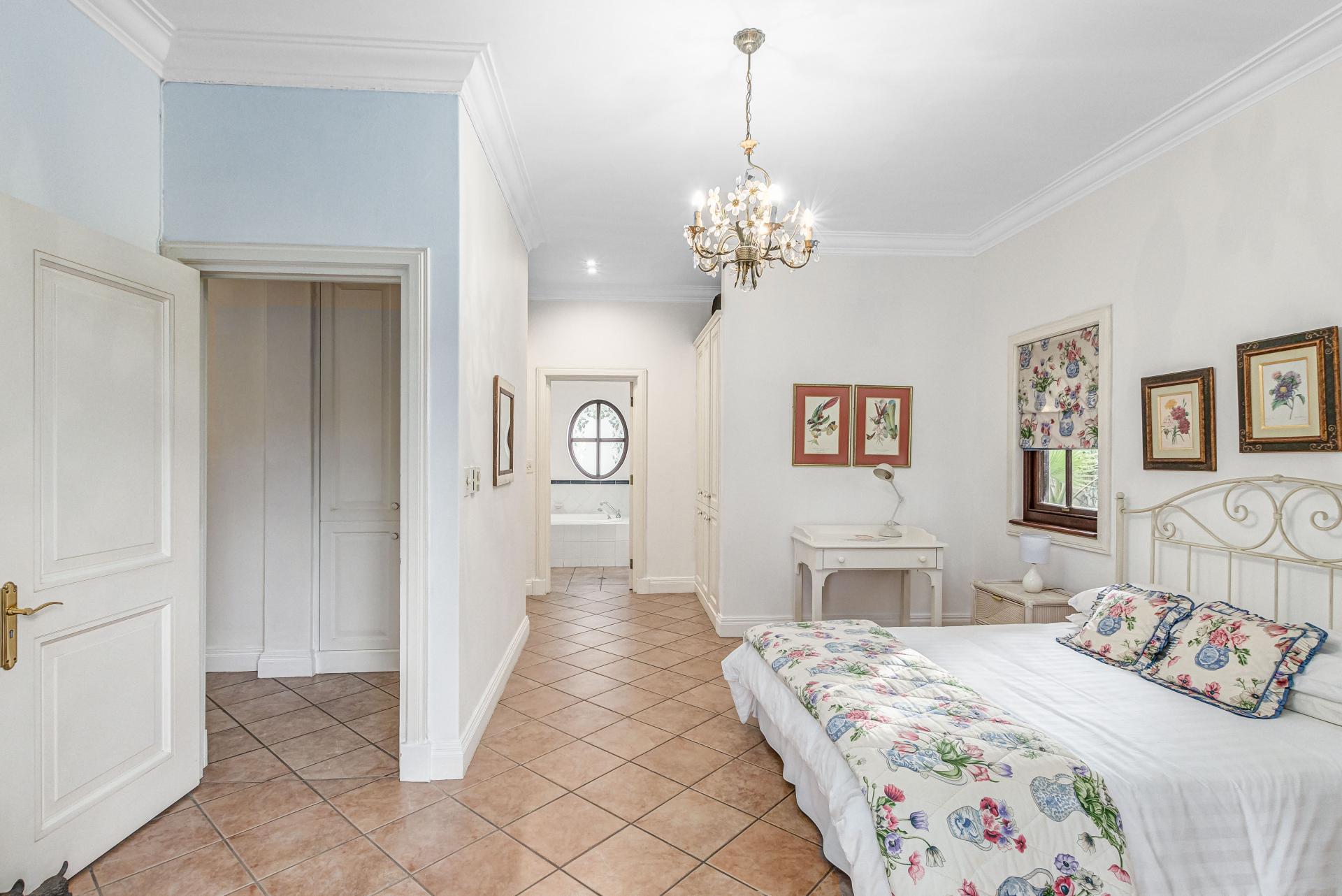 This luxurious Tuscan-style home, set on a consolidated double stand in the exclusive Dainfern Golf Estate, offers a seamless blend of elegance and functionality. The home’s architectural beauty is highlighted by its warm exterior tones, high ceilings, genuine sash windows, and imported Italian Murano chandeliers, capturing the essence of Tuscan charm.