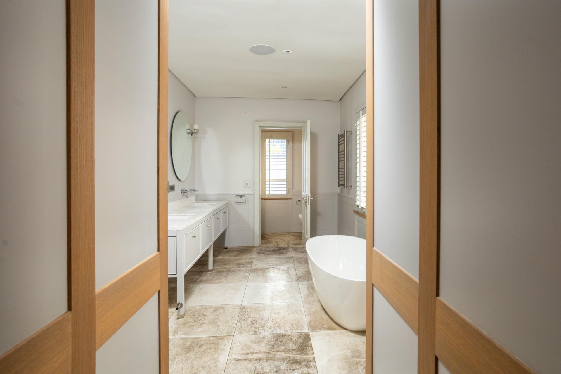 Upstairs, a pyjama lounge with a Morso fireplace opens onto a balcony with exceptional views. The primary suite is a showstopper with vaulted ceilings, a generous dressing room, and a luxurious en suite bathroom. Two further en suite bedrooms, a study or nursery, linen room, and server room complete the upper level, offering the perfect balance of comfort and functionality.