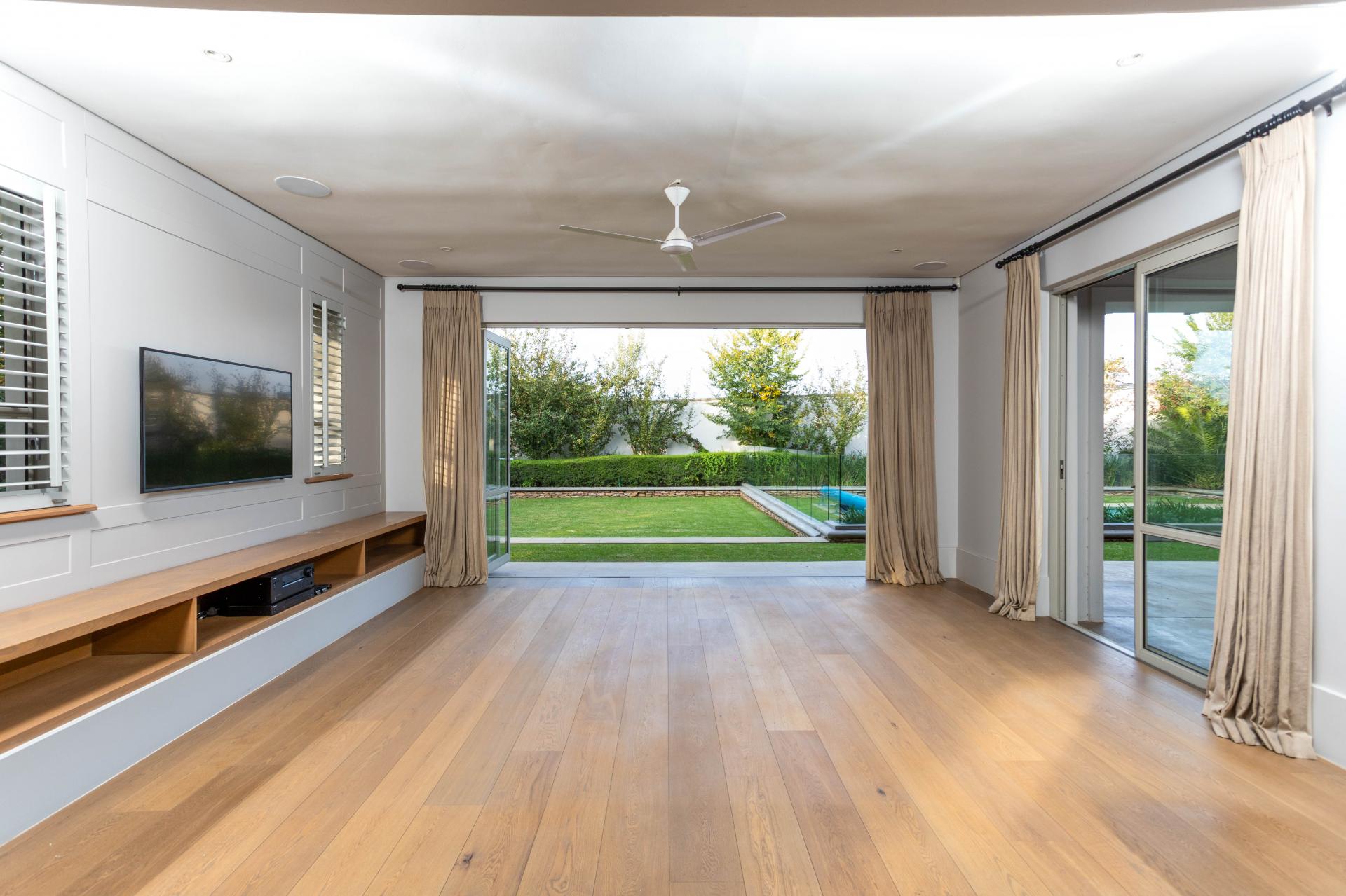 Outside, the landscaped garden features a heated, glass-enclosed swimming pool with a pergola lounge area and full irrigation. Every corner of the home speaks of comfort and elegance, making this property a true sanctuary within a secure, access-controlled estate.