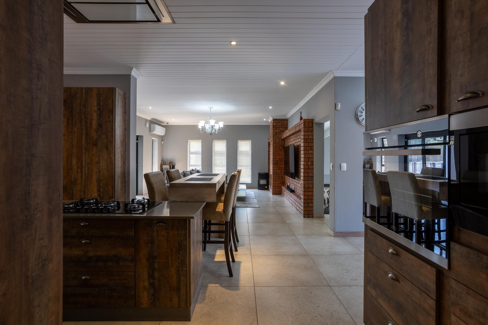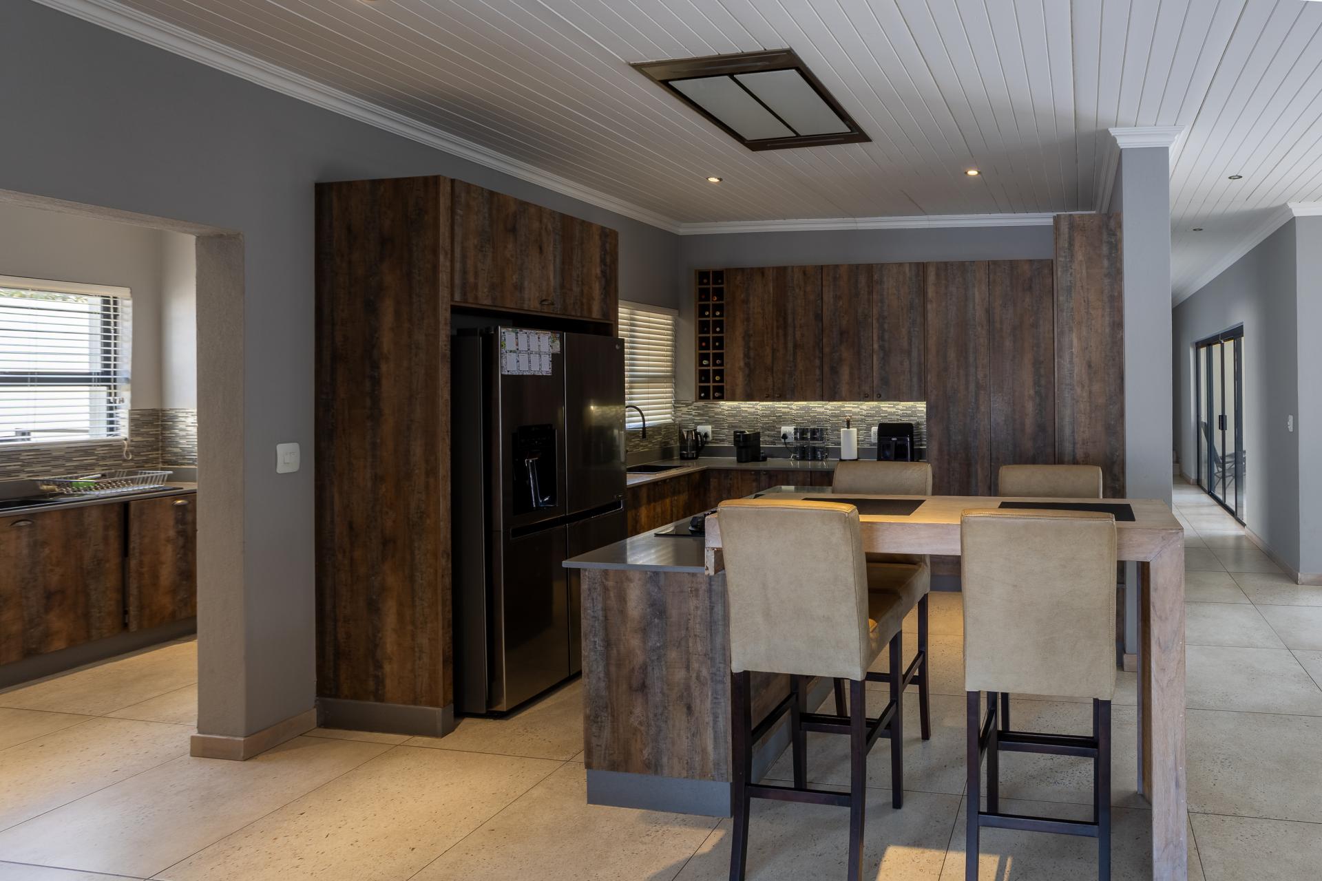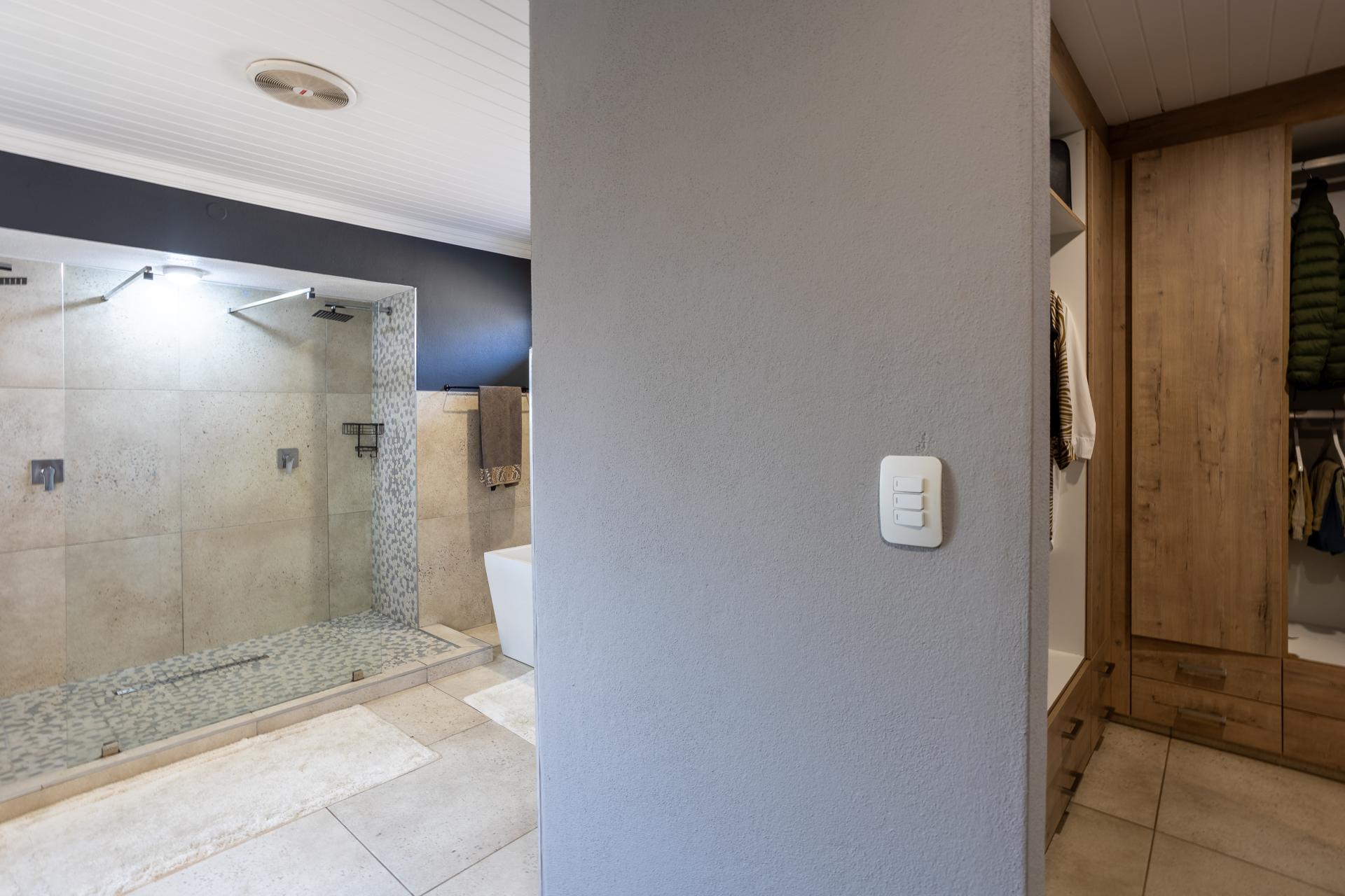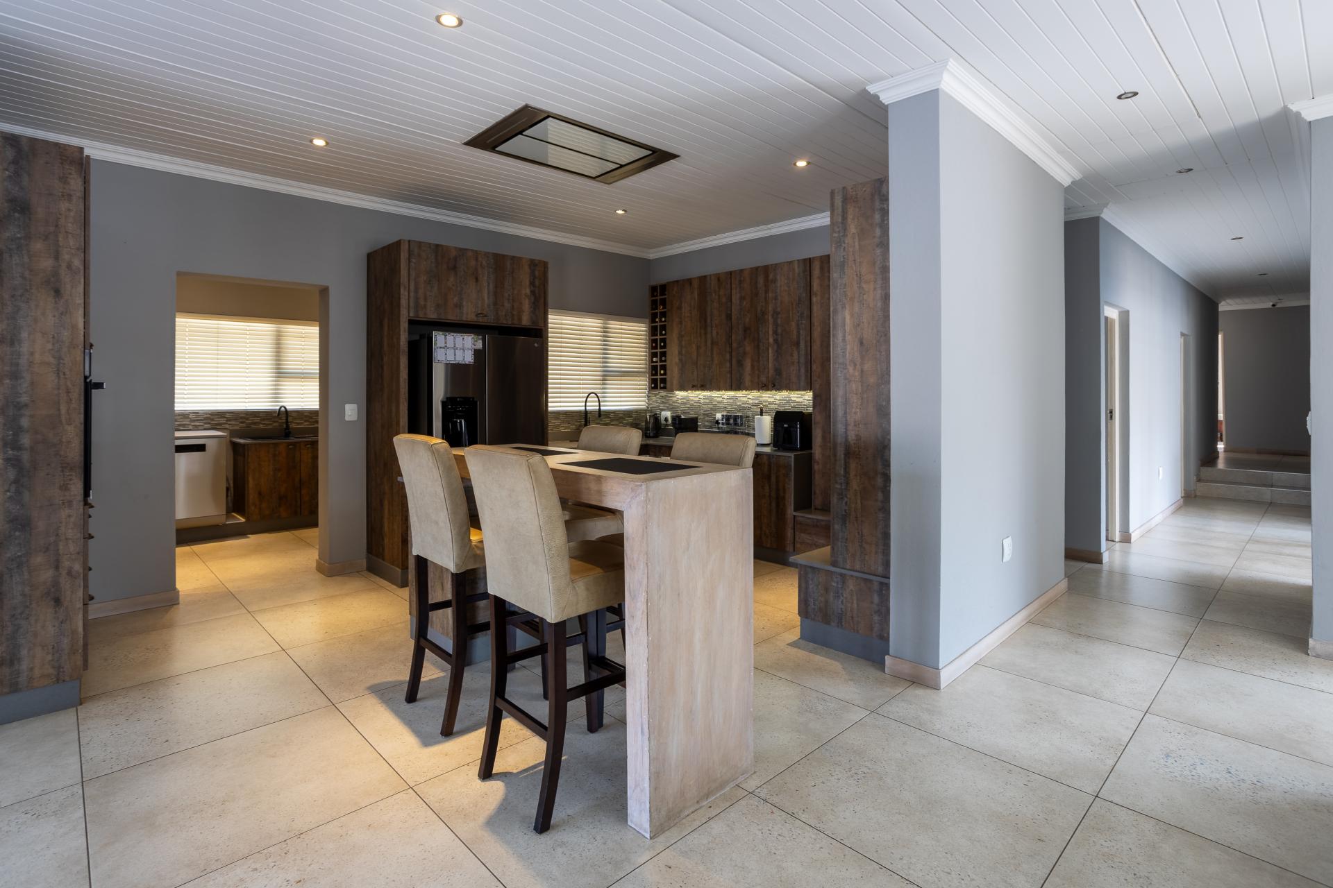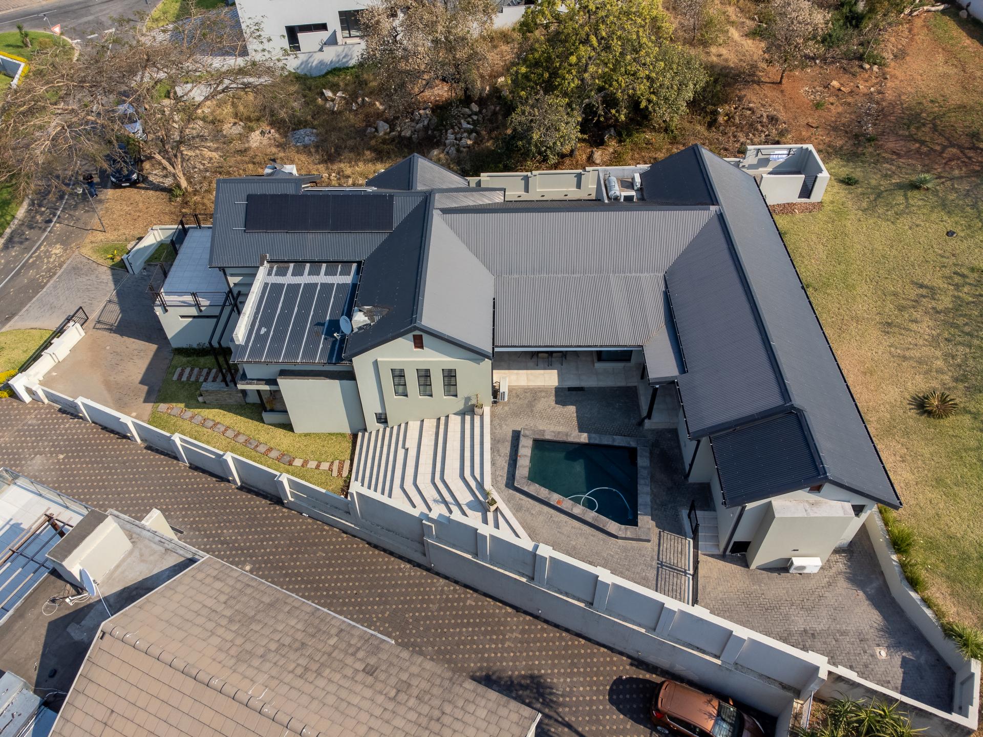 Located in one of the Lowveld’s most sought-after lifestyle estates offers luxury, comfort,sophistication, and safety. Each bedroom is en-suite, with the main featuring a dressing room and full bathroom with double basins. The open-plan living, dining, and kitchen areas flow seamlessly to a covered balcony with breathtaking views, while a central swimming pool is accessible from both the main bedroom and living area. Additional features include a study, cinema, guest ablution, staff quarters, storeroom, scullery, pantry, and garage for four vehicles. With solar, water tank, and premium finishes, this beautifully planned home epitomizes modern estate living.