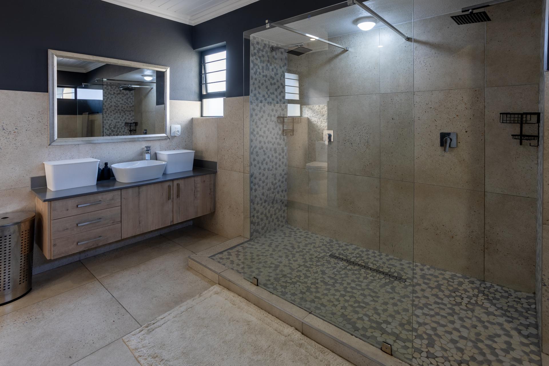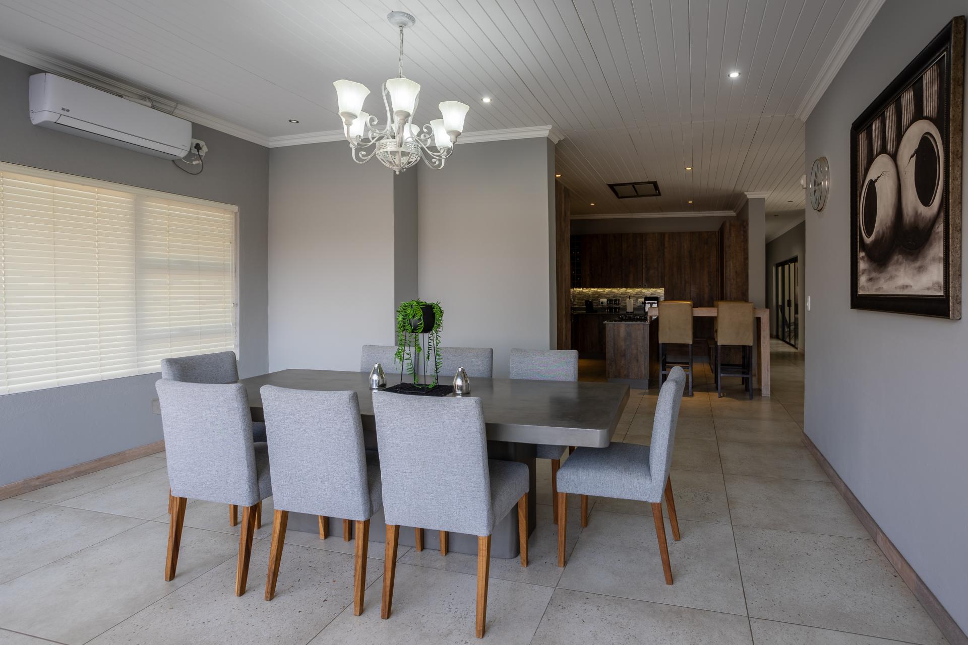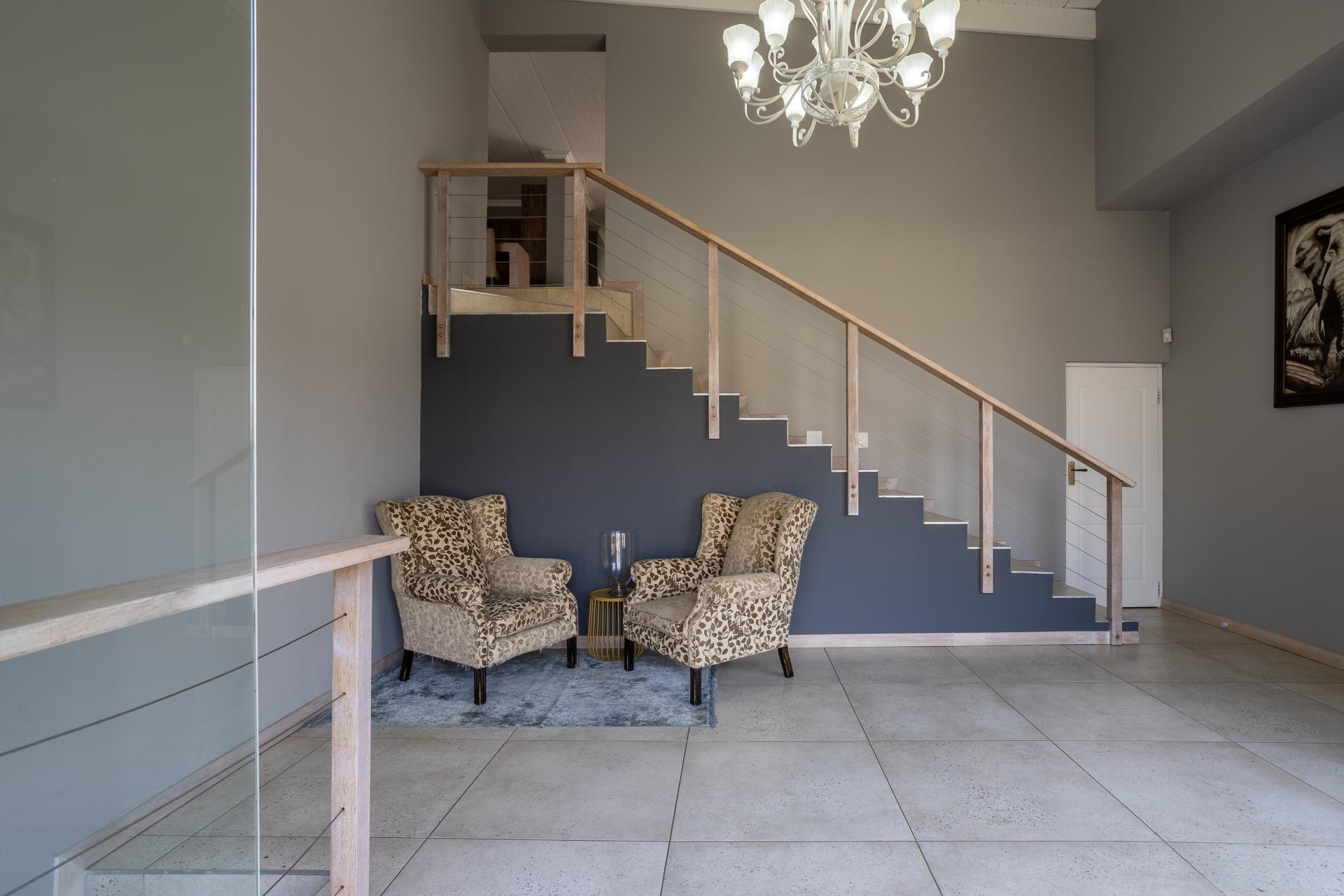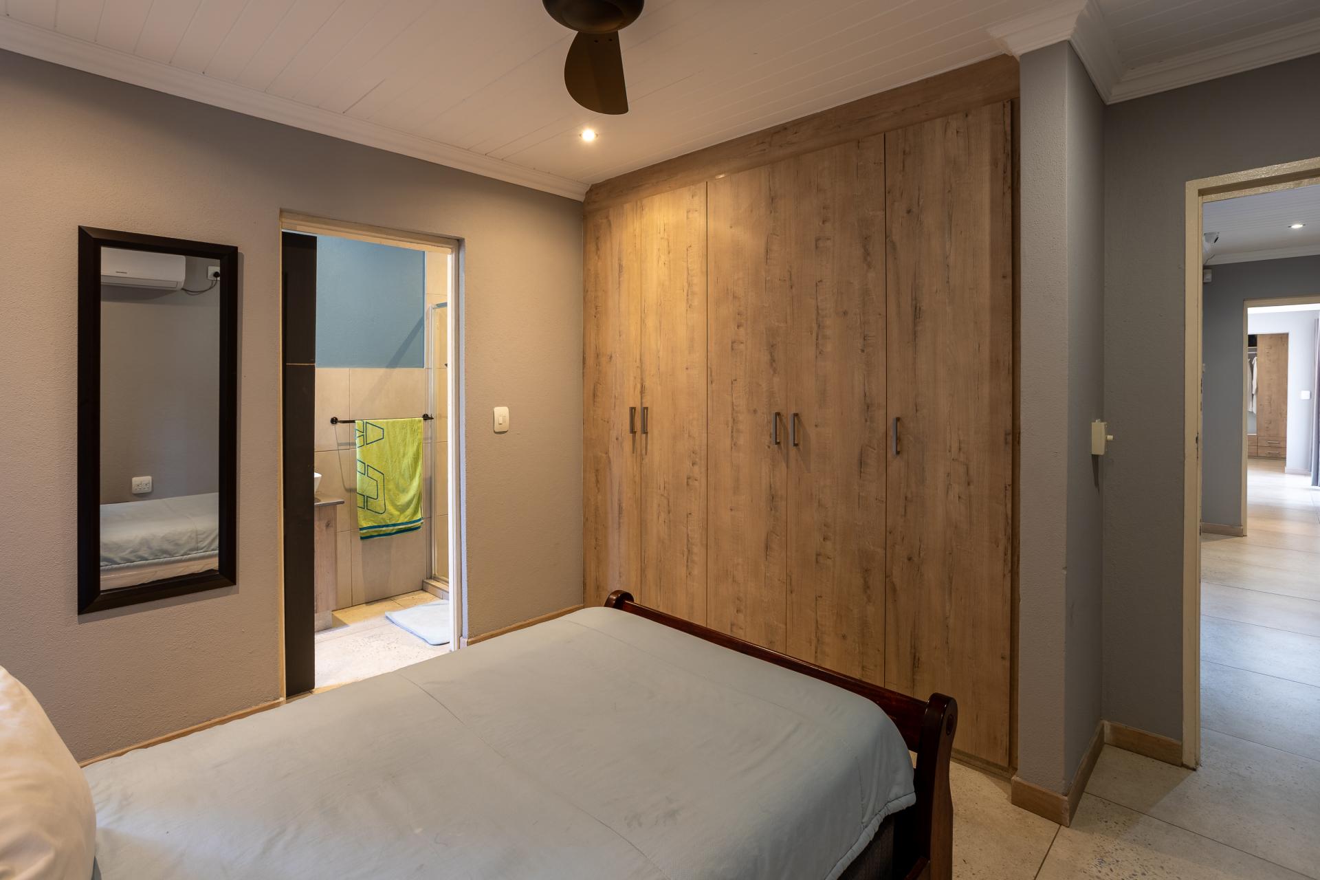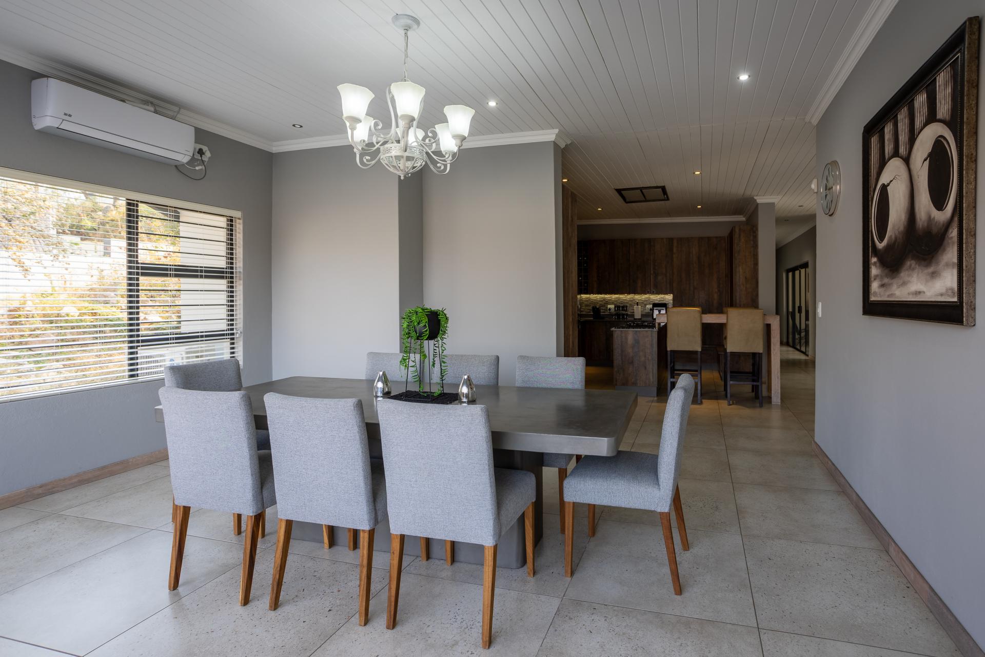 Located in one of the Lowveld’s most sought-after lifestyle estates offers luxury, comfort,sophistication, and safety. Each bedroom is en-suite, with the main featuring a dressing room and full bathroom with double basins. The open-plan living, dining, and kitchen areas flow seamlessly to a covered balcony with breathtaking views, while a central swimming pool is accessible from both the main bedroom and living area. Additional features include a study, cinema, guest ablution, staff quarters, storeroom, scullery, pantry, and garage for four vehicles. With solar, water tank, and premium finishes, this beautifully planned home epitomizes modern estate living.