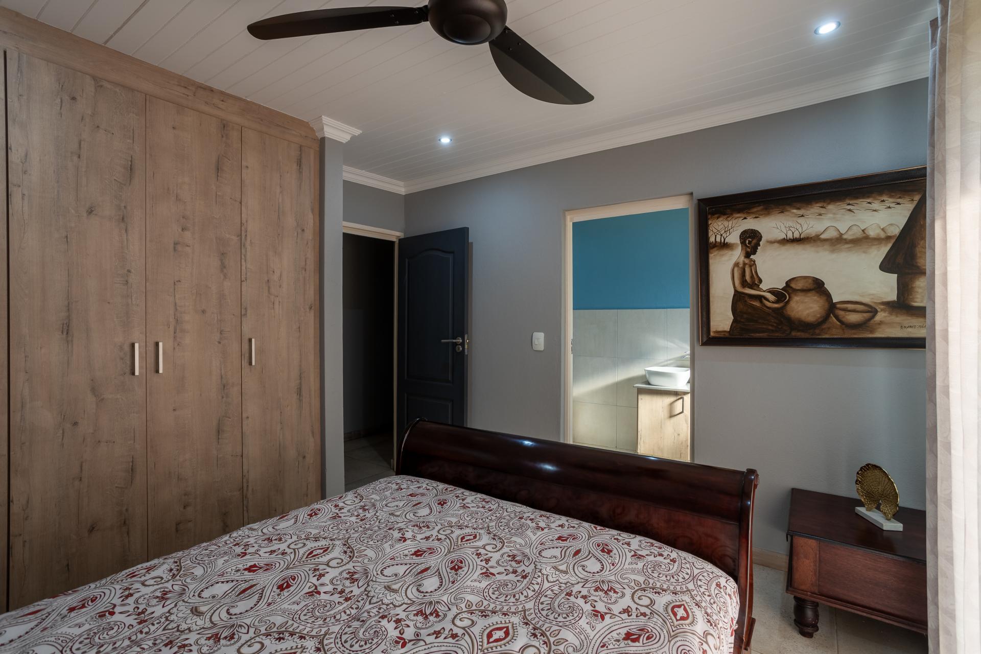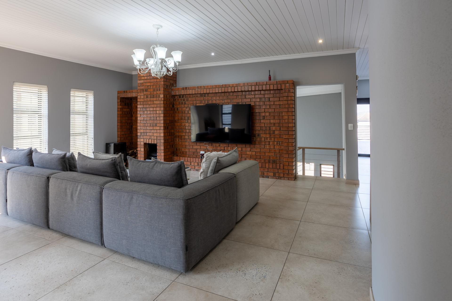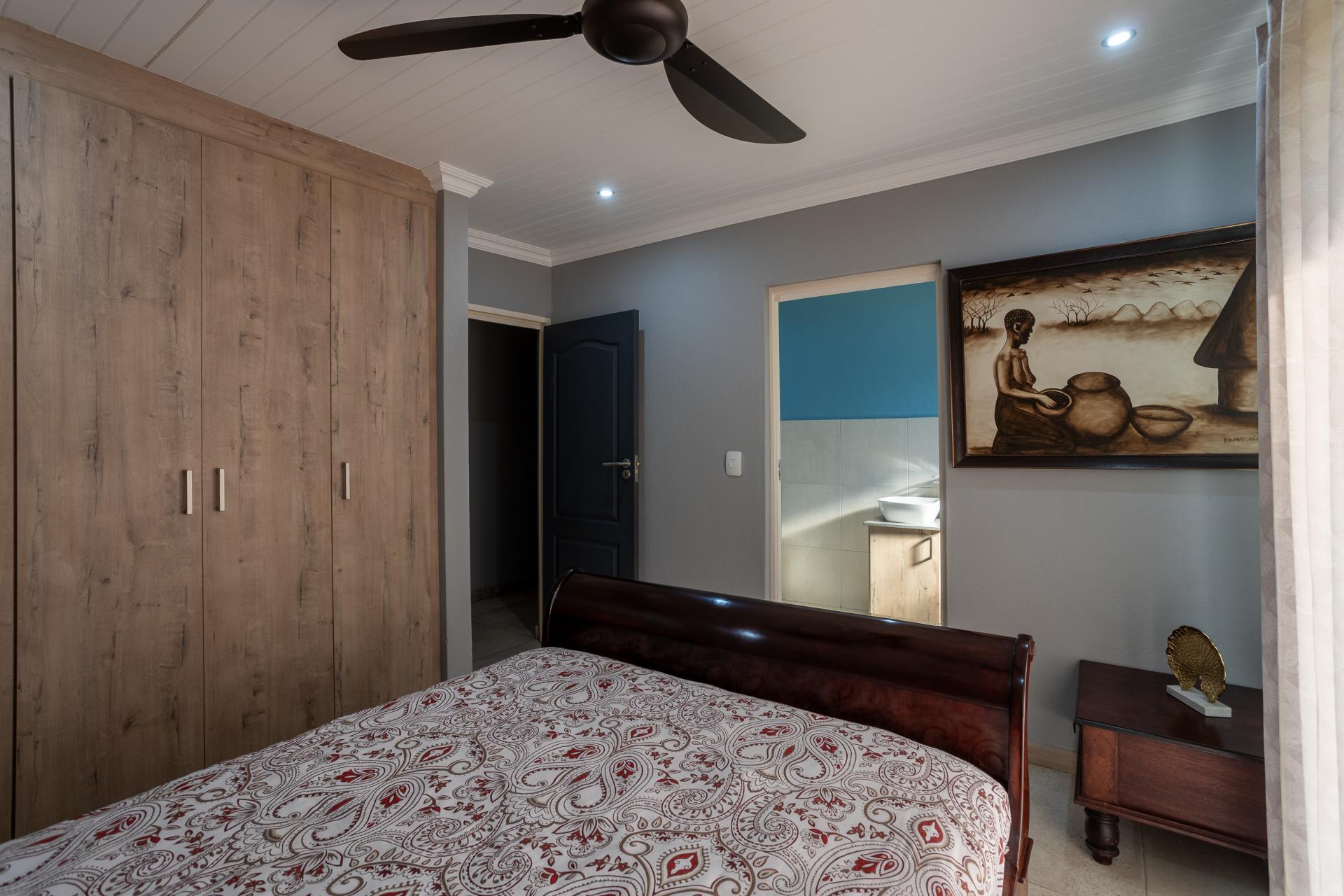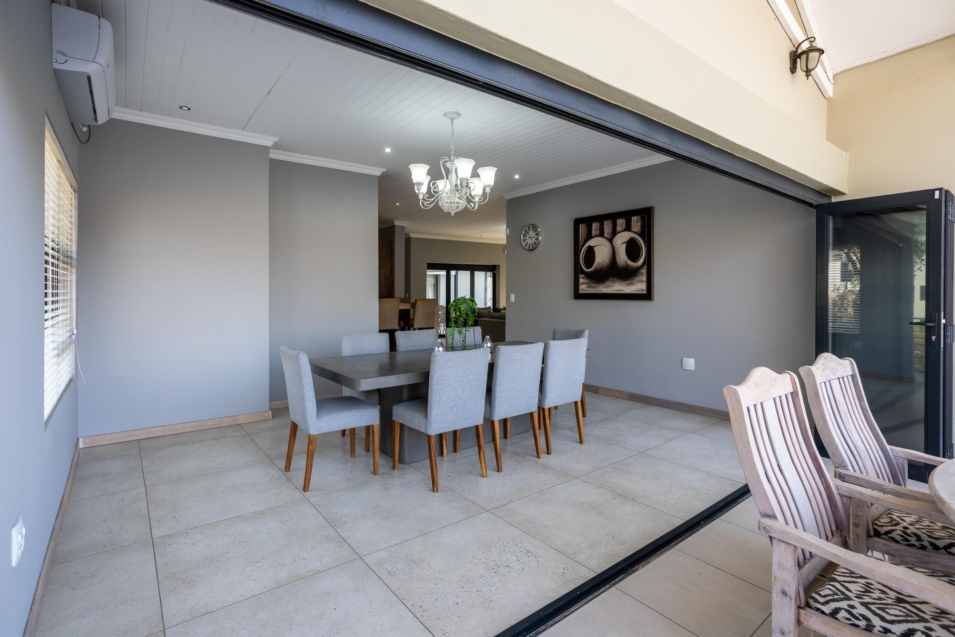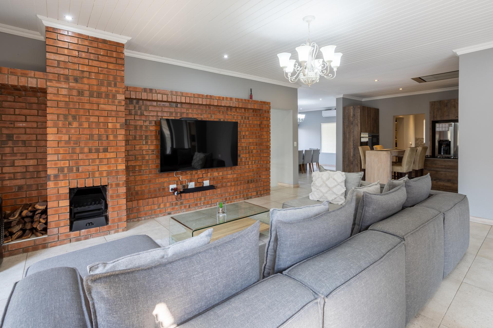 Located in one of the Lowveld’s most sought-after lifestyle estates offers luxury, comfort,sophistication, and safety. Each bedroom is en-suite, with the main featuring a dressing room and full bathroom with double basins. The open-plan living, dining, and kitchen areas flow seamlessly to a covered balcony with breathtaking views, while a central swimming pool is accessible from both the main bedroom and living area. Additional features include a study, cinema, guest ablution, staff quarters, storeroom, scullery, pantry, and garage for four vehicles. With solar, water tank, and premium finishes, this beautifully planned home epitomizes modern estate living.